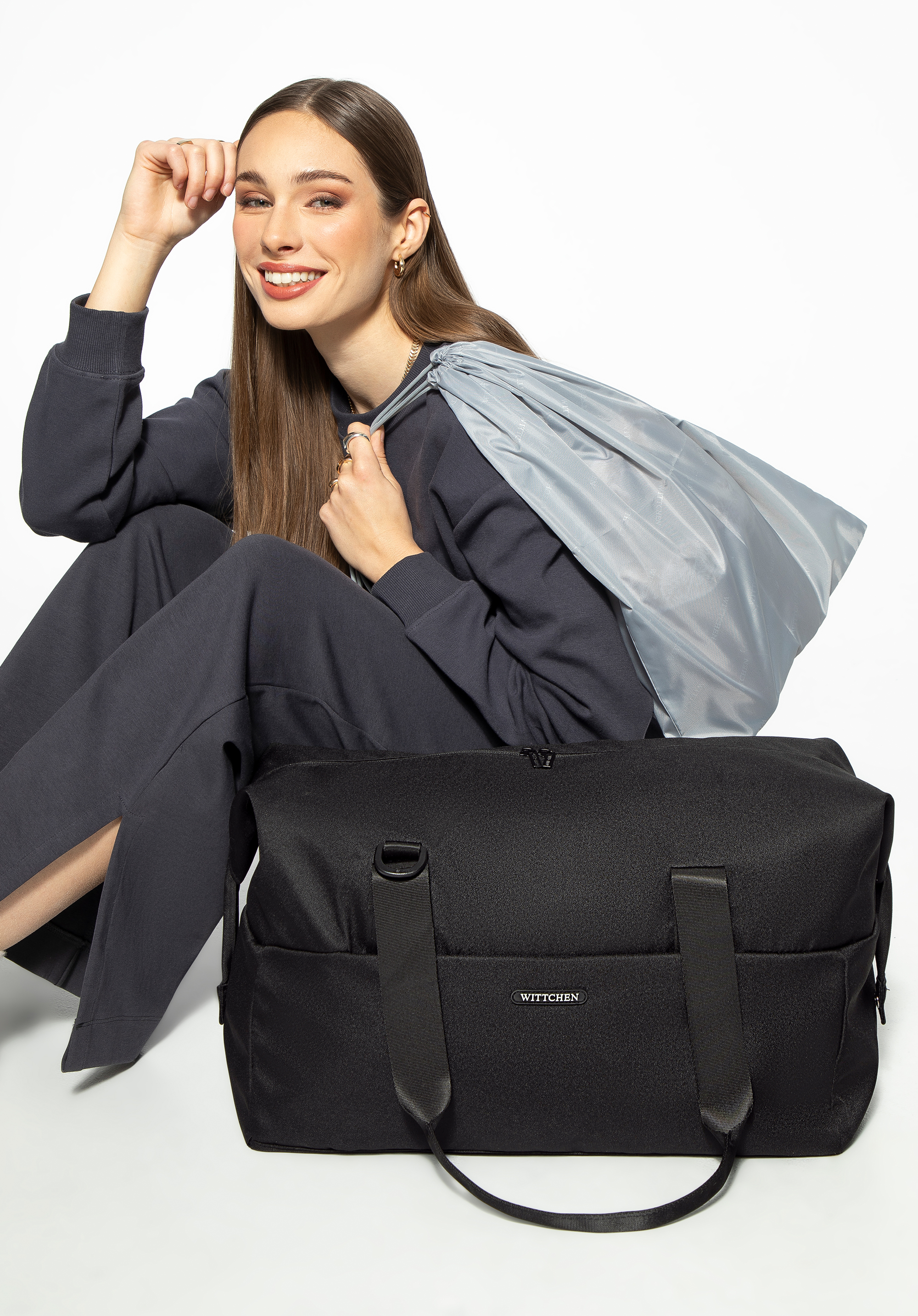- Dodatkowe akcesoria: Specjalny worek o wymiarach 32,5 × 45,5 cm, idealny do przechowywania obuwia, który oddziela od reszty zawartości torby i zapewnia czystość.