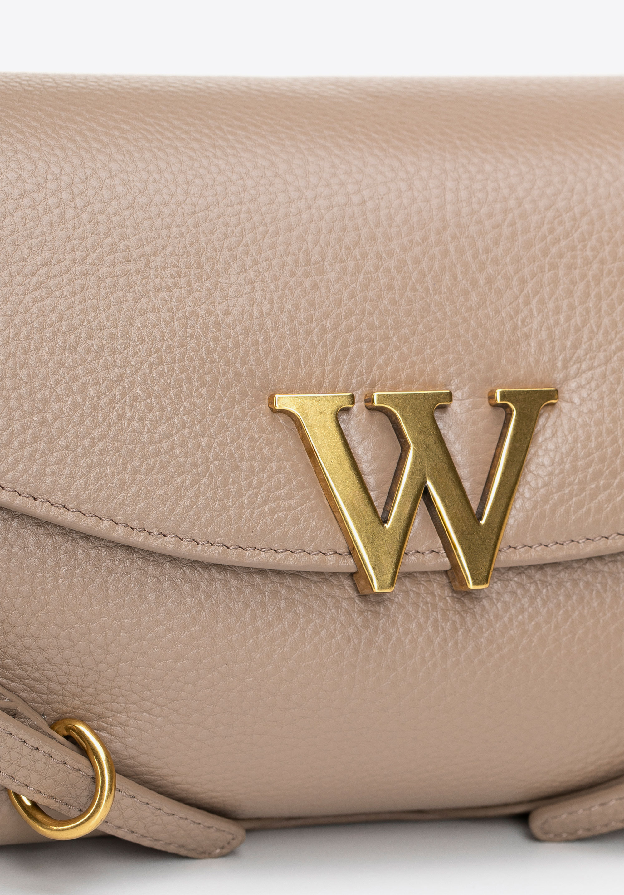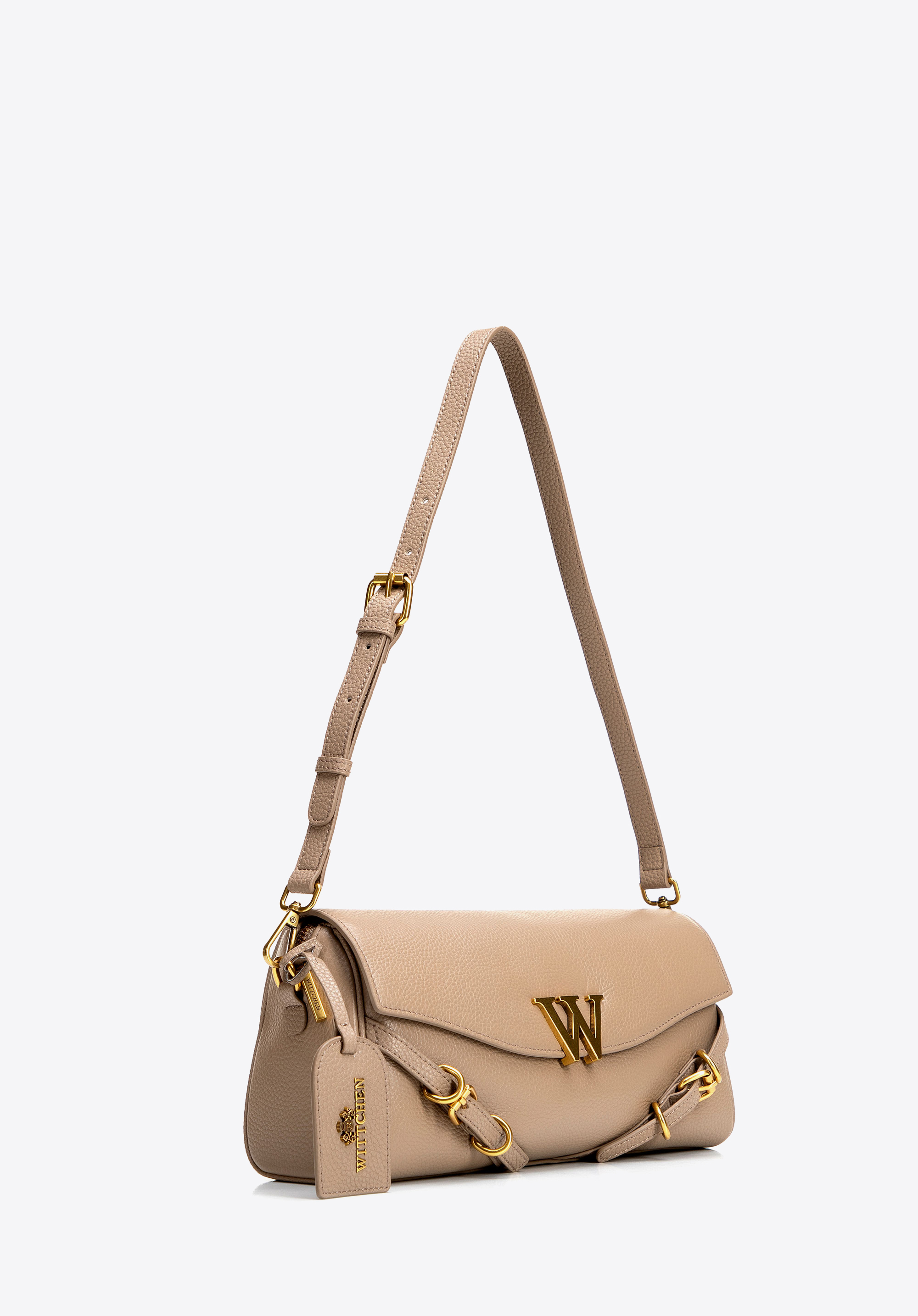 Torebka bagietka ze skóry naturalnej z ozdobnymi paskami beżowa
