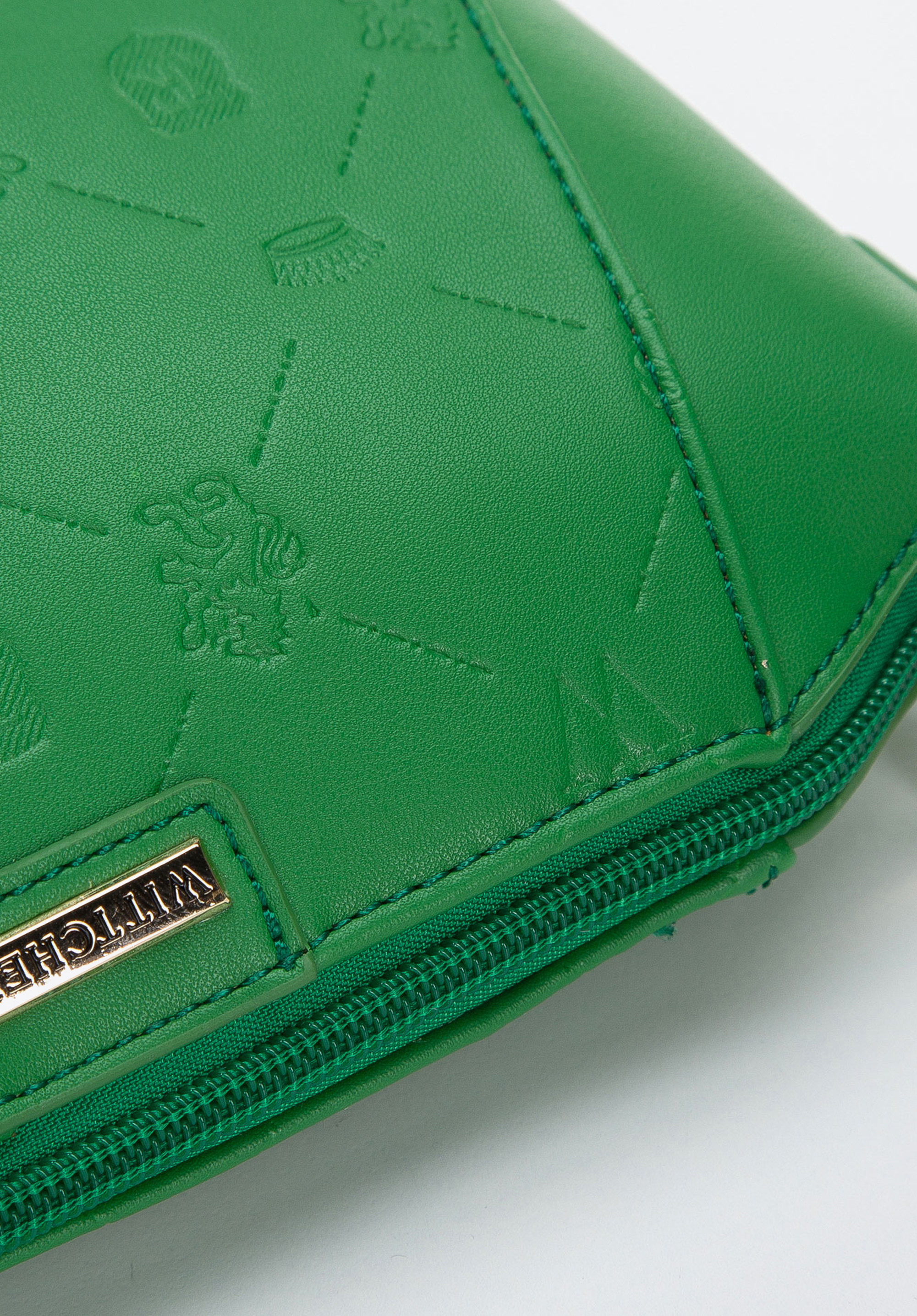 Prosta i efektowna torebka na co dzień. Ma trapezowy kształt i mały rozmiar, odpowiedni, by zmieścić osobiste drobiazgi, na przykład portfel, telefon, pomadkę i etui na okulary. Suwak nie biegnie prosto, tylko po obrysie trapezu, co zwiększa jej pojemność. Jest uszyta z gładkiej skóry ekologicznej tłoczonej w deseń znany z linii Signature: monogram WITTCHEN, korony, lwy i herb. Tłoczenie nadaje tej miejskiej torebce wyjątkowości. Torba zapina się na suwak, a w środku ma dwie wygodne kieszonki. Mała torebka crossbody tłoczona w logopasuje do wielu stylizacji: od zupełnie swobodnej bluzy z dżinsami po elegancką sukienkę.