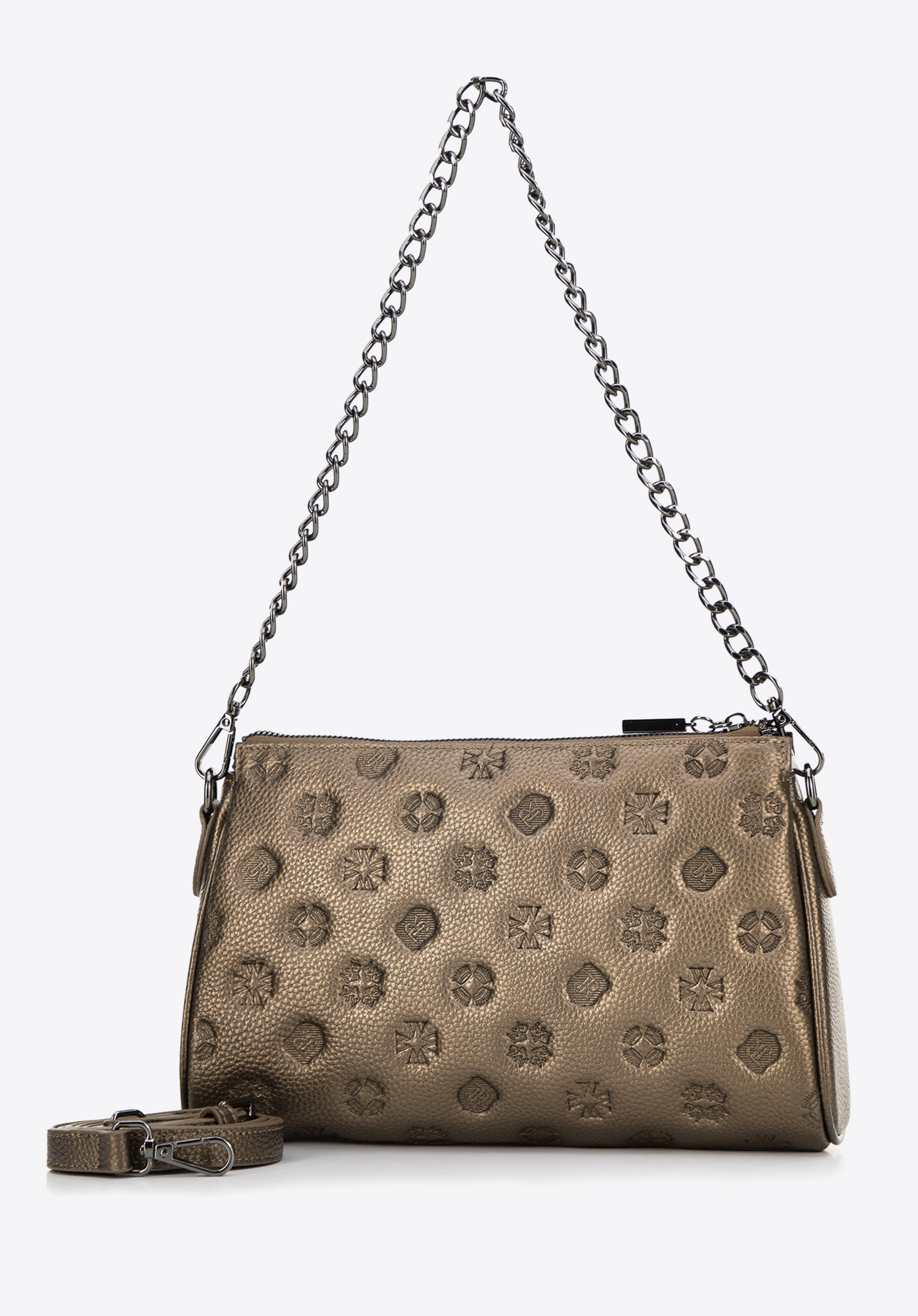 Torebka crossbody skórzana z tłoczeniem złota