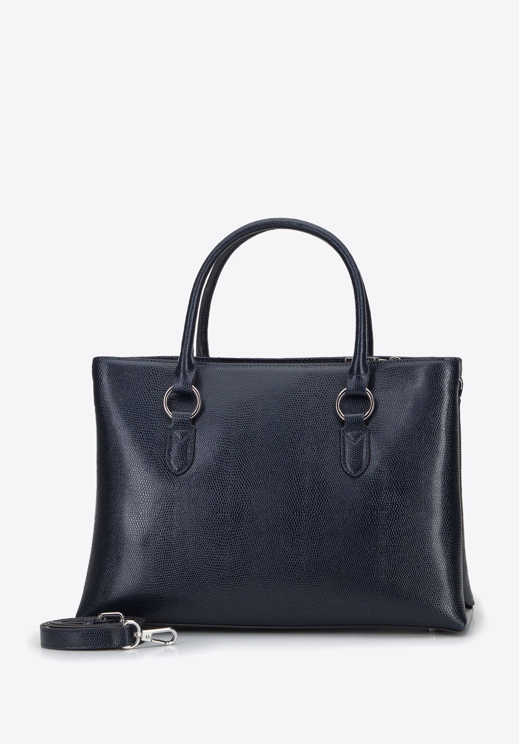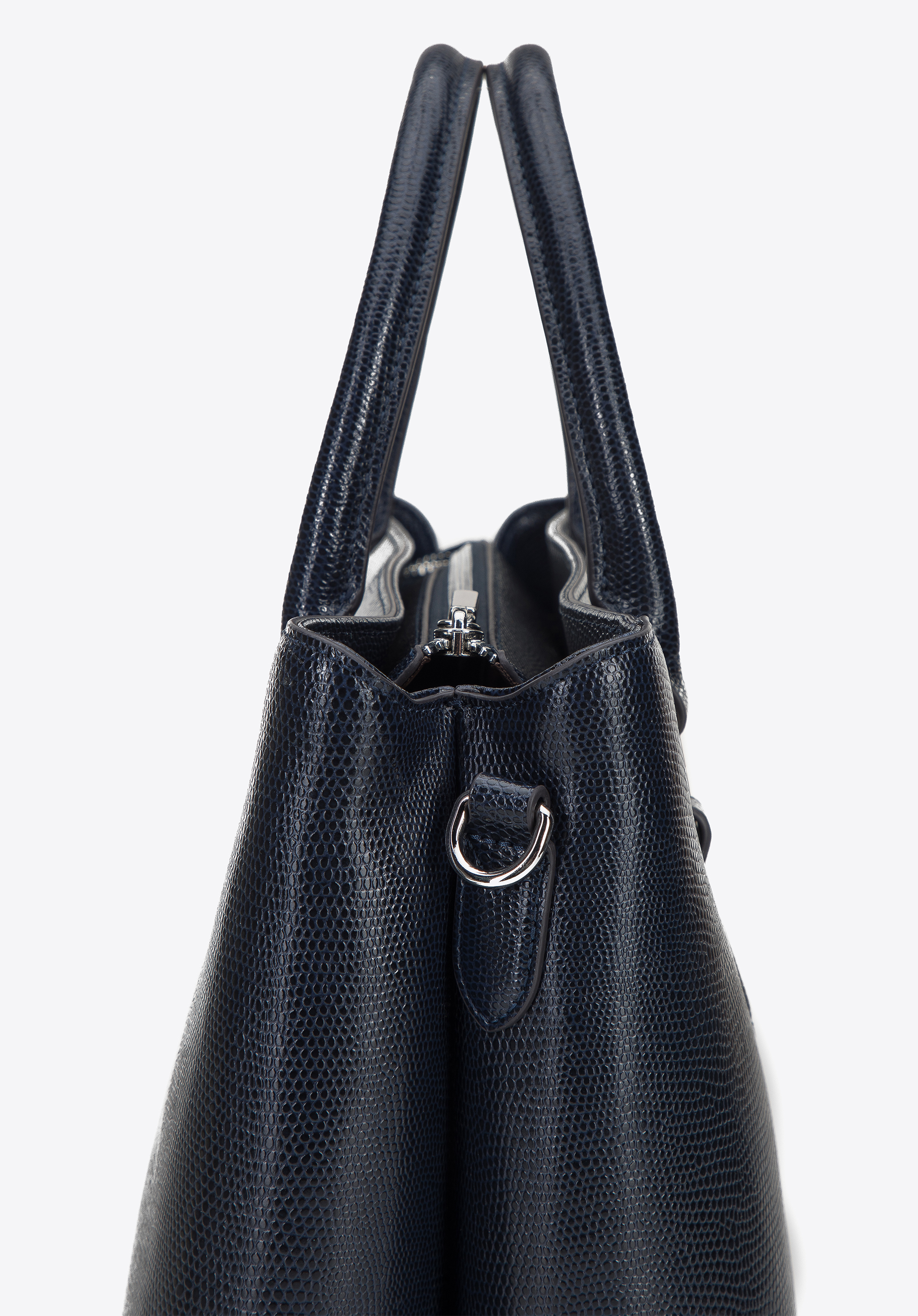 Torebka kuferek ze skóry o fakturze lizard z wycięciem może być Twoją nową, ulubioną torebką na co dzień.