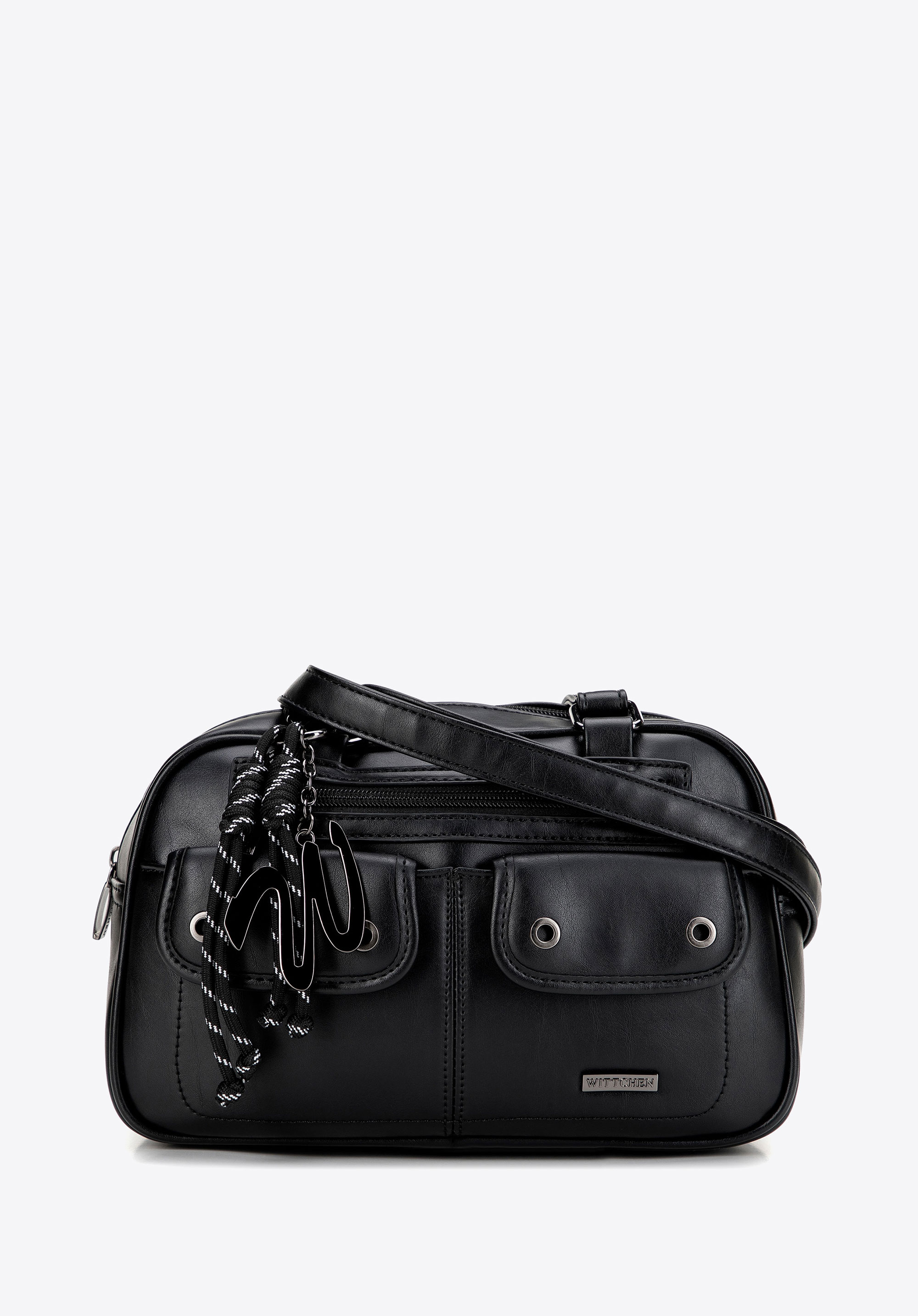 - Dodatkowe kieszenie na przodzie: Dwie praktyczne kieszenie na zapięcie magnetyczne oraz kieszeń na zamek – idealne na telefon, klucze czy drobiazgi.