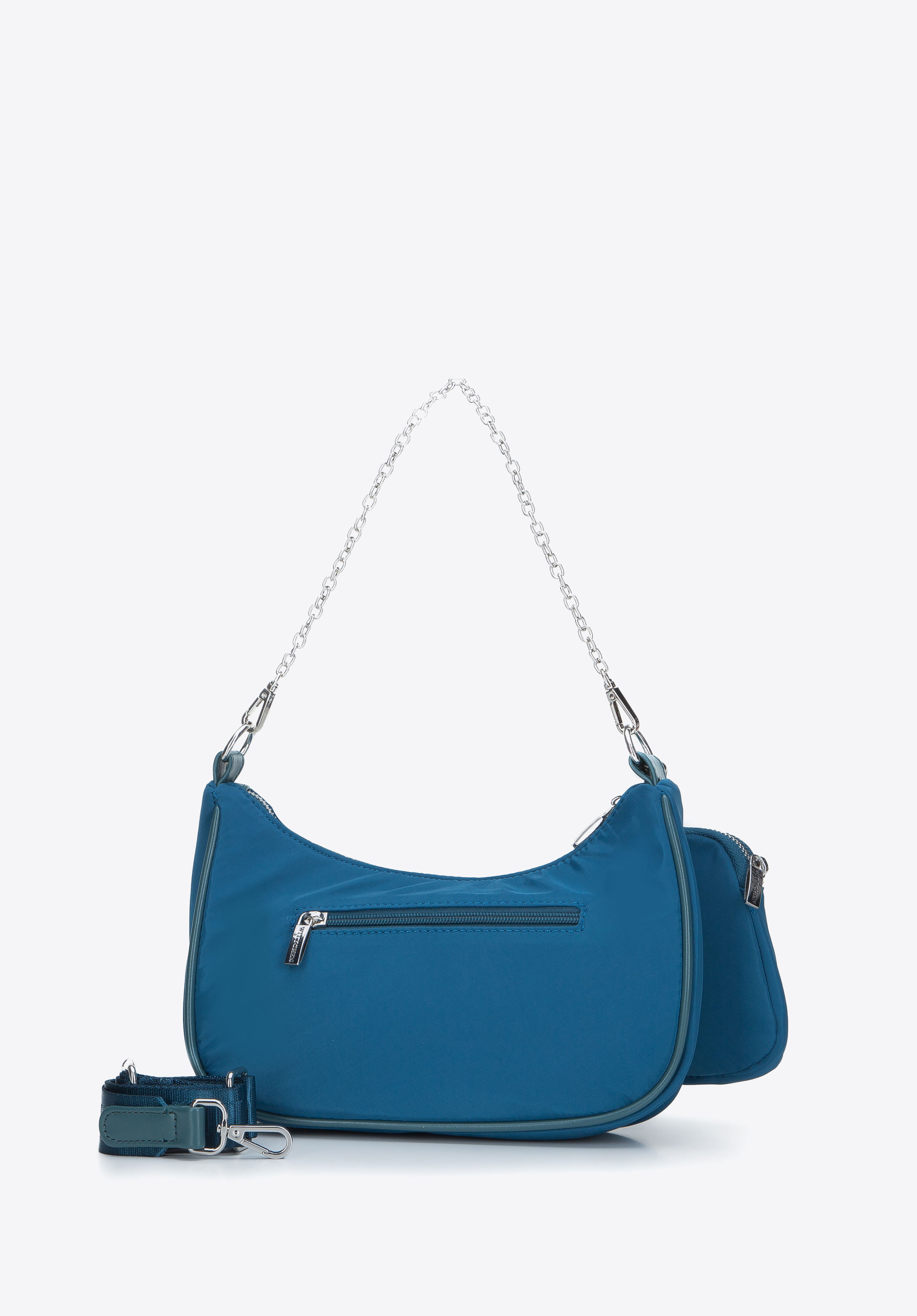 - z tyłu zapinana na suwak pozioma kieszonka;
