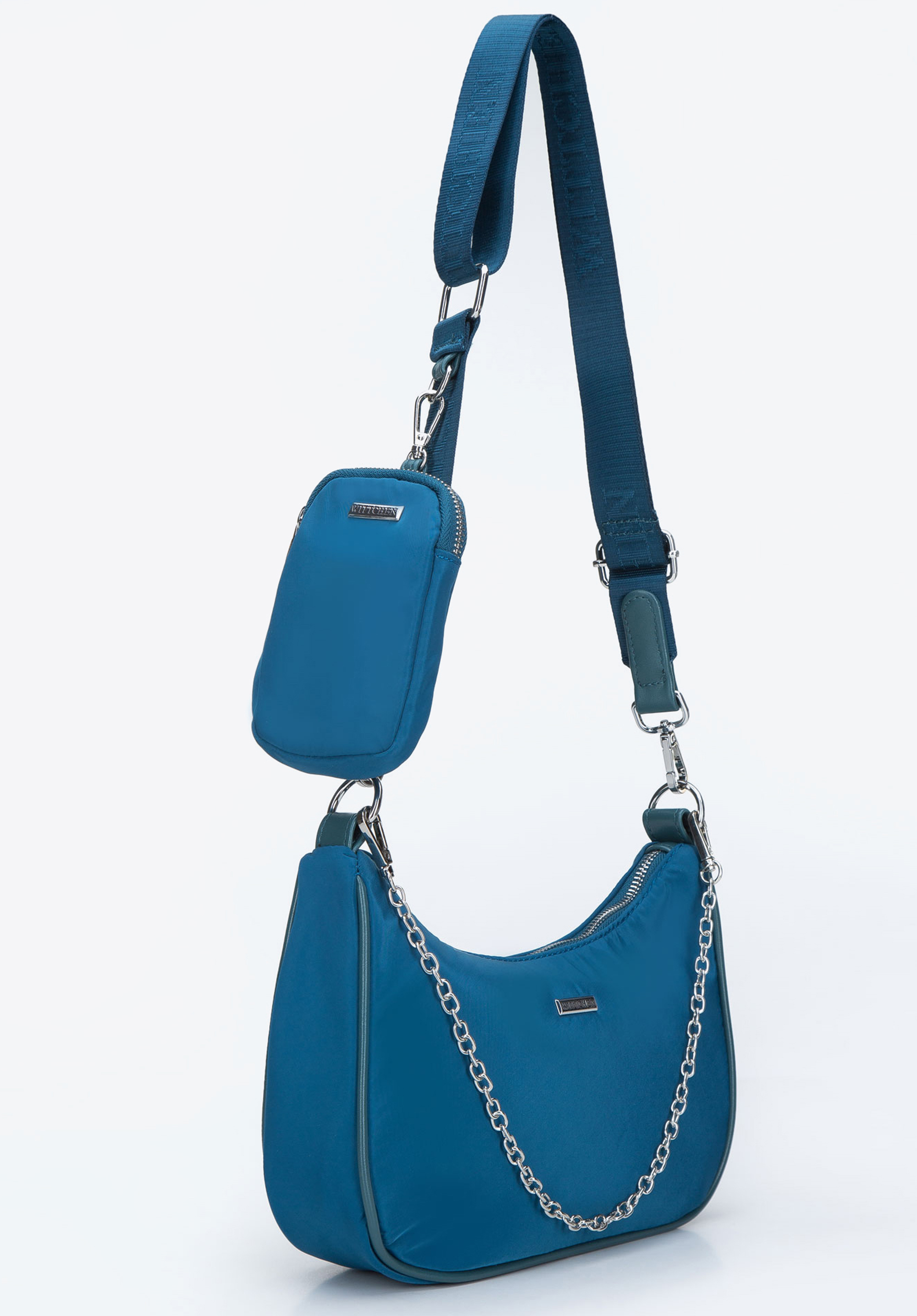 Mała damska listonoszka w kształcie rogala nawiązuje do najnowszych trendów, ale w oryginalnym wydaniu. Torebka uszyta jest z wysokiej jakości, grubej tkaniny o lekkim połysku ze wstawkami ze skóry ekologicznej. Modny kształt, a także drobny łańcuszek na karabińczyki i doczepiana saszetka przyciągną niejedno spojrzenie. Do saszetki wrzucisz drobne kosmetyki; możesz ją również odpiąć i używać osobno lub schować wewnątrz torebki. Z kolei do listonoszki zmieścisz najpotrzebniejsze drobiazgi: portfel, okulary przeciwsłoneczne, klucze i chusteczki. Uzupełnij swój wiosenno-letni look o torebkę rogal z tkaniny z saszetką, po którą będziesz sięgać z przyjemnością.
