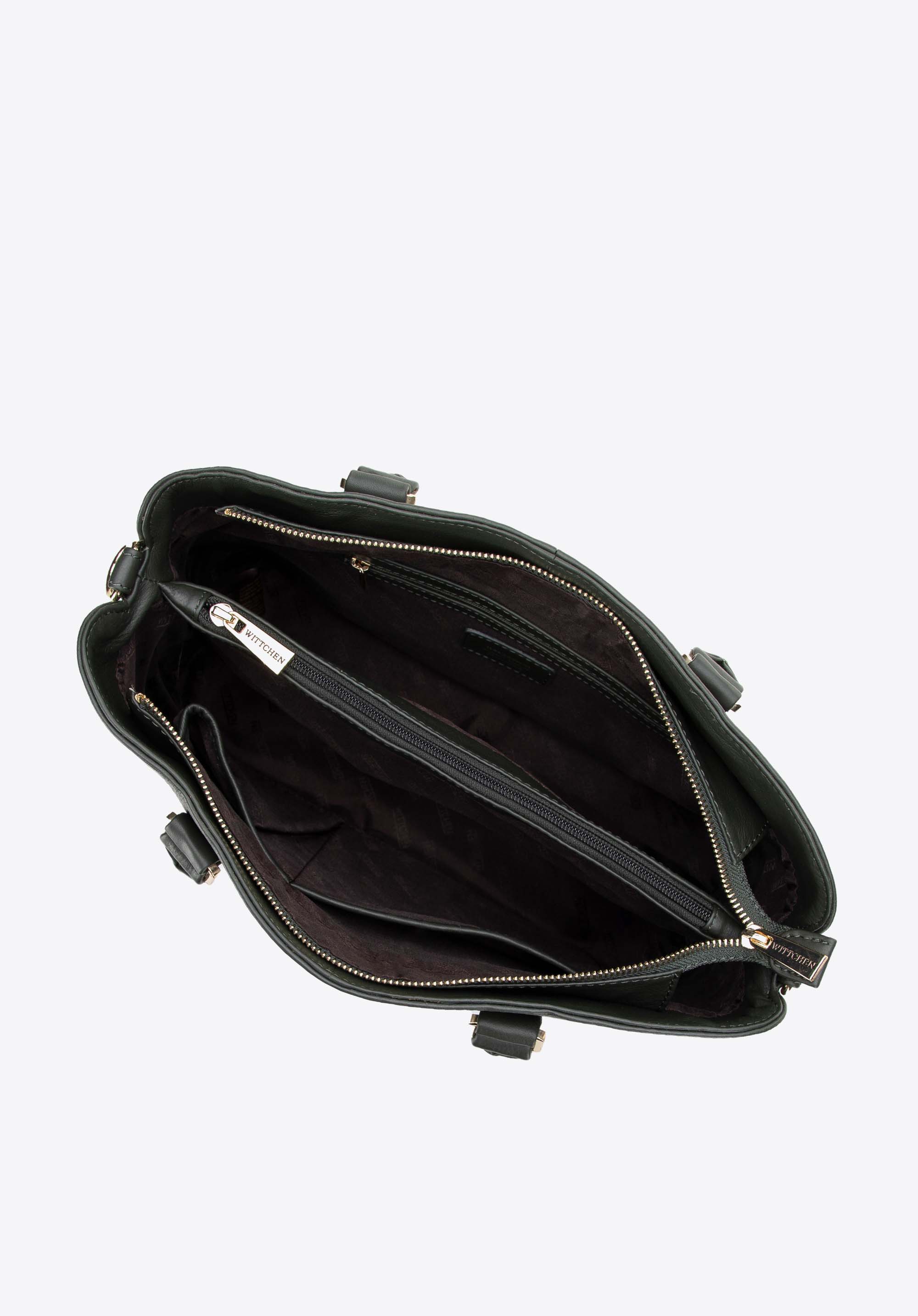 - Praktyczne detale: Usztywnione dno i metalowe nóżki pomagają zachować kształt torebki i chronią ją przed uszkodzeniami, gdy stawiasz ją na ziemi.