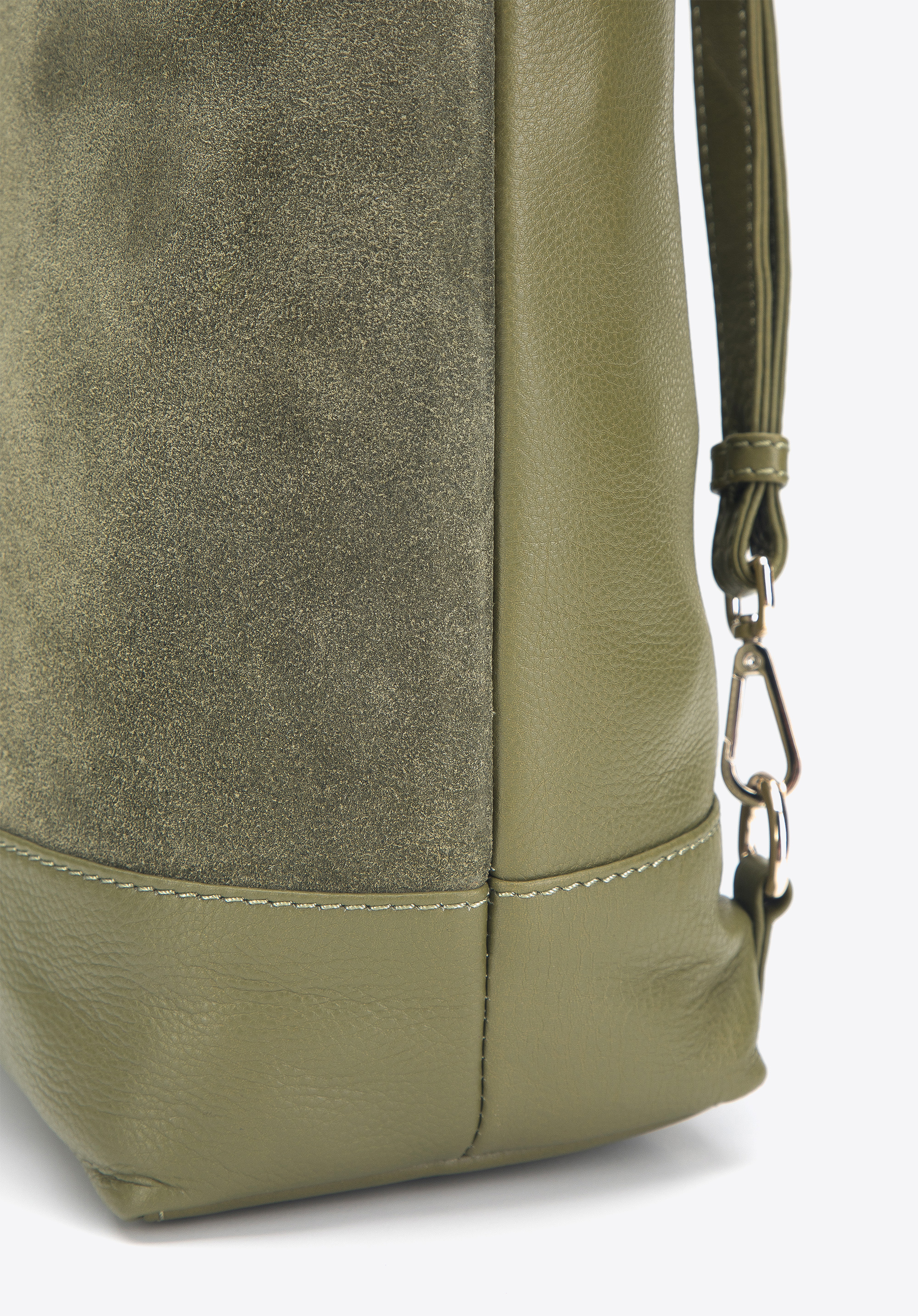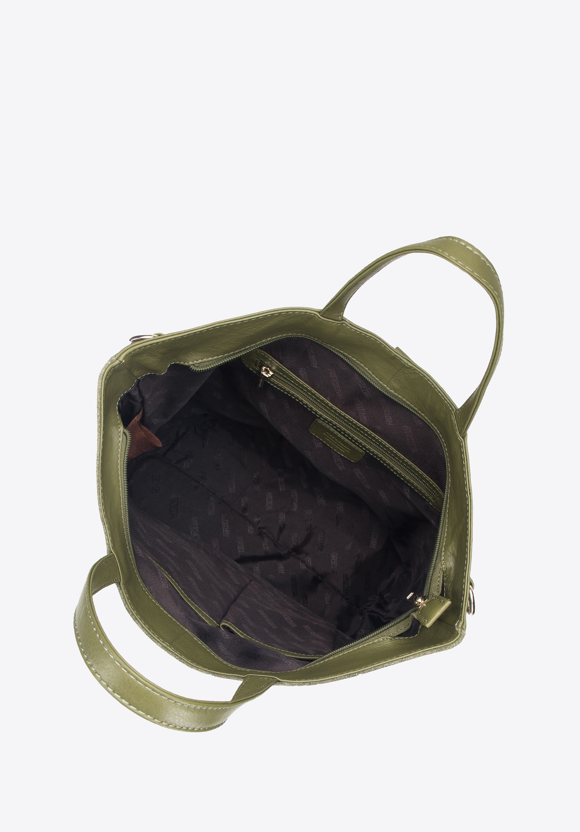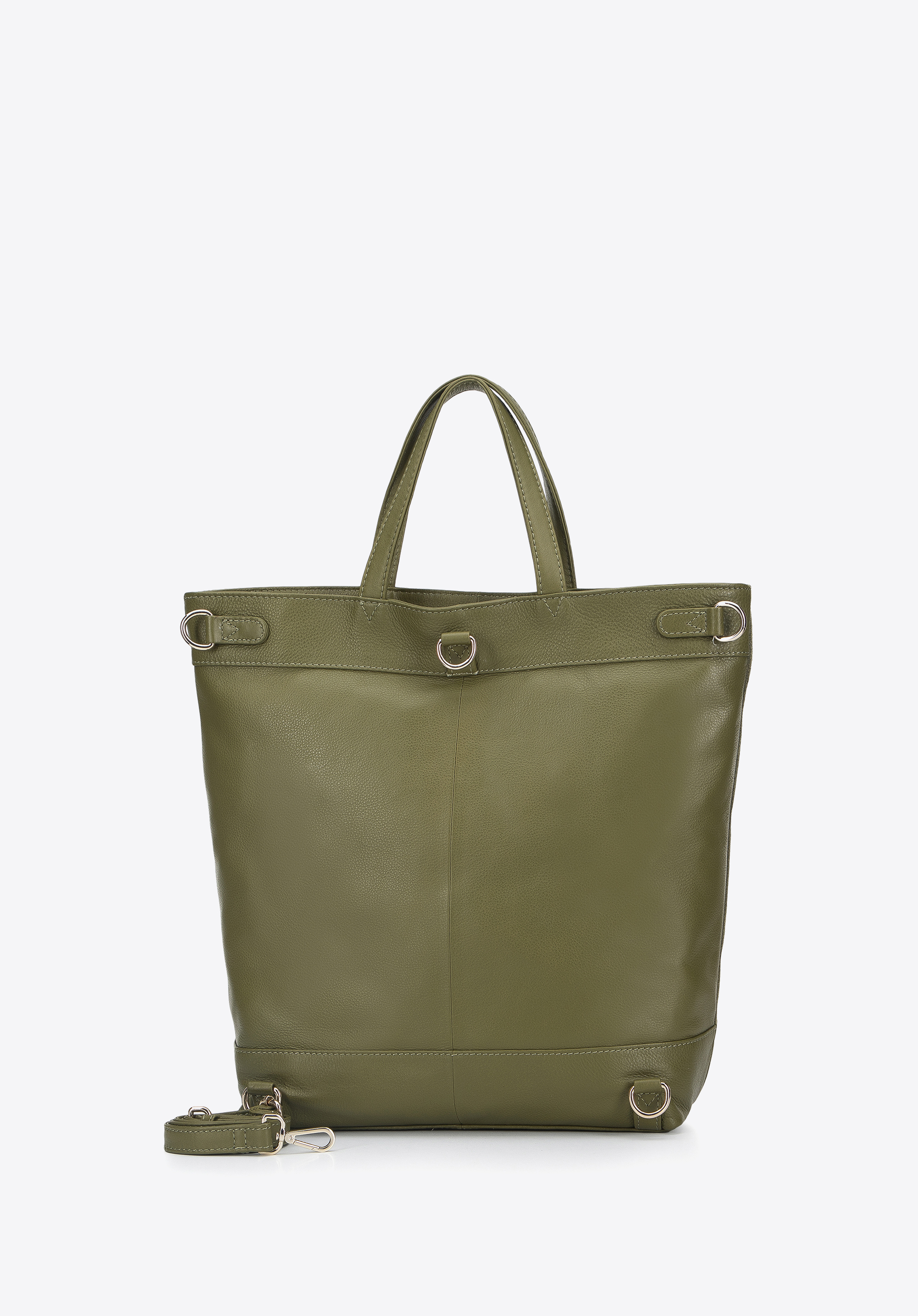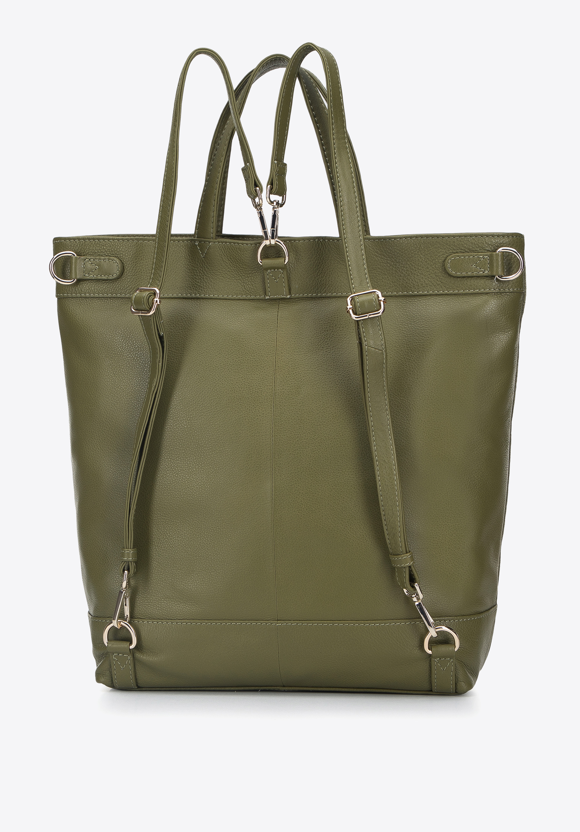 Torebka shopperka skórzana z funkcją plecaka zielona