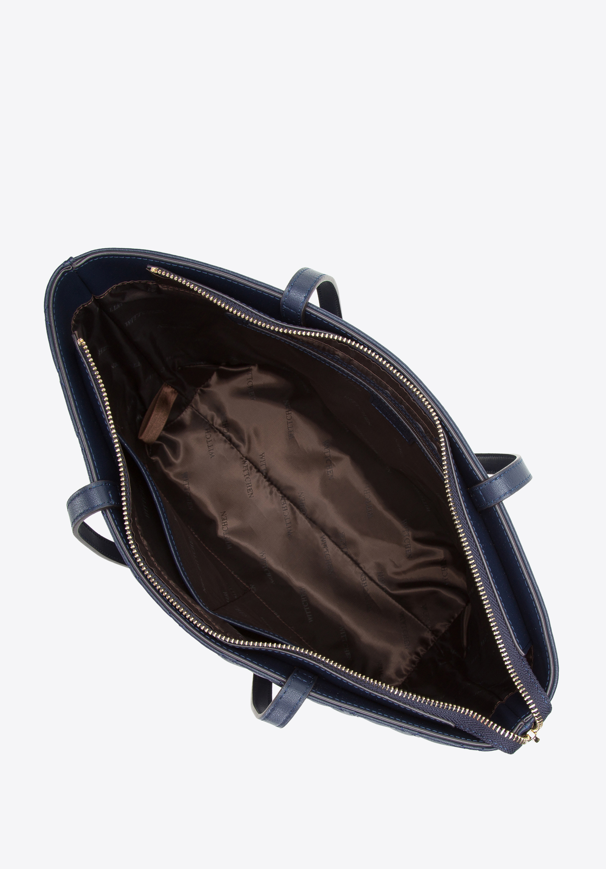 bardzo pakowna, w środku zmieścisz dokumenty w formacie A4, kosmetyczkę, kalendarz, kubek termiczny i zapasowy szal. Noś ją do kobiecego garnituru lub dodaj elegancji ulubionym dżinsom i koszuli – w każdej sytuacji stylowo dopełni Twój strój.
