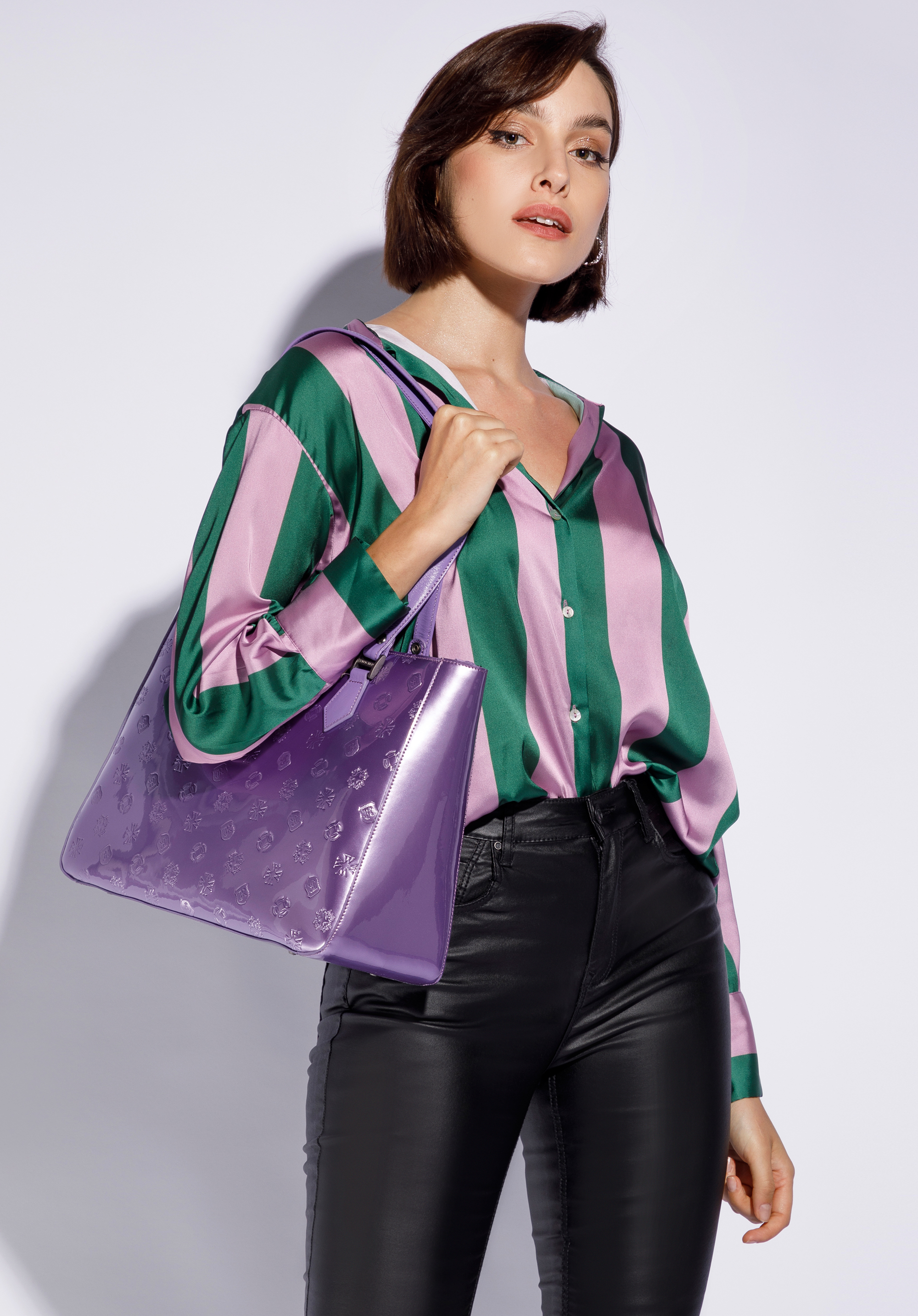 Torebka shopperka z błyszczącej skóry w monogram to świetny wybór dla każdej nowoczesnej kobiety.