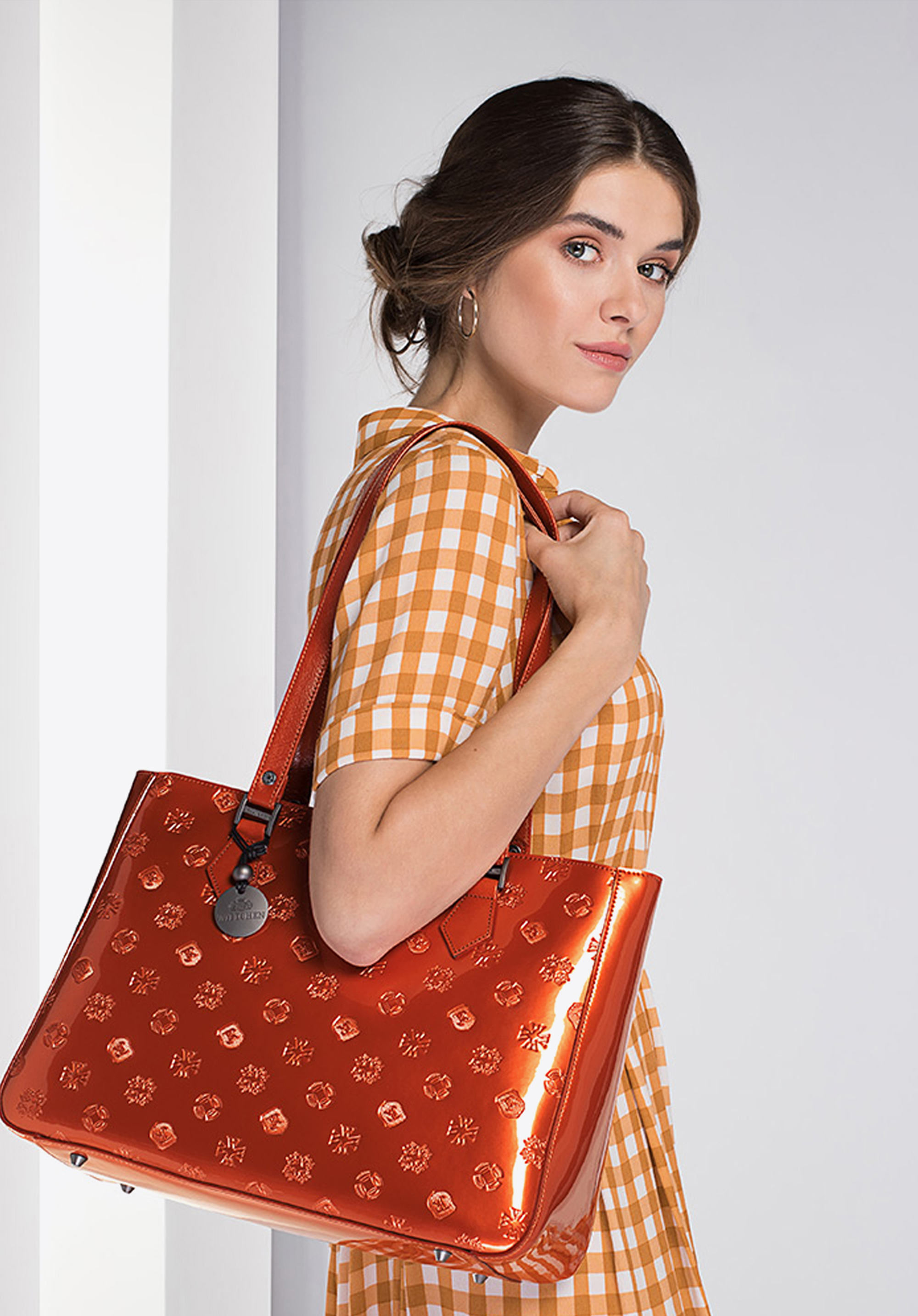 Torebka shopperka z błyszczącej skóry w monogram to świetny wybór dla każdej nowoczesnej kobiety.