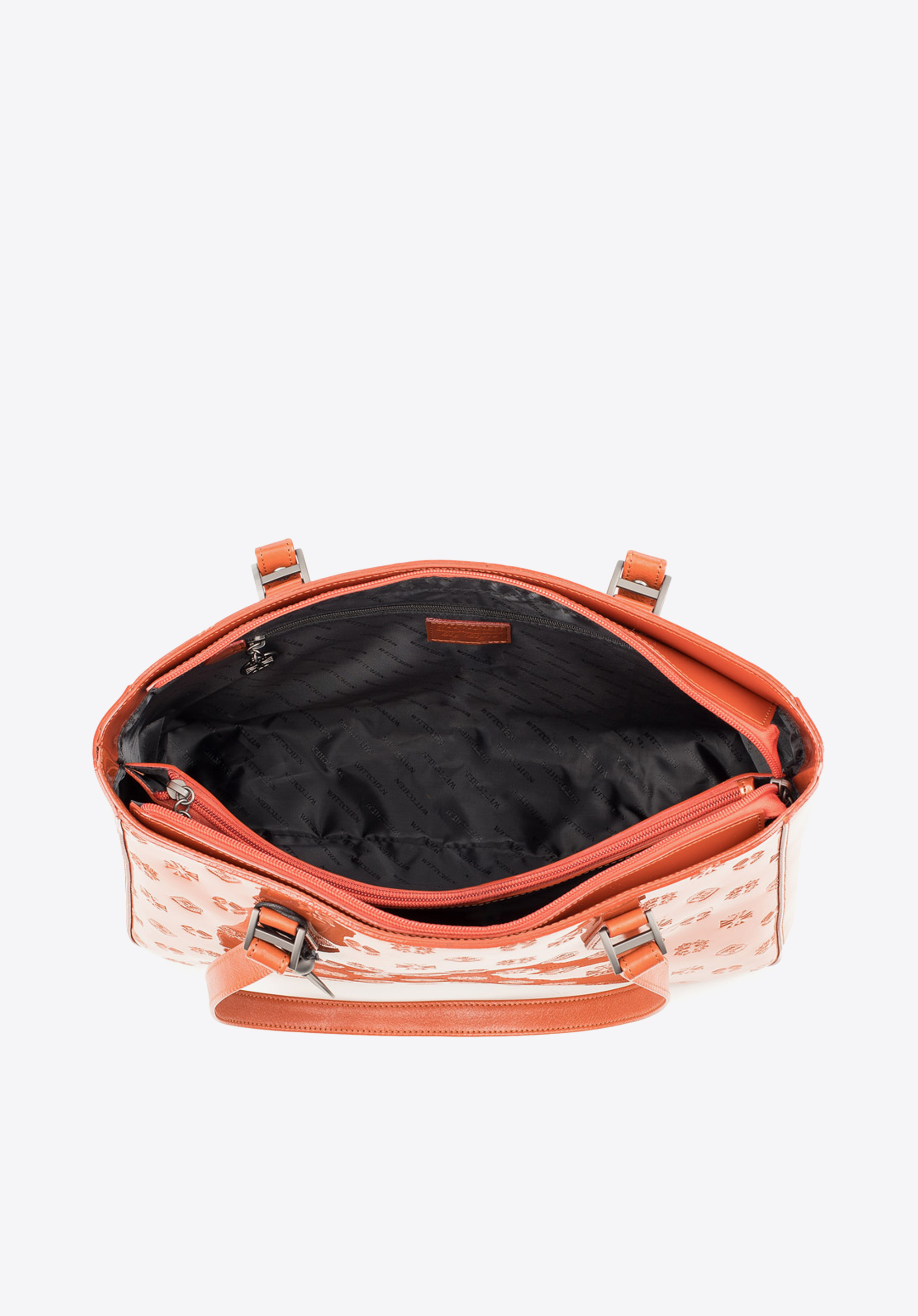 Wykonana została z najlepszej jakości skóry: lakierowanej w monogram z przodu i z tyłu oraz połyskującej po bokach. Wewnątrz jest bardzo pakowna, zmieścisz w niej portfel, dokumenty w formacie A4, kilka kosmetyków i wiele drobiazgów. Możesz ją nosić i do dżinsów i t-shirtu i gładkiej sukienki – w każdej sytuacji będziesz wyglądała stylowo.