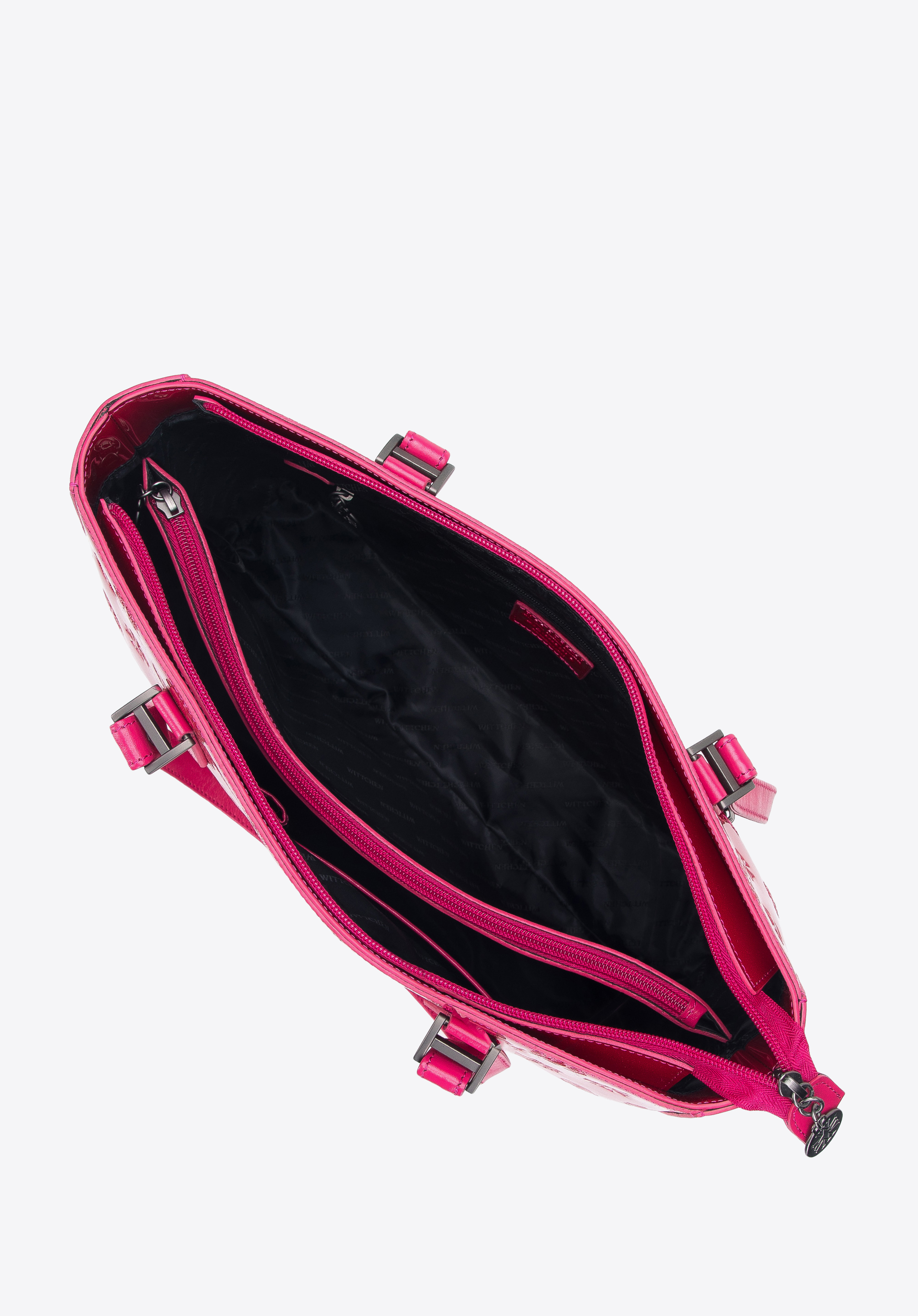 Wykonana została z najlepszej jakości skóry: lakierowanej w monogram z przodu i z tyłu oraz połyskującej po bokach. Wewnątrz jest bardzo pakowna, zmieścisz w niej portfel, dokumenty w formacie A4, kilka kosmetyków i wiele drobiazgów. Możesz ją nosić i do dżinsów i t-shirtu i gładkiej sukienki – w każdej sytuacji będziesz wyglądała stylowo.