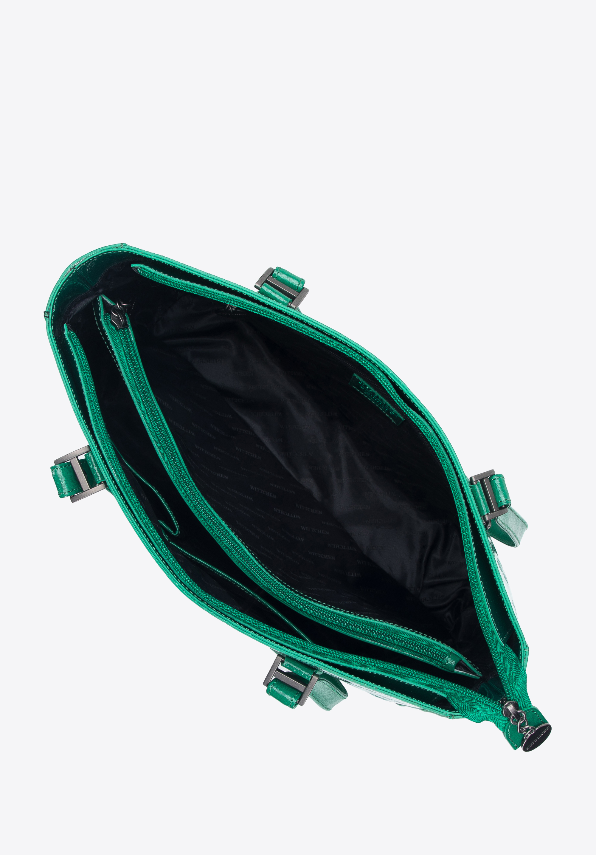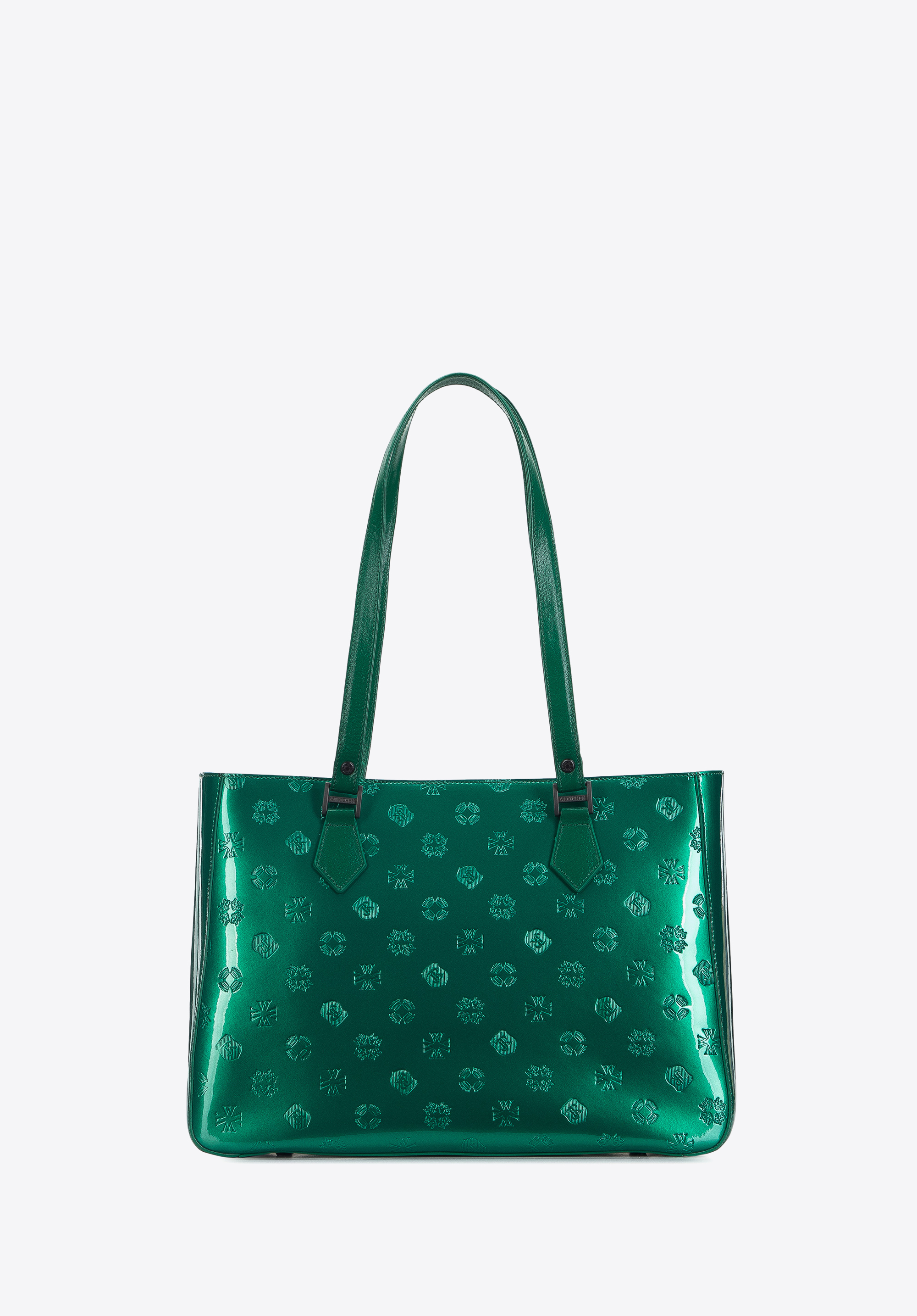 Torebka shopperka z błyszczącej skóry w monogram to świetny wybór dla każdej nowoczesnej kobiety.