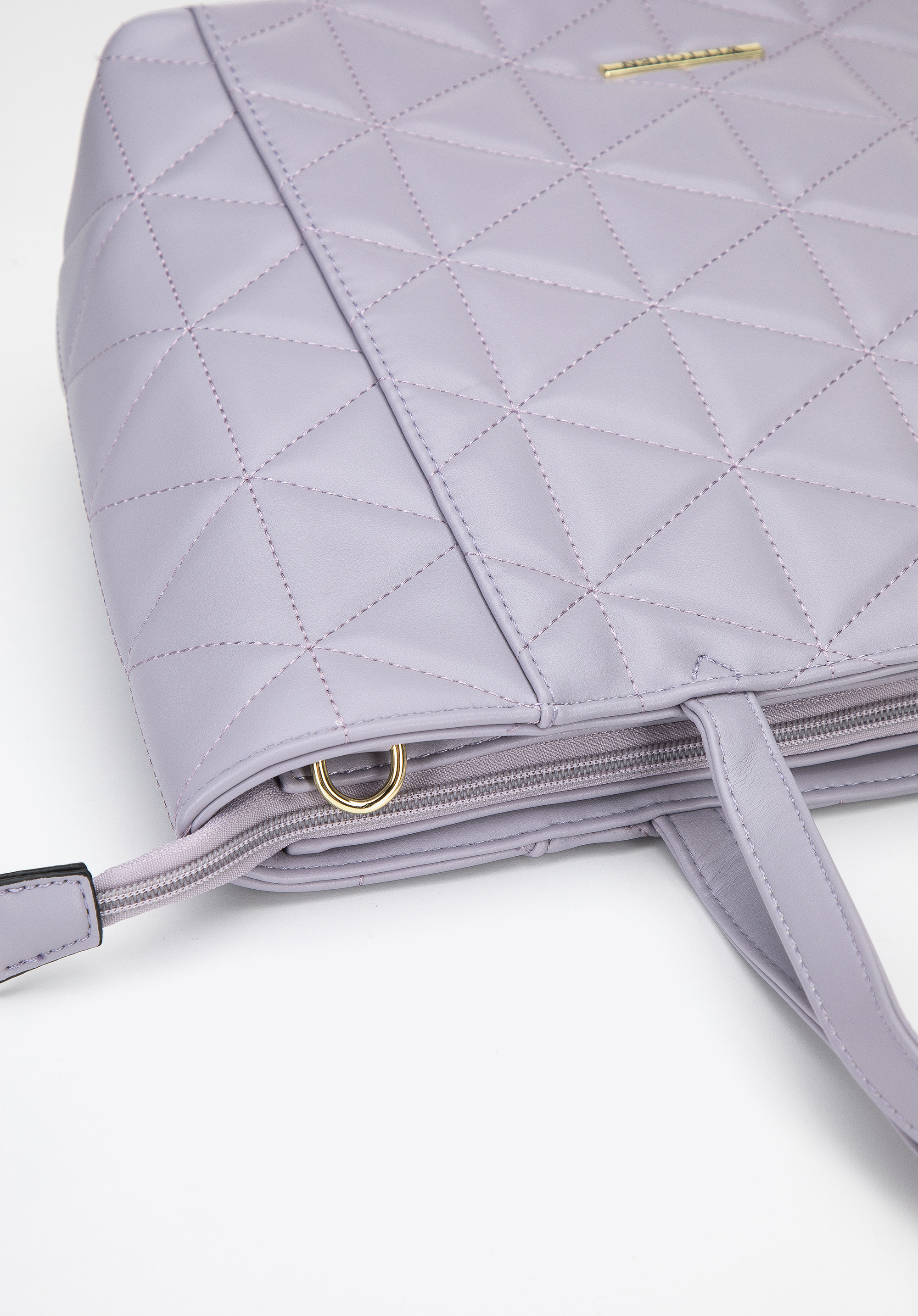 Torebka shopperka z ekoskóry pikowanej w trójkąty będzie świetnie wyglądała i z dżinsami i oversizowym swetrem, i z ulubioną dopasowaną sukienką.