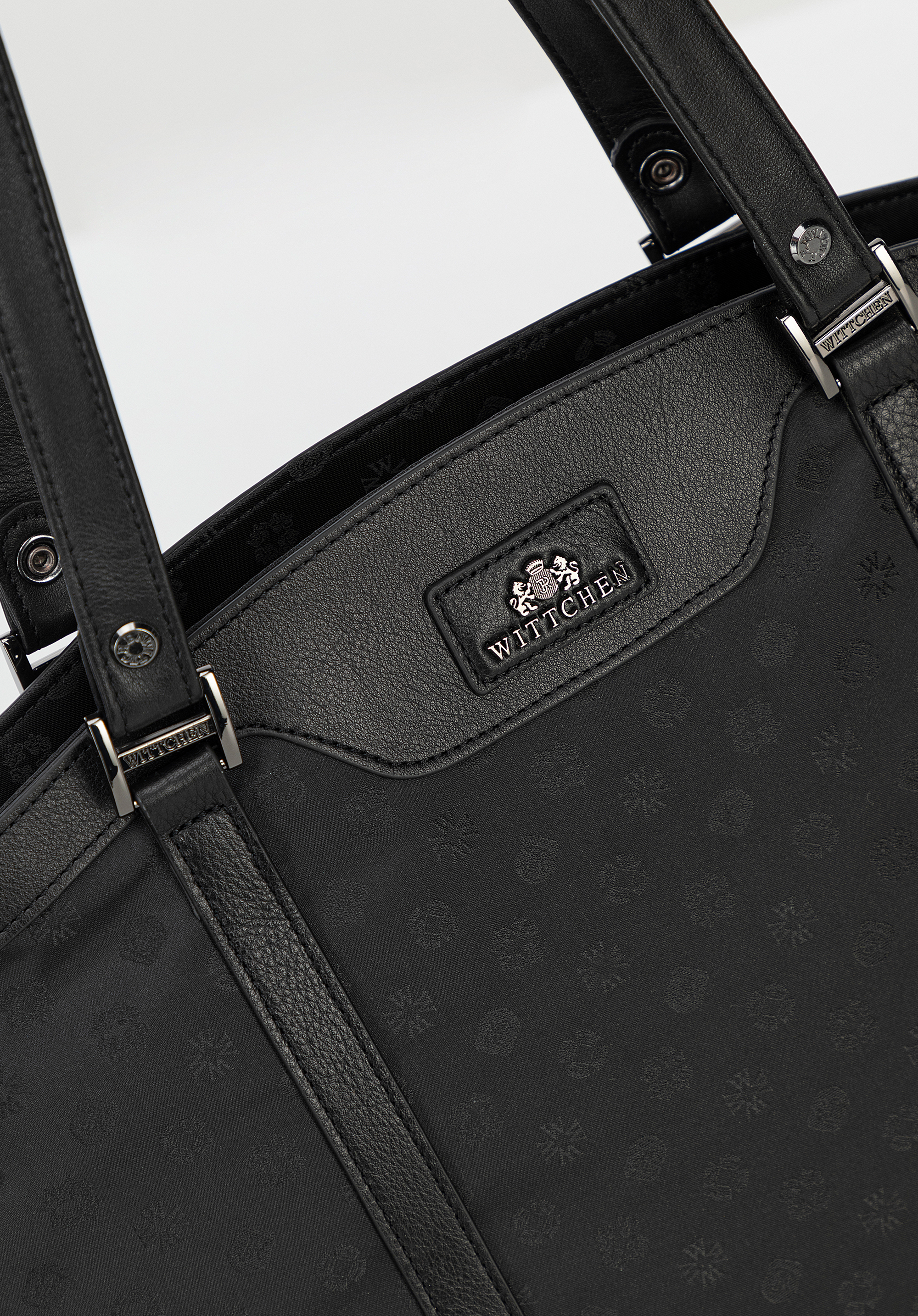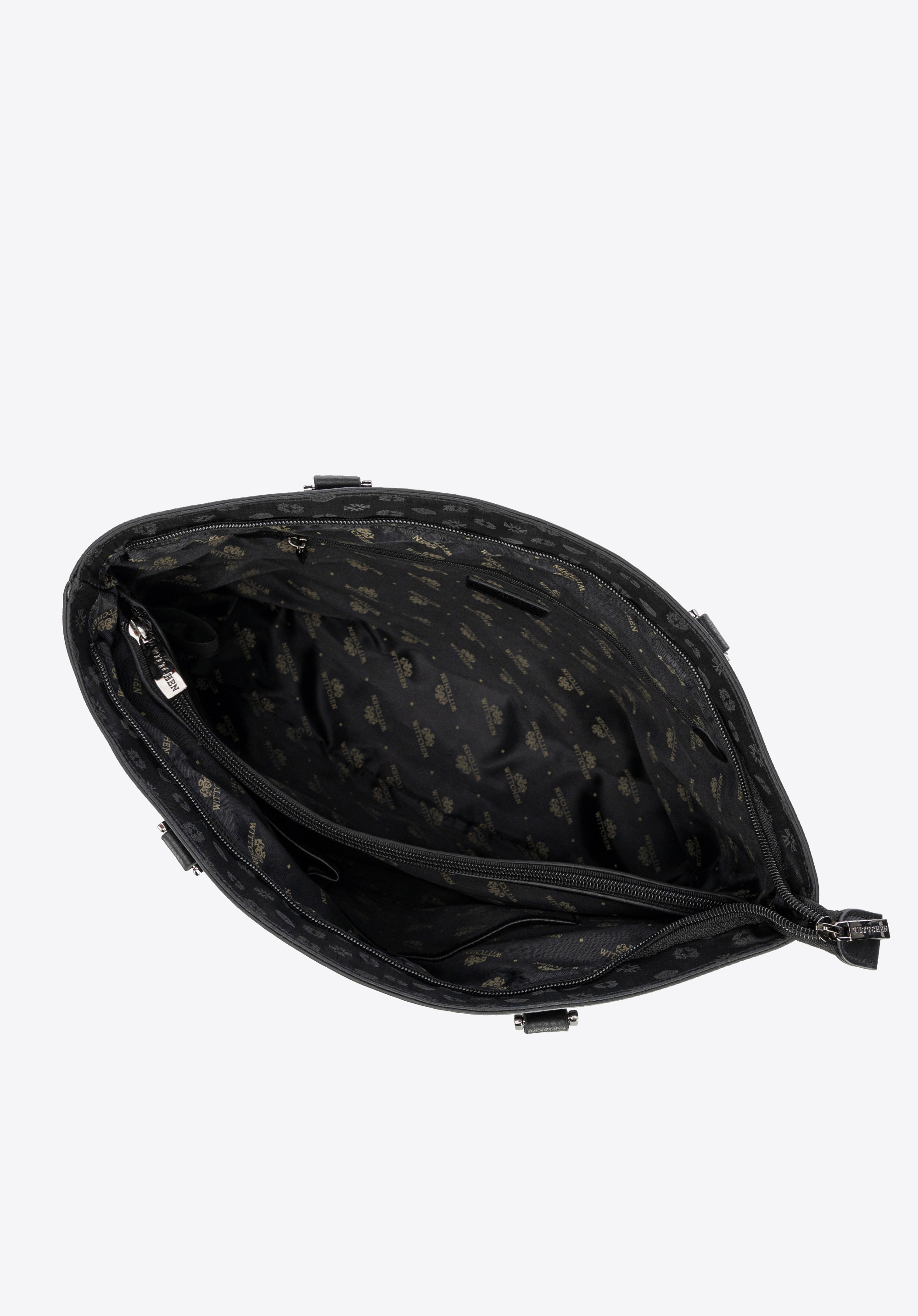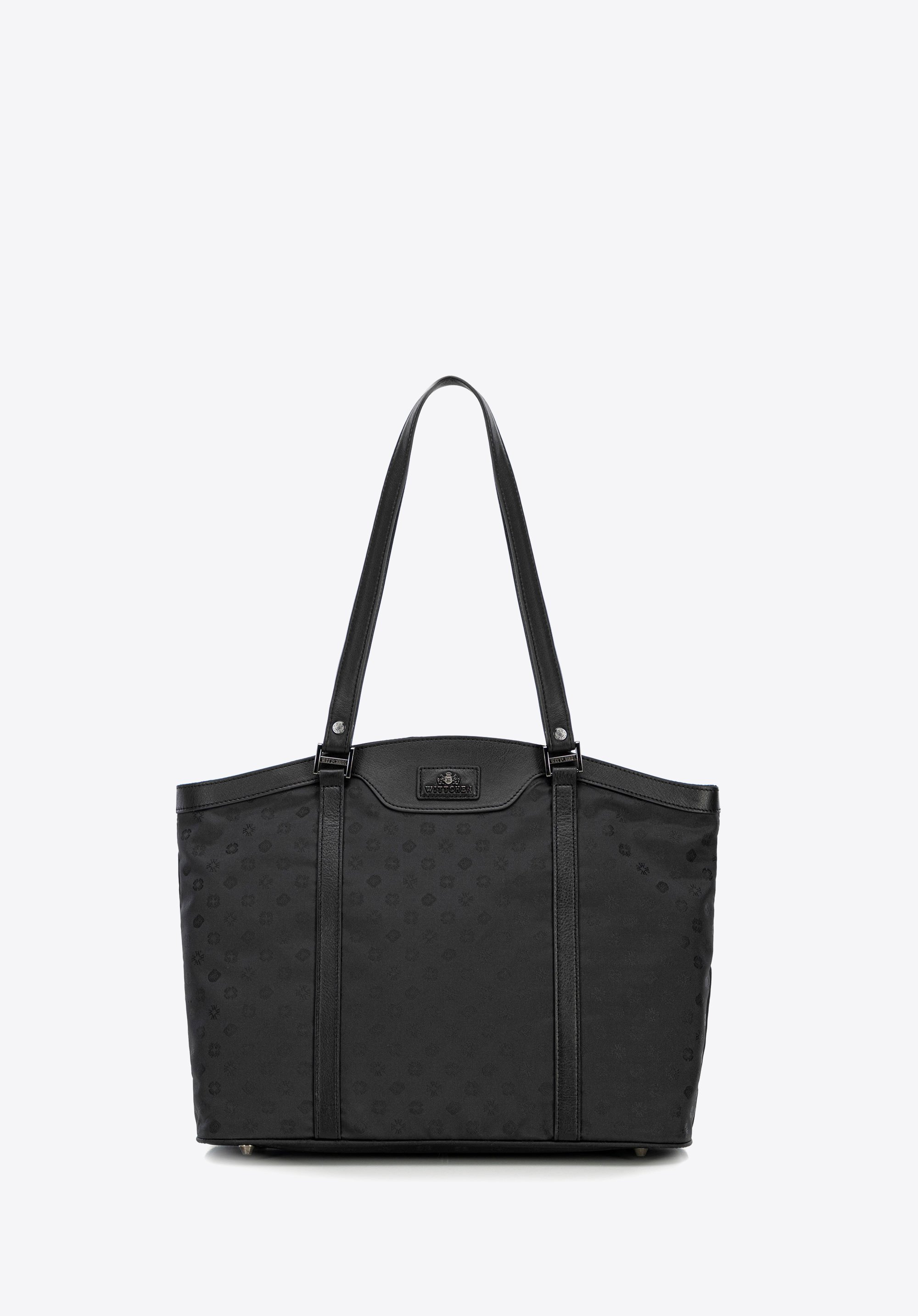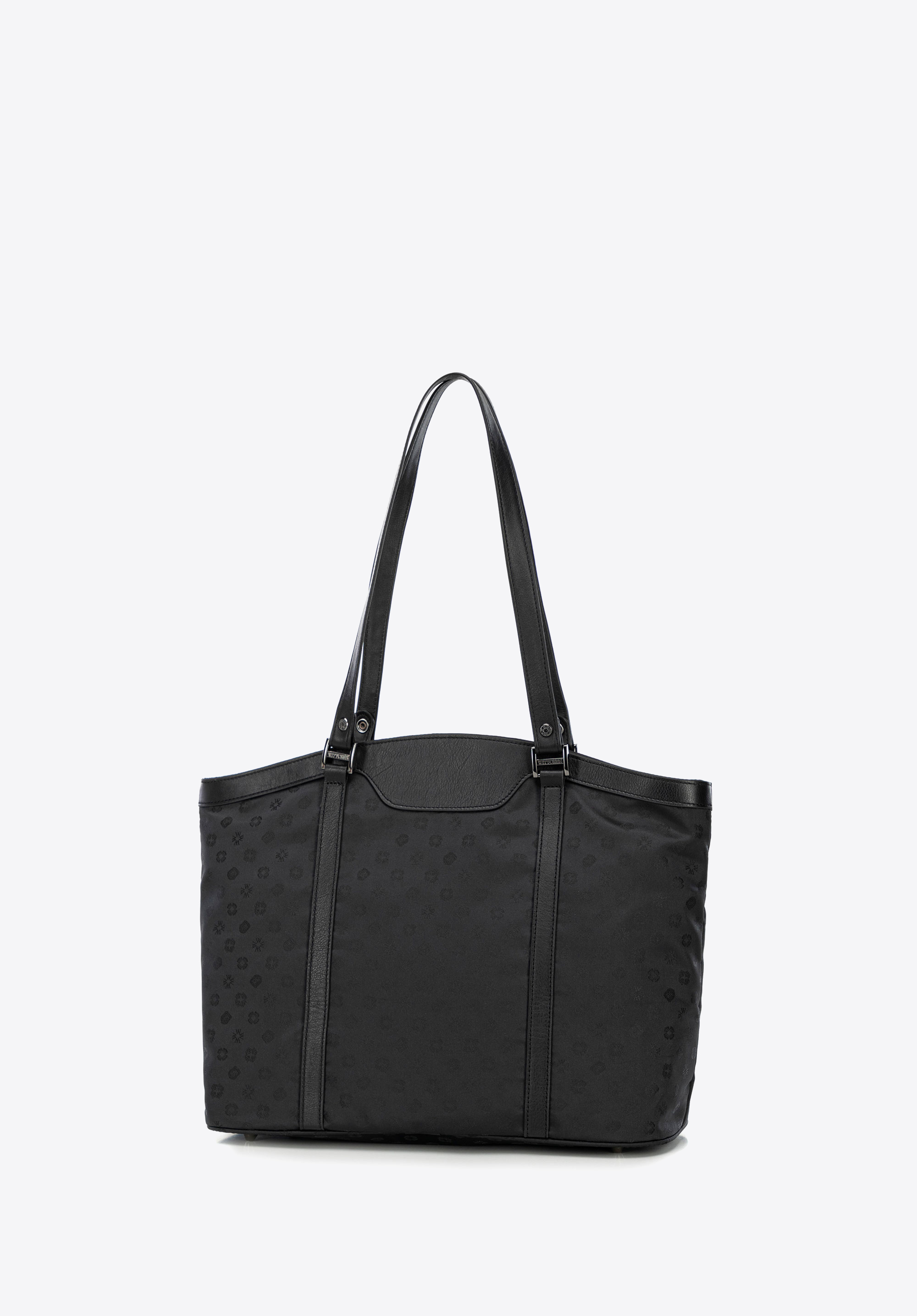 Torebka shopperka z żakardu i skóry w monogramy czarna