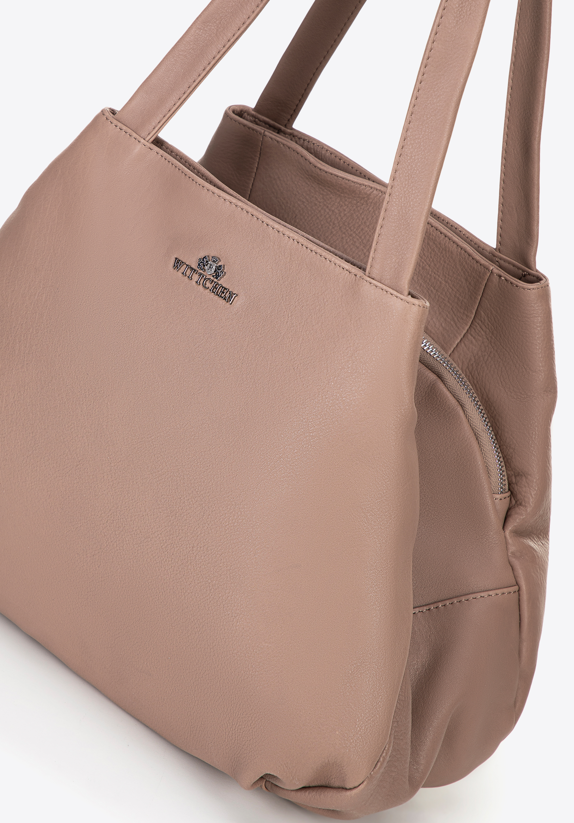 Nasza damska shopperka łączy elegancję z funkcjonalnością. Wykonana ze skóry naturalnej, zapewnia trwałość i ponadczasowy wygląd. Zapięcie na zamek i zatrzask magnetyczny zapewniają pełne bezpieczeństwo Twoich rzeczy. Torebka posiada dwie rączki, które umożliwiają wygodne noszenie w ręce lub na ramieniu. Wnętrze składa się z dwóch komór, między którymi znajdują się kieszenie na zamek, w tym jedna z dodatkowymi kieszonkami do organizacji drobnych przedmiotów.