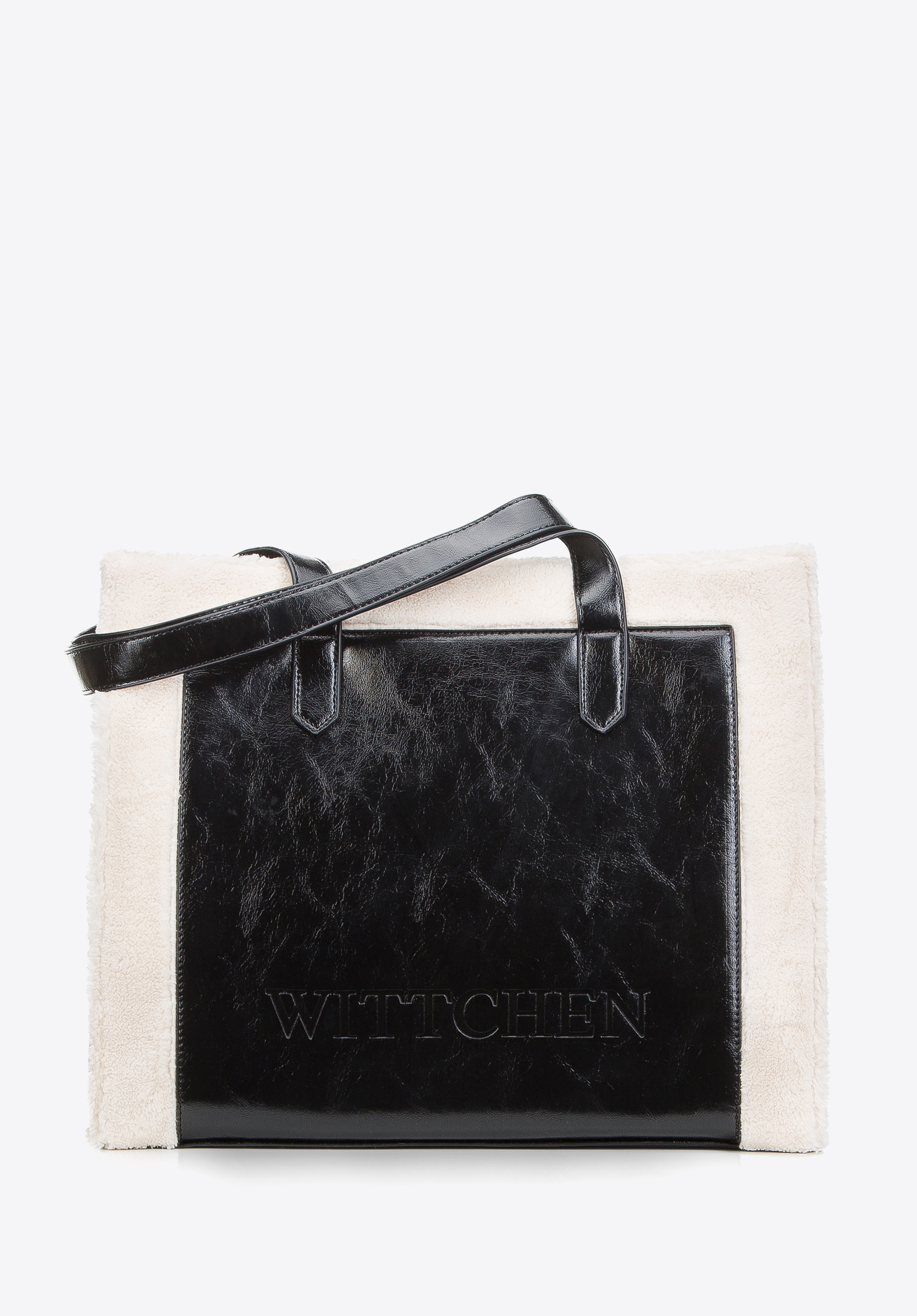 Torebka shopperka ze wstawkami ze sztucznego futerka sprawdzi się zimą w mieście, gdy chcesz połączyć pojemność z modowym akcentem. Połyskująca ekoskóra i miękkie futerkowe obszycia przyjemnie układają się pod ręką, a wnętrze mieszczące A4 i kieszenie pomagają wygodnie uporządkować rzeczy na cały dzień.
