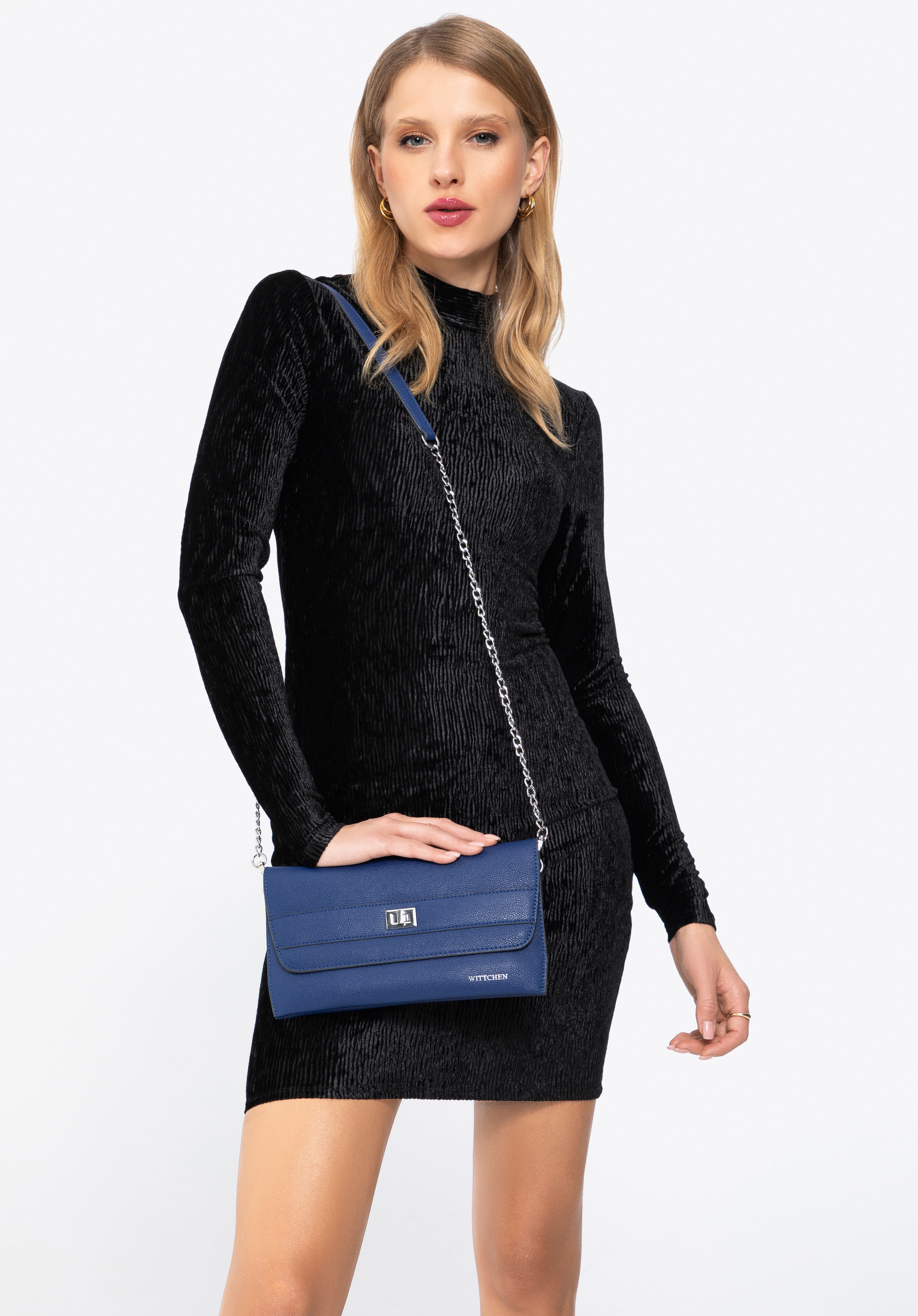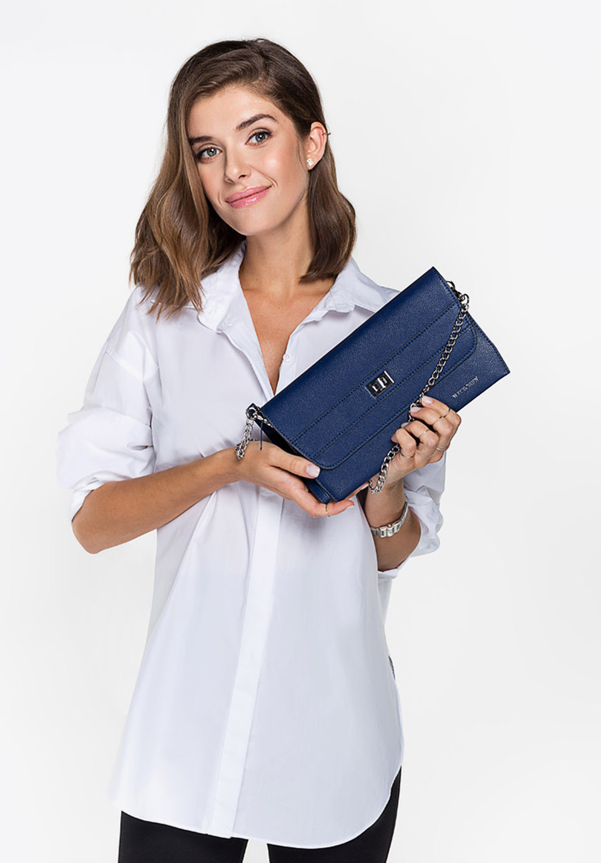 Torebka wieczorowa ze skóry groszkowej niebieska
