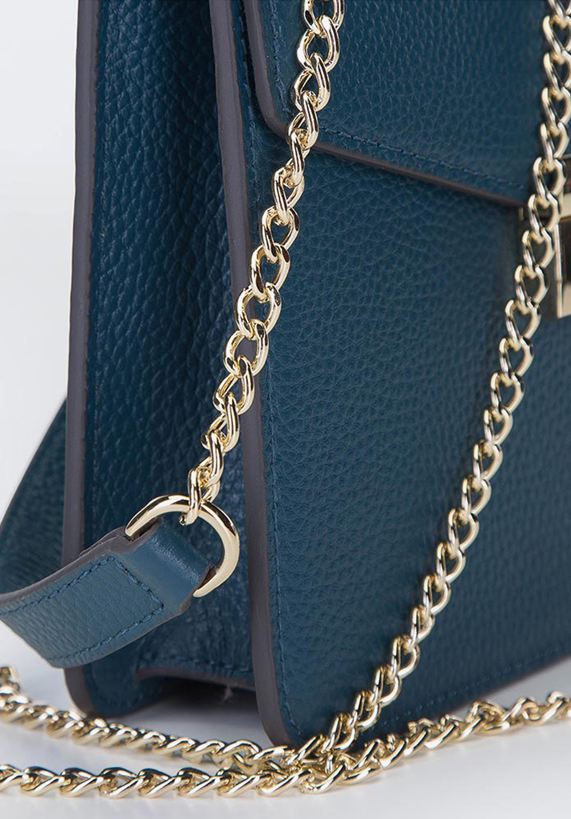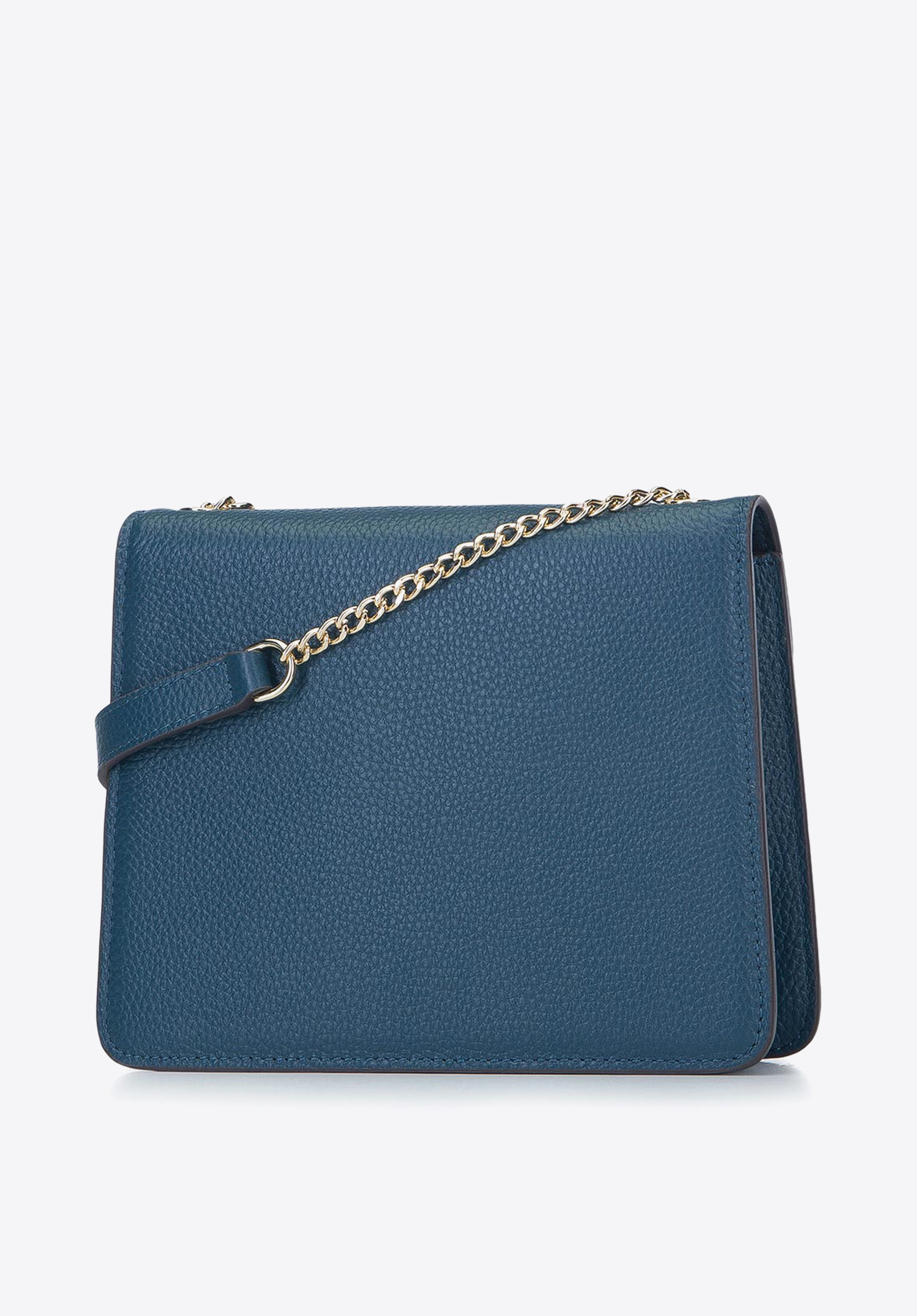 Podaruj sobie lub bliskiej Ci kobiecie wyjątkową listonoszkę, która będzie cieszyć oko podczas wizyt w operze, uroczystych rocznic czy wyjścia ze znajomymi. To dodatek, który odmieni zarówno zwykłą, jak i wizytową kreację. Prosty, smukły kształt nadaje akcesorium szyku, a uwagę zwracają naturalna skóra groszkowa oraz ozdobne zapięcie z efektem lustrzanym i łańcuszek, które dodają akcesorium blichtru. Wnętrze pomieści sporo drobiazgów: telefon, pomadkę, małą portmonetkę, bilety na spektakl. Torebka wieczorowa ze skóry groszkowej z klapą podszytą zamszem to projekt dopracowany w najmniejszym szczególe.
