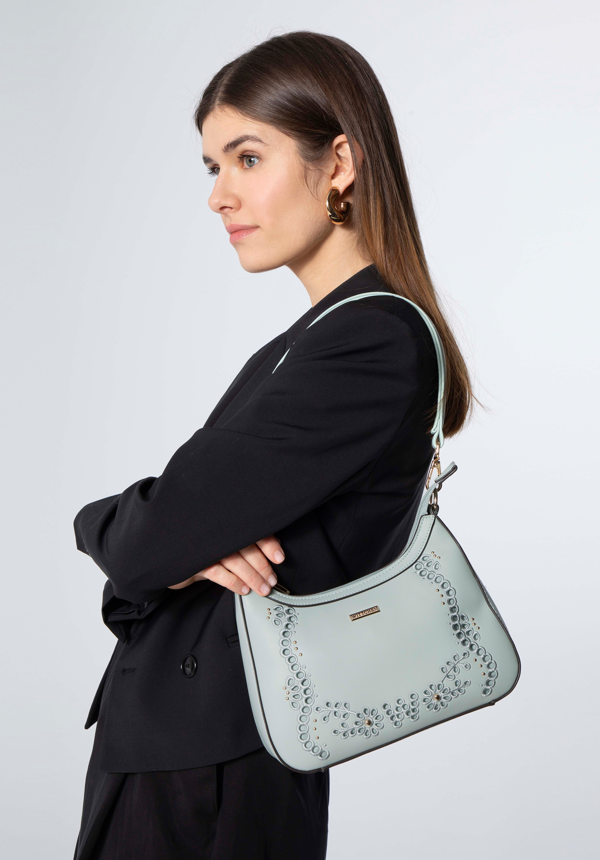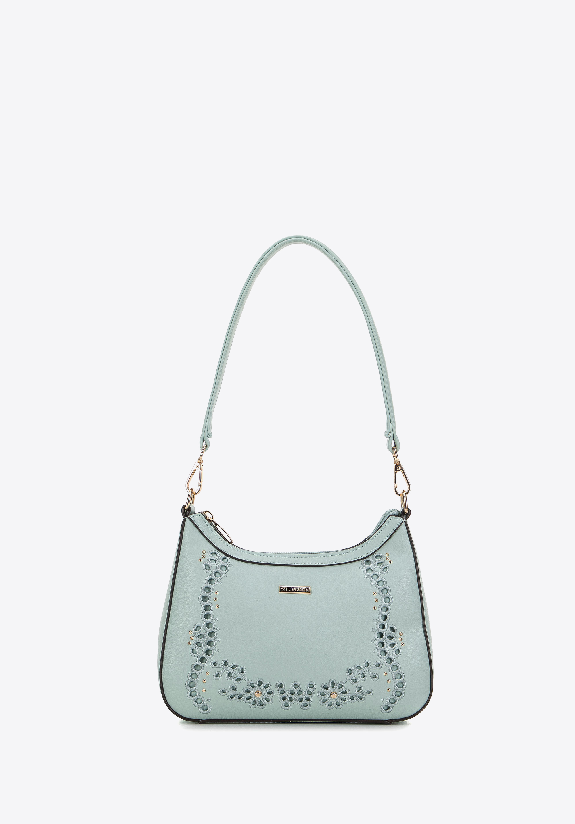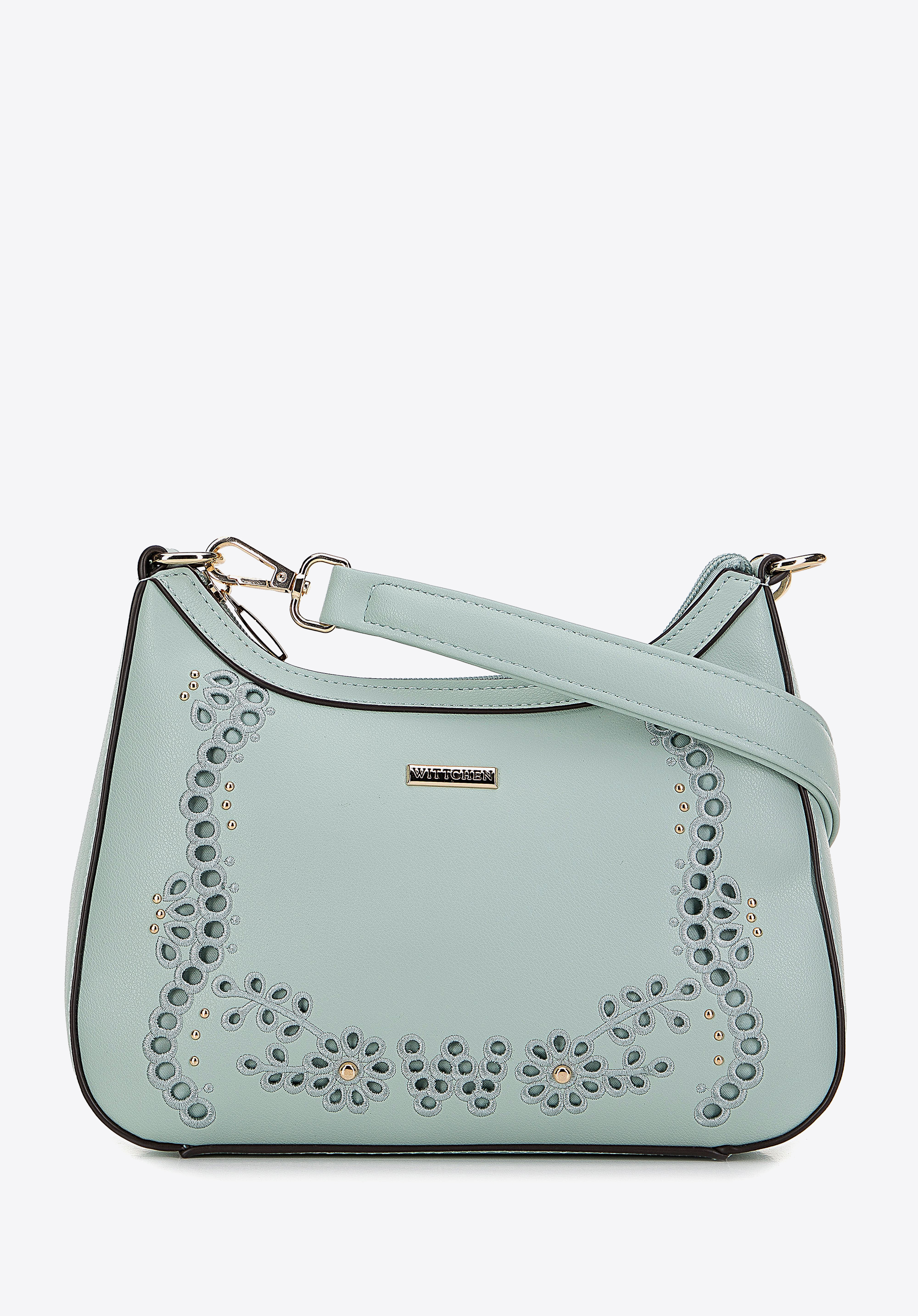 Ozdobne, wycinane wzory zdobiące przód torebki nadają jej wyjątkowego charakteru. W głównej komorze zmieścisz portfel, telefon, mały kalendarz, zapasowe rękawiczki i kilka drobiazgów. Noś ją do ulubionej sukienki i kowbojek lub połącz z dżinsami i skórzaną ramoneską i dodaj im kobiecości.