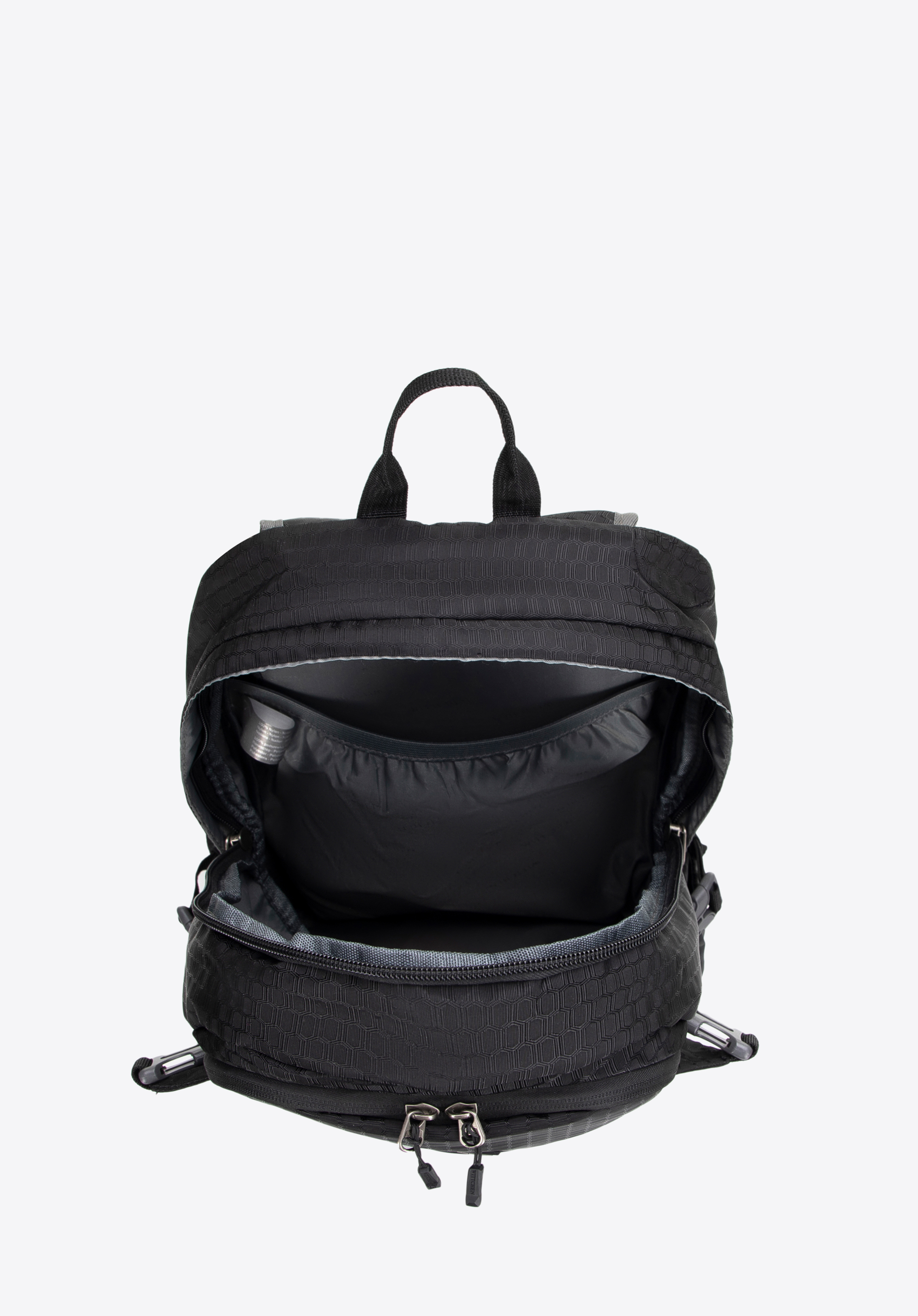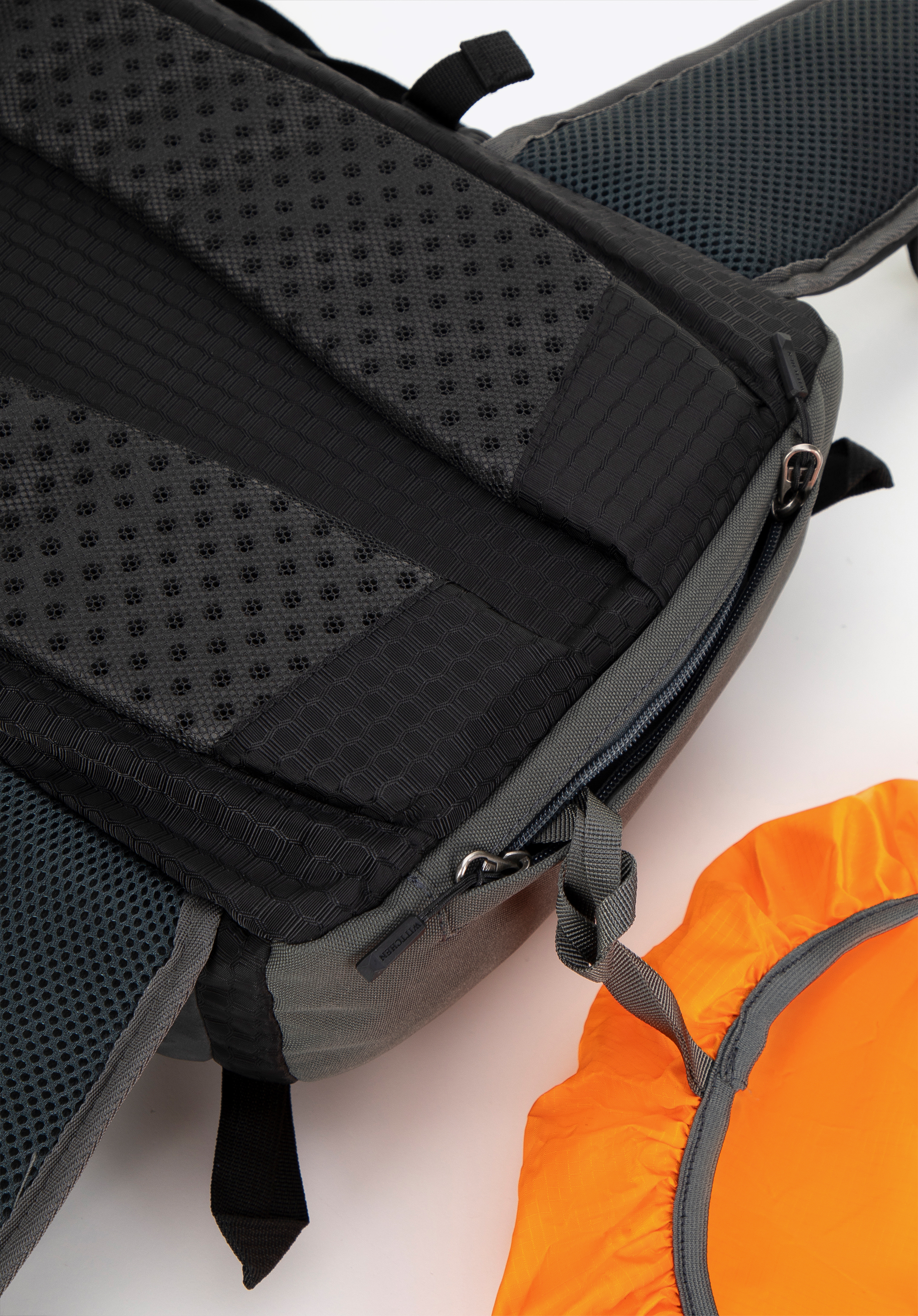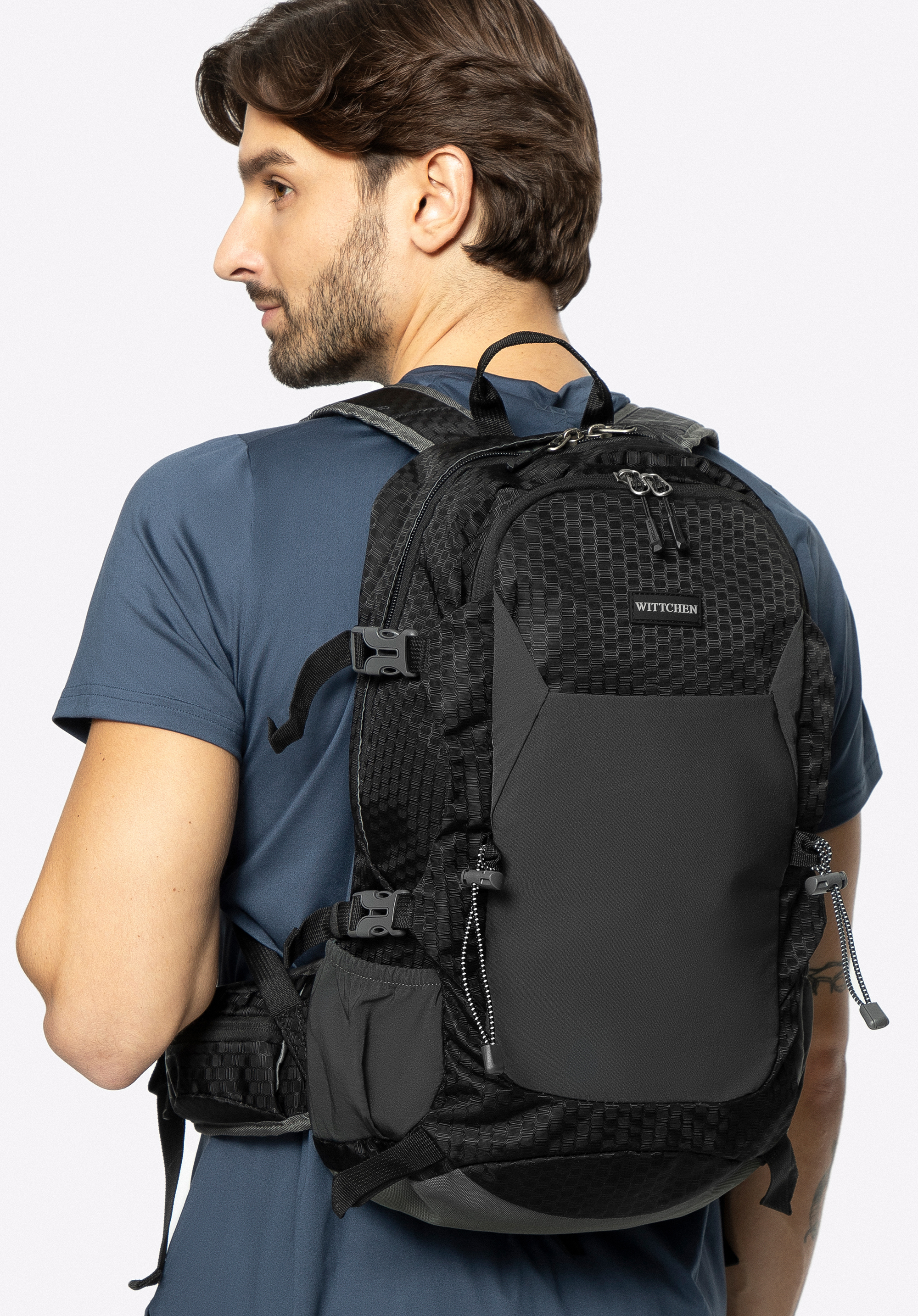 - Regulowane szelki: Wyściełane siatką strukturalną, dopasowują plecak do Twoich potrzeb, a siatka zapewnia wentylację, co zwiększa komfort noszenia, nawet podczas długich wędrówek.