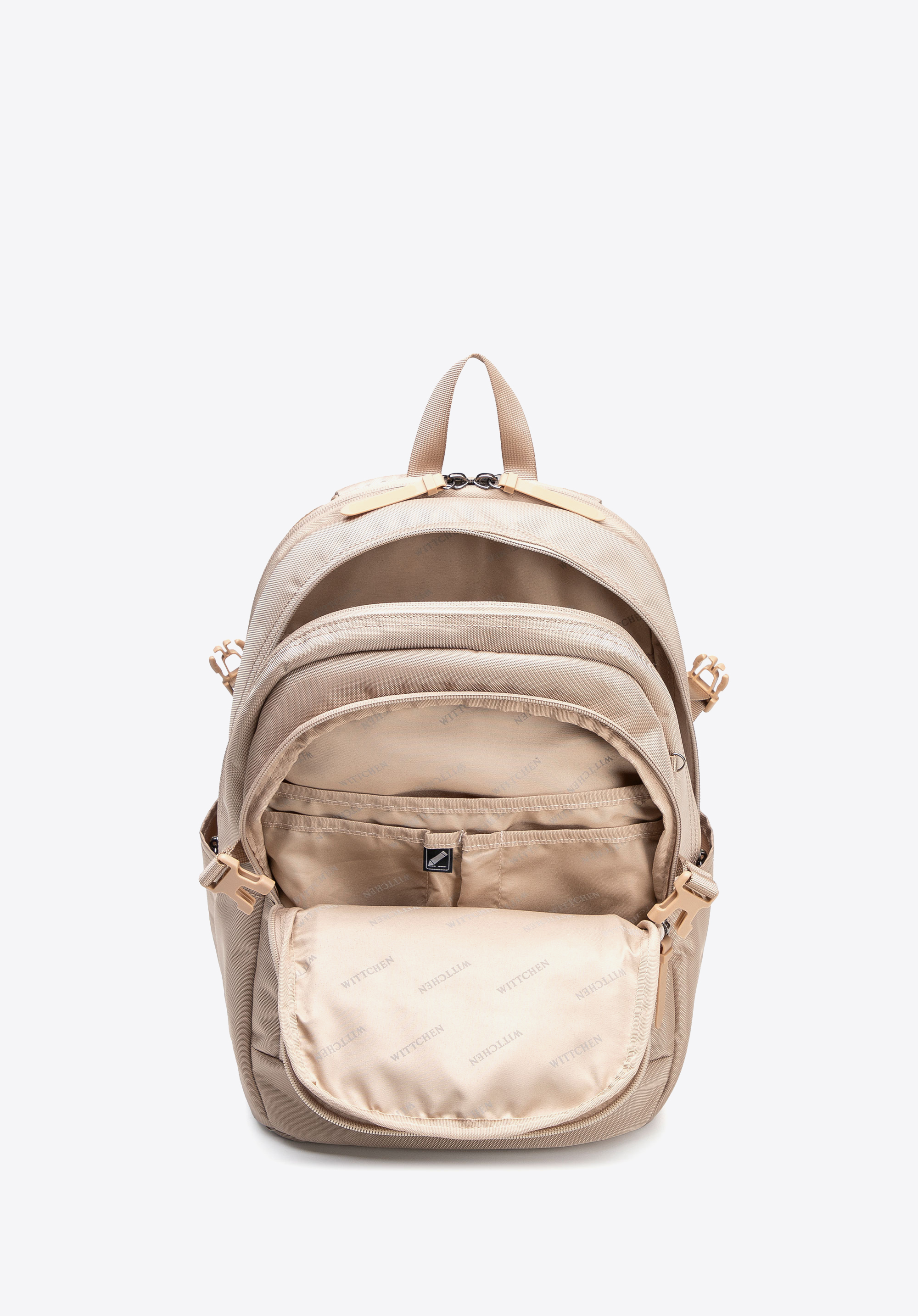 - Przednie kieszenie: Dwie zamykane kieszenie na drobne akcesoria oraz kieszeń z trzema przegrodami i dwiema kieszonkami na długopis, które pomagają utrzymać porządek i mieć wszystko pod ręką.