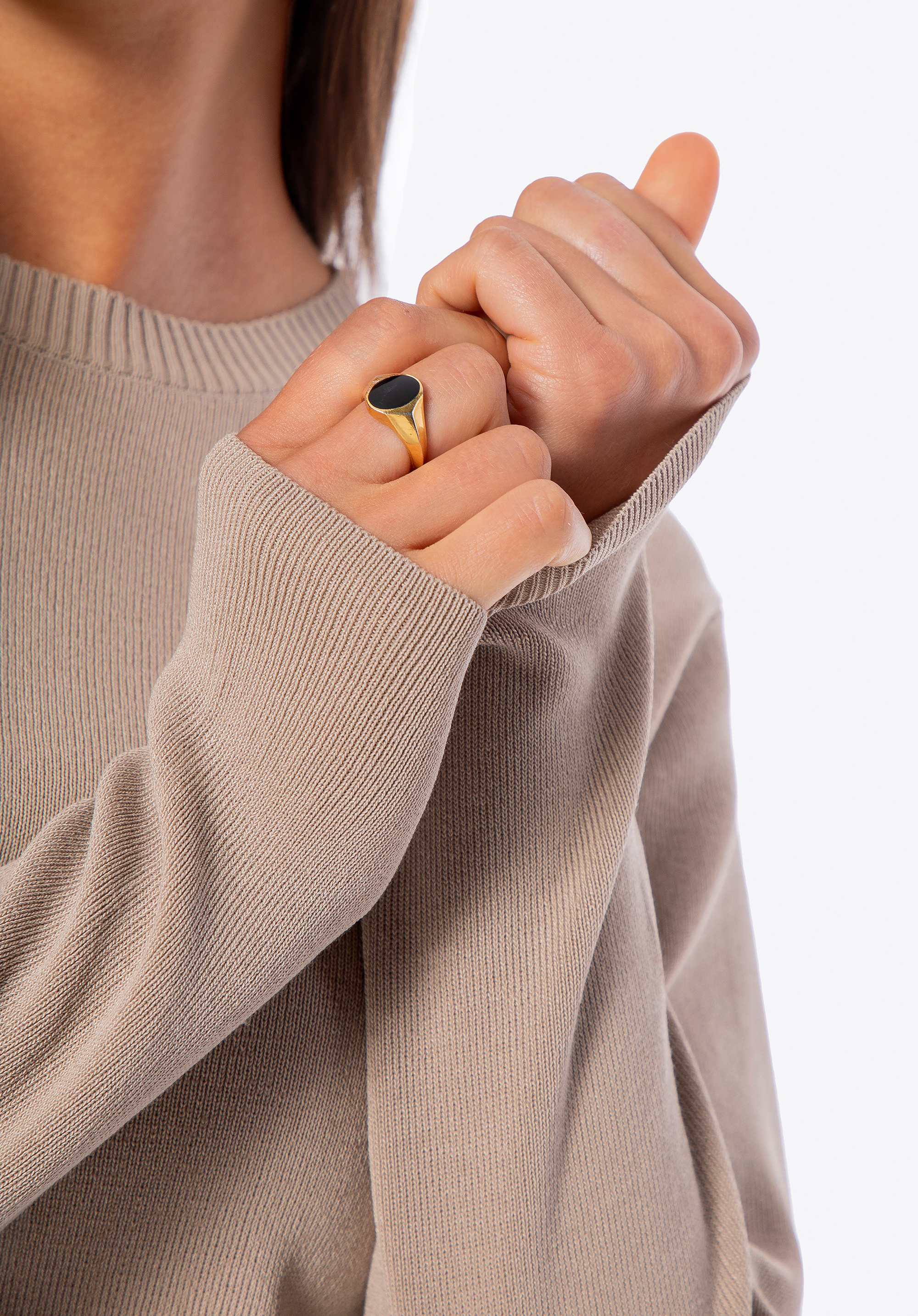 - Metalowy detal: Nowoczesny, subtelny akcent umieszczony u dołu swetra, który wyróżnia produkt.