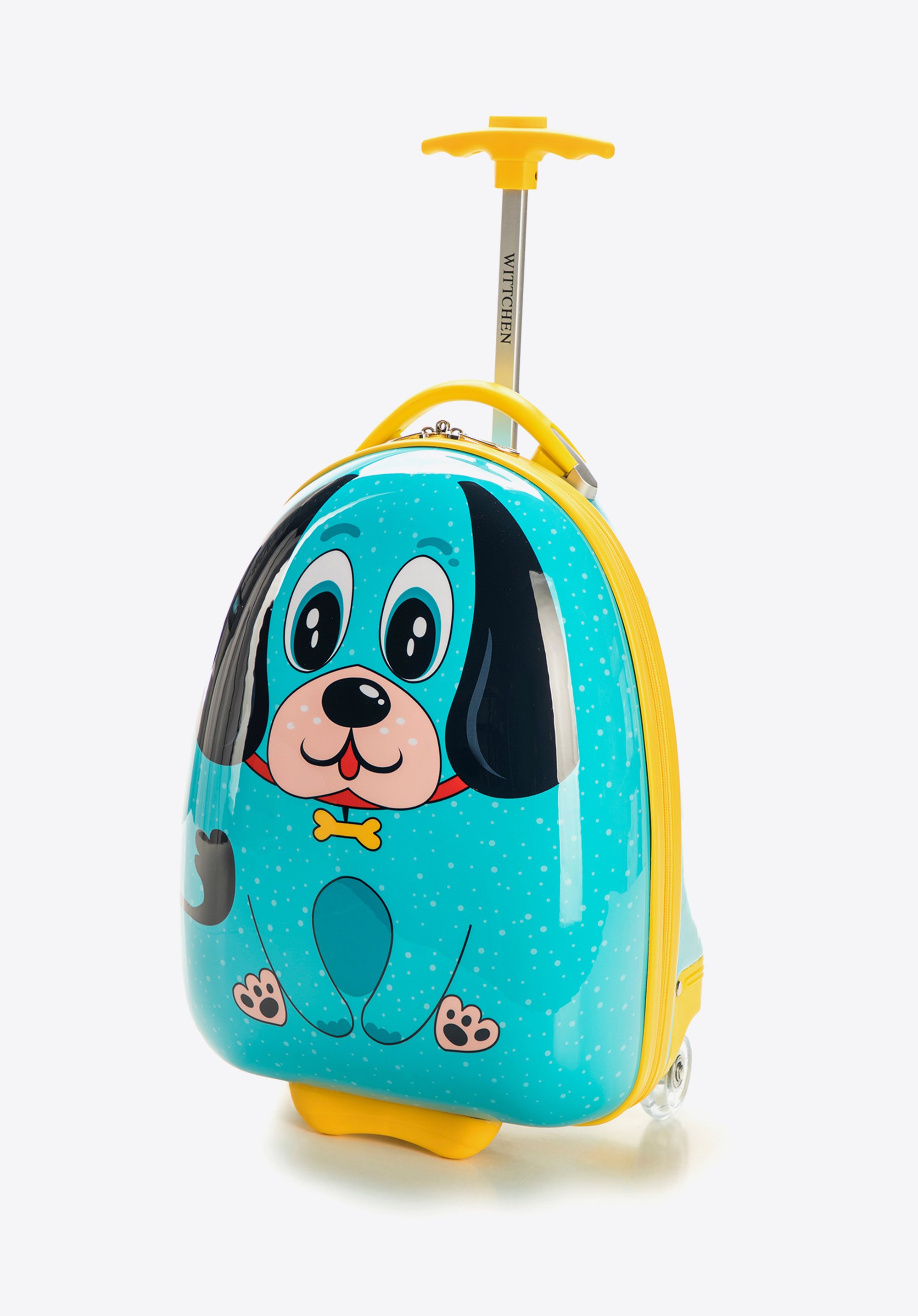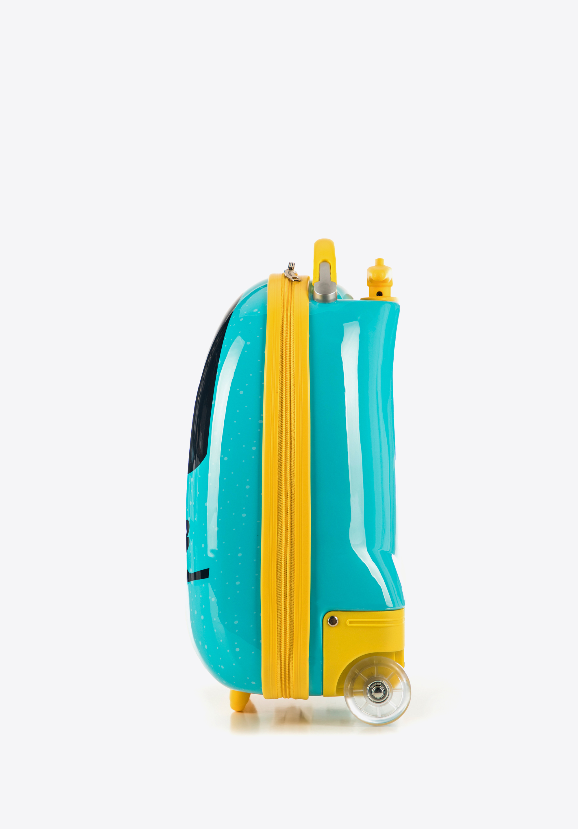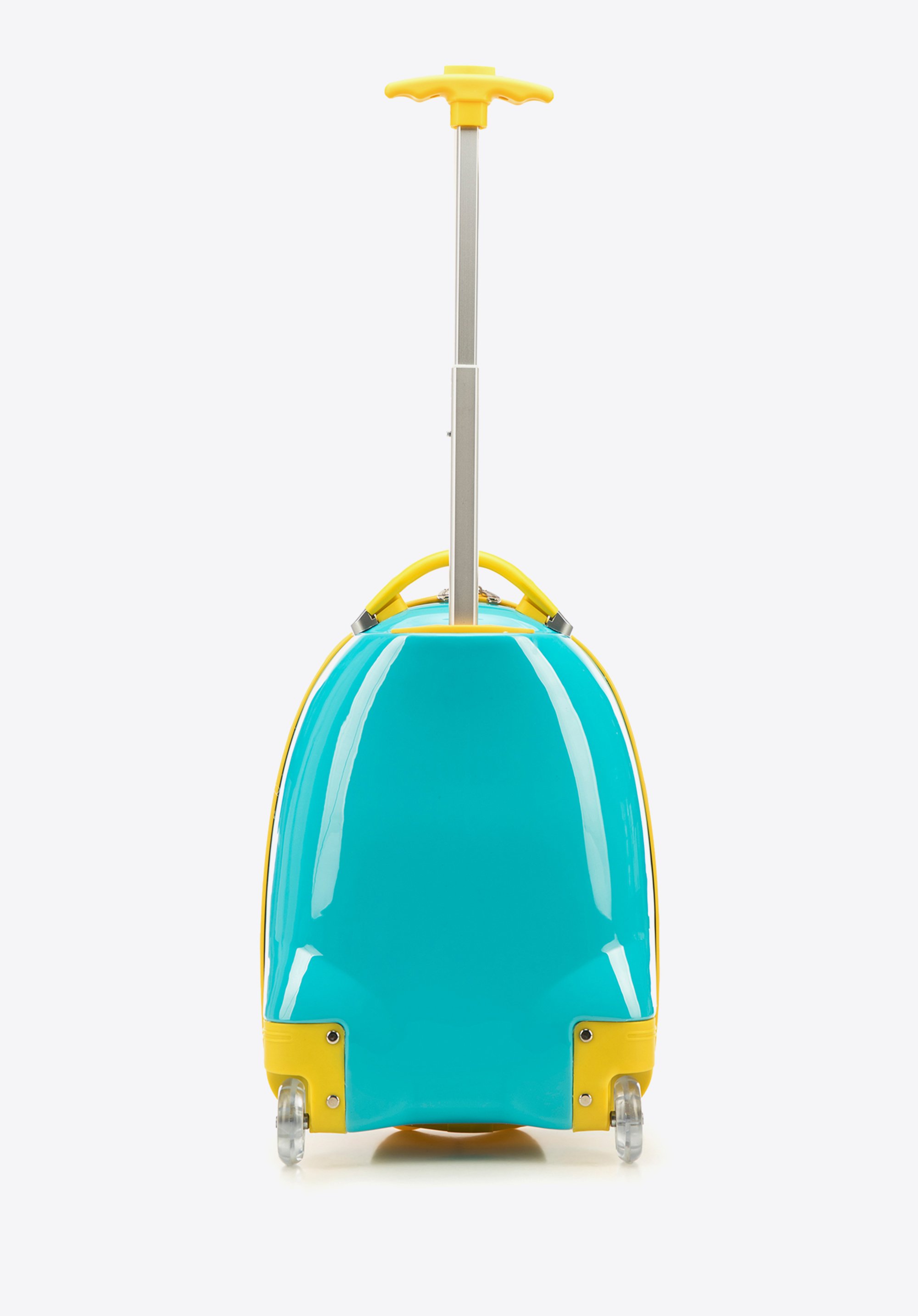 ABS-u. Model wyposażony w dwa, bardzo trwałe kółka, które umożliwiają swobodne prowadzenie bagażu. Walizka posiada wysuwany uchwyt oraz rączkę ułatwiającą przenoszenie bagażu. Dziecięce motywy na froncie sprawią, że każda podróż będzie dla najmłodszych jeszcze bardziej atrakcyjna.