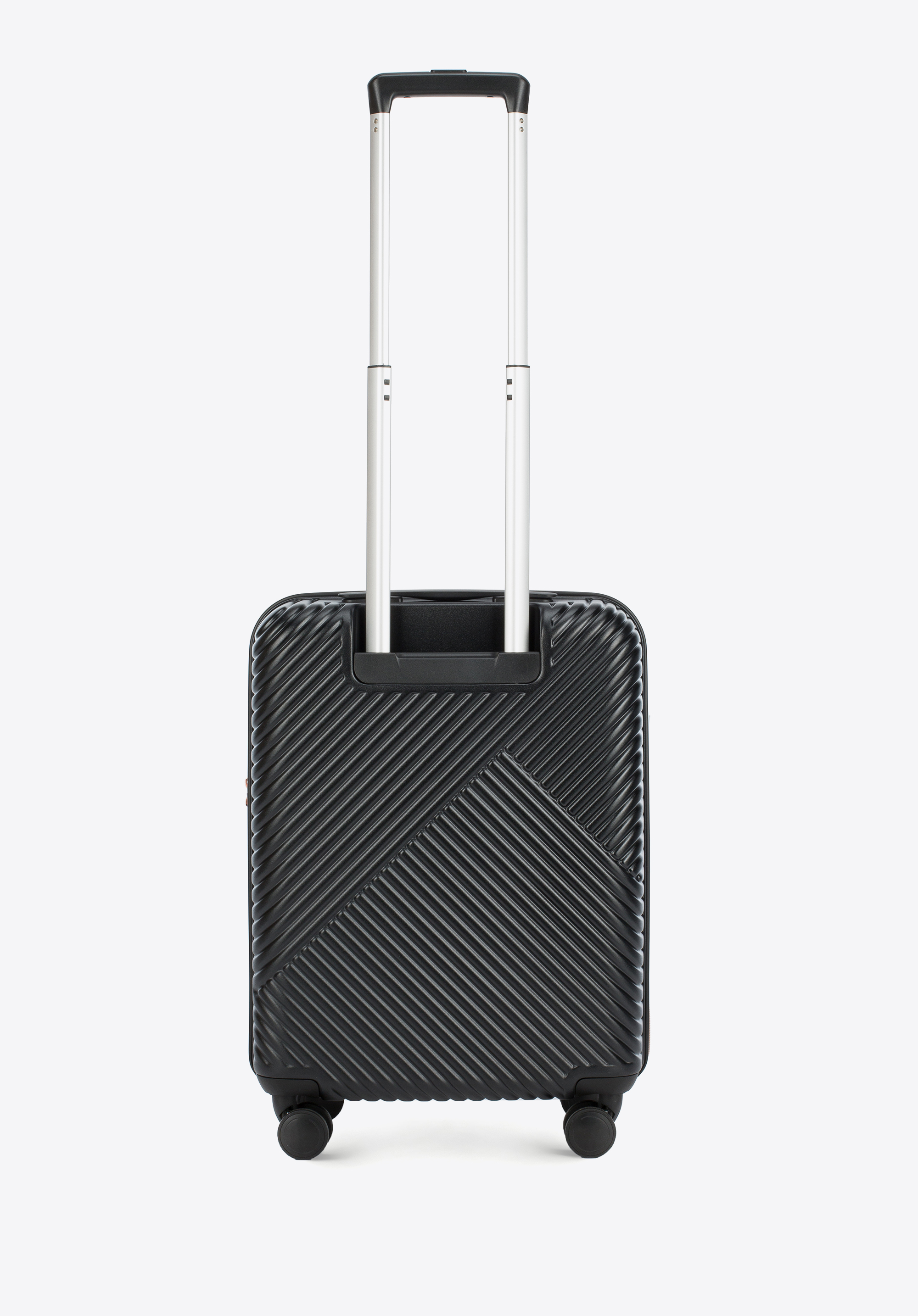 - Komfort prowadzenia: Wysuwany uchwyt oraz gumowa rączka umożliwiają wygodne prowadzenie i przenoszenie bagażu.