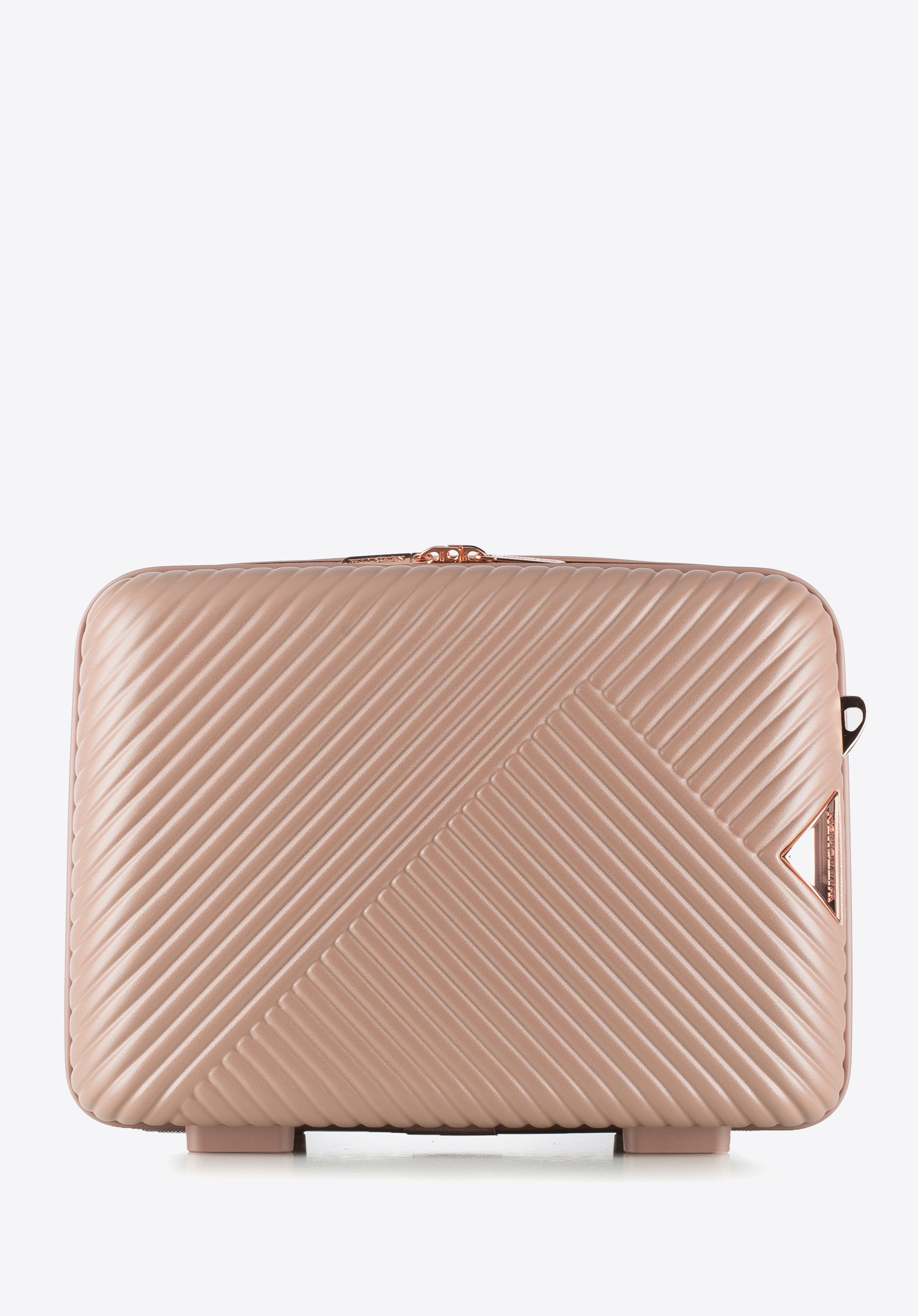 Stylowy duet, który wniesie elegancję do każdej podróży! Walizka kabinowa i dopasowana kosmetyczka z kolekcji GL Style wykonane są z wytrzymałego polikarbonu o matowym wykończeniu, łączącego lekkość z odpornością na uszkodzenia. Lśniące okucia w kolorze różowego złota i geometryczne tłoczenia nadają im nowoczesny charakter. Z tym zestawem każda podróż – od służbowego wyjazdu po weekendowy city break – będzie stylowa i doskonale zorganizowana.