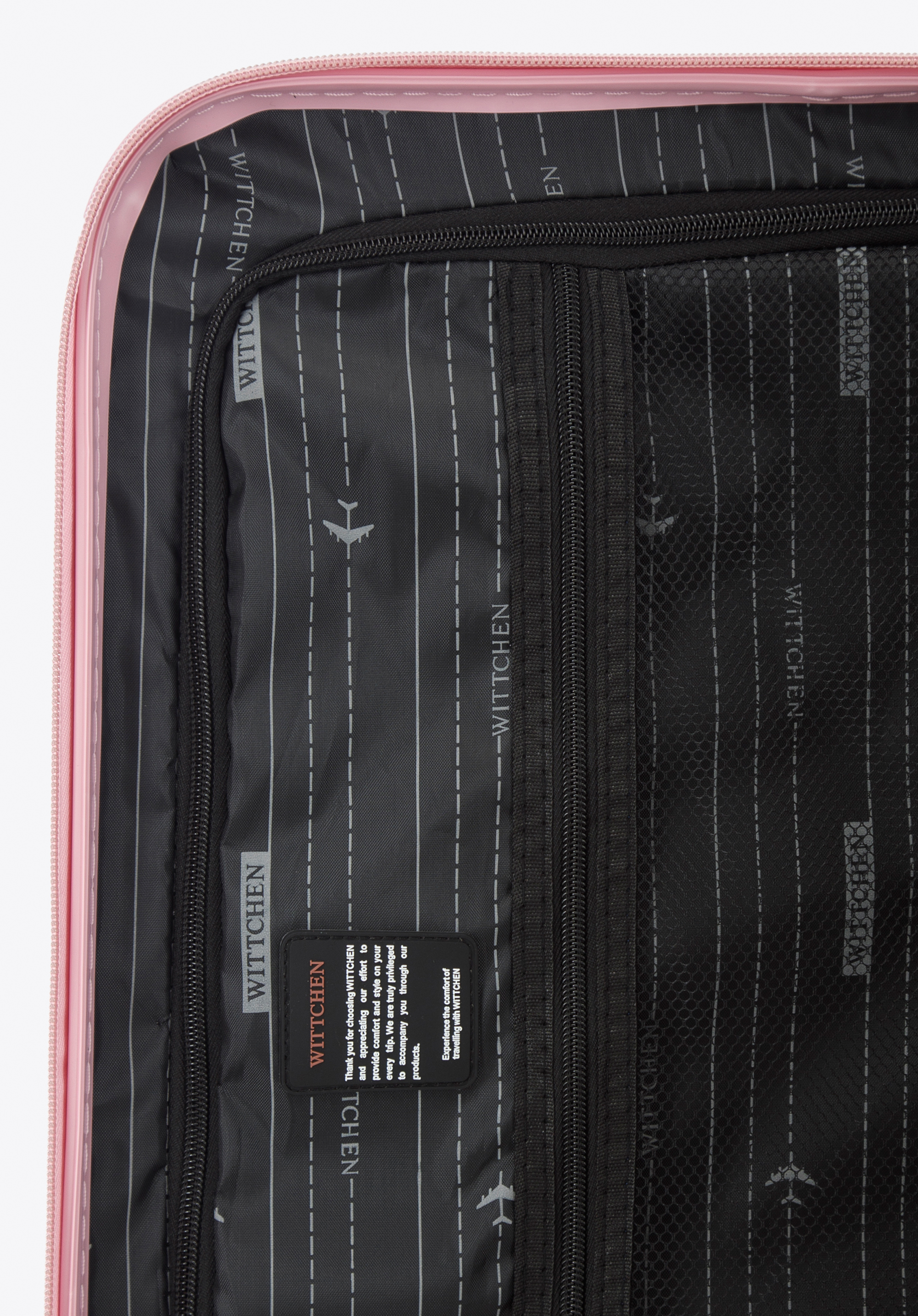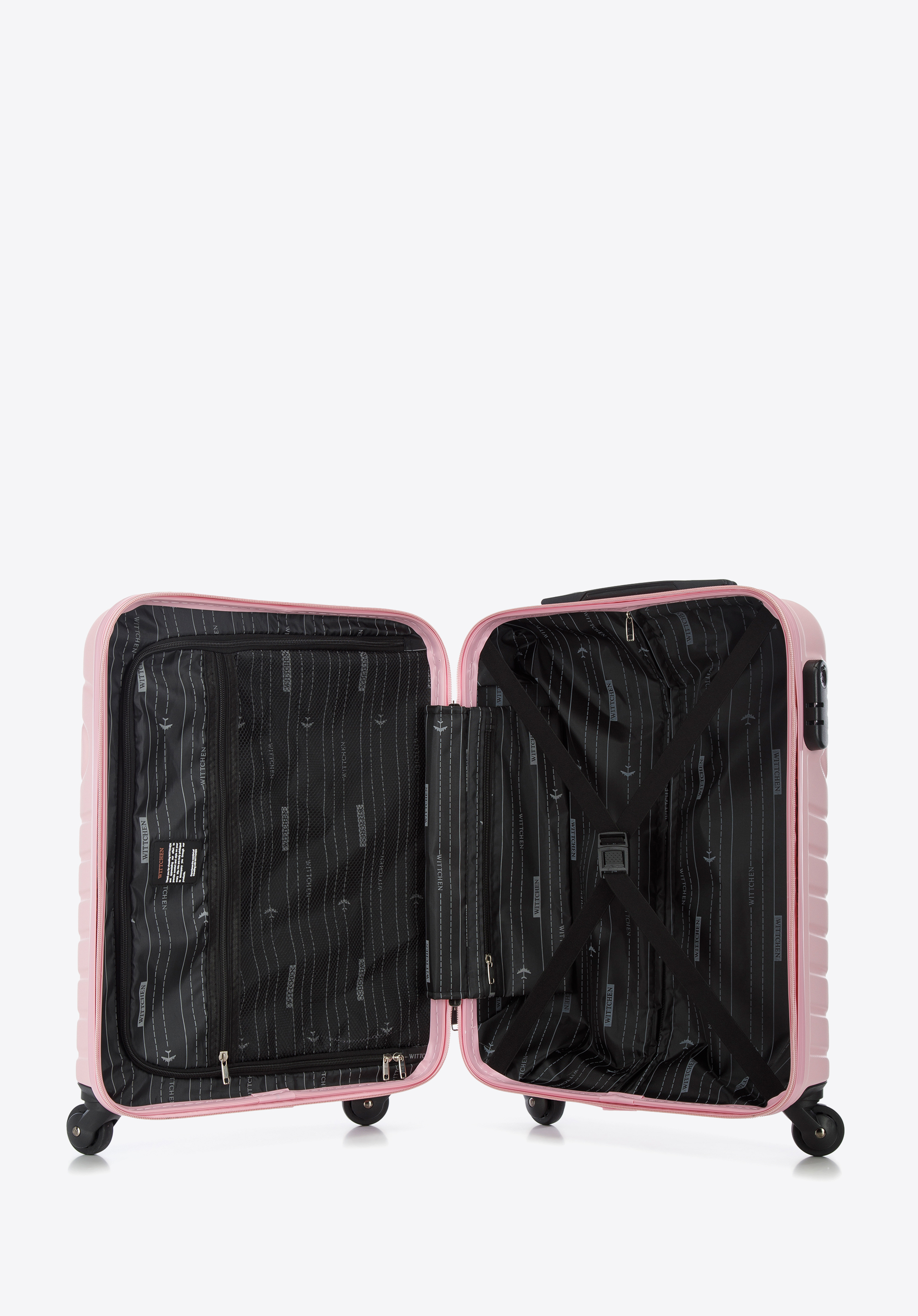 - walizka wyposażona w cztery pojedyncze obrotowe kółka ułatwiające prowadzenie;