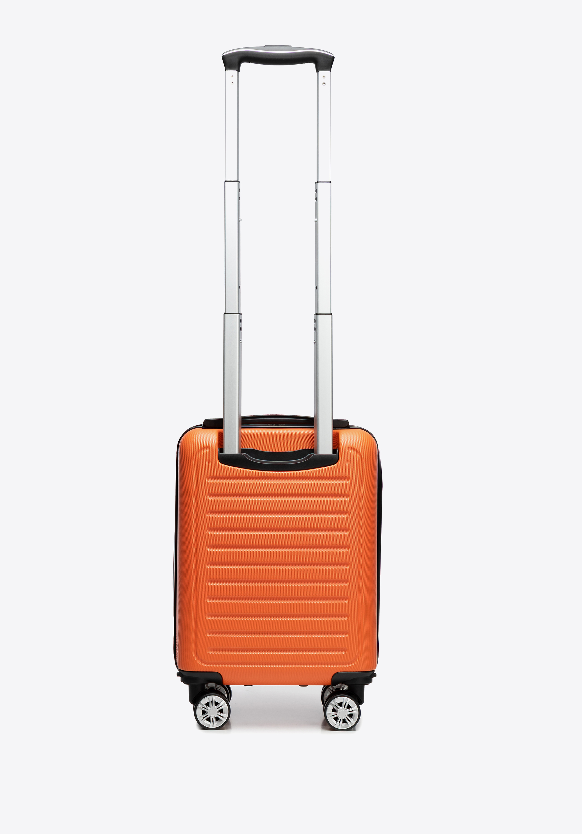 - Teleskopowy stelaż: 4-stopniowy, aluminiowy stelaż z gumowym uchwytem ułatwia podnoszenie i prowadzenie walizki, zapewniając wygodę w podróży. Branding na uchwycie dodaje eleganckiego akcentu.