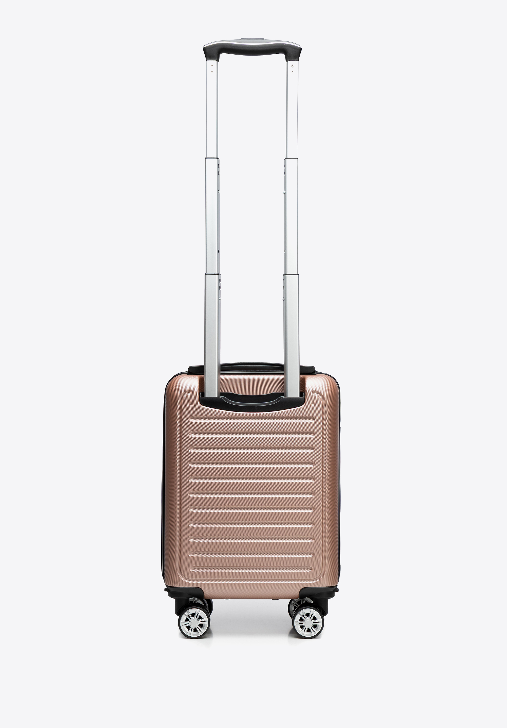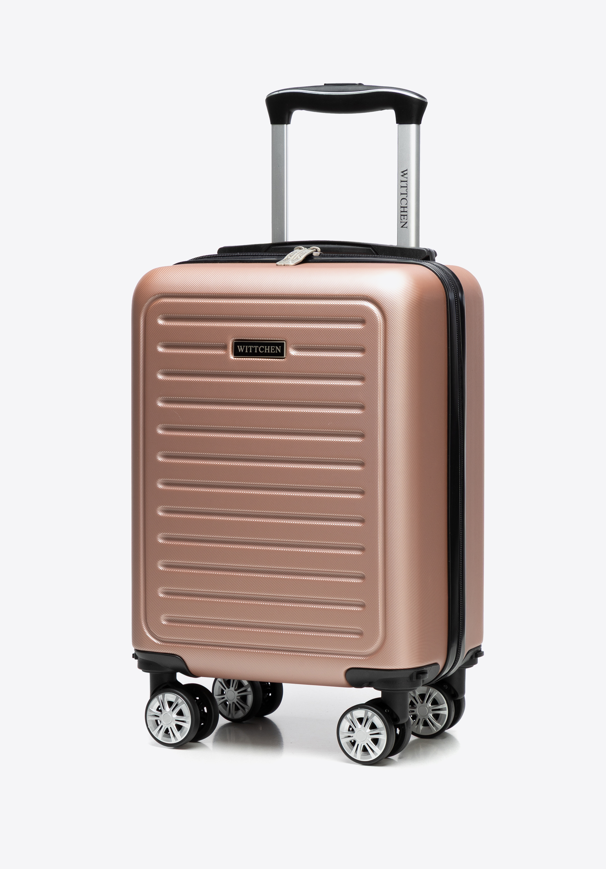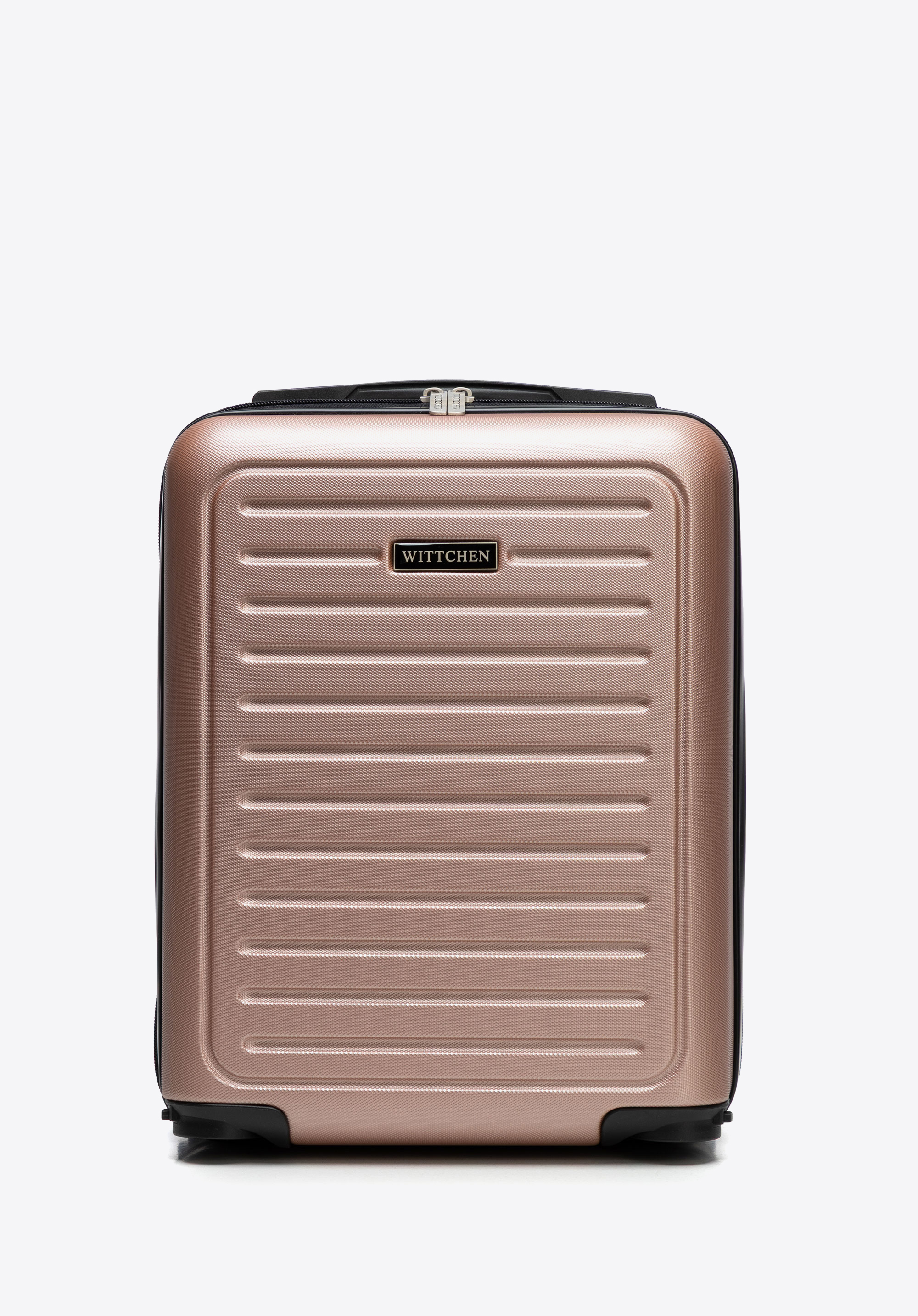 - Design: Czarne kółka i rączki w połączeniu ze wzorem w paski nadają walizce nowoczesny, elegancki wygląd, podkreślając stylowy charakter i funkcjonalność.
