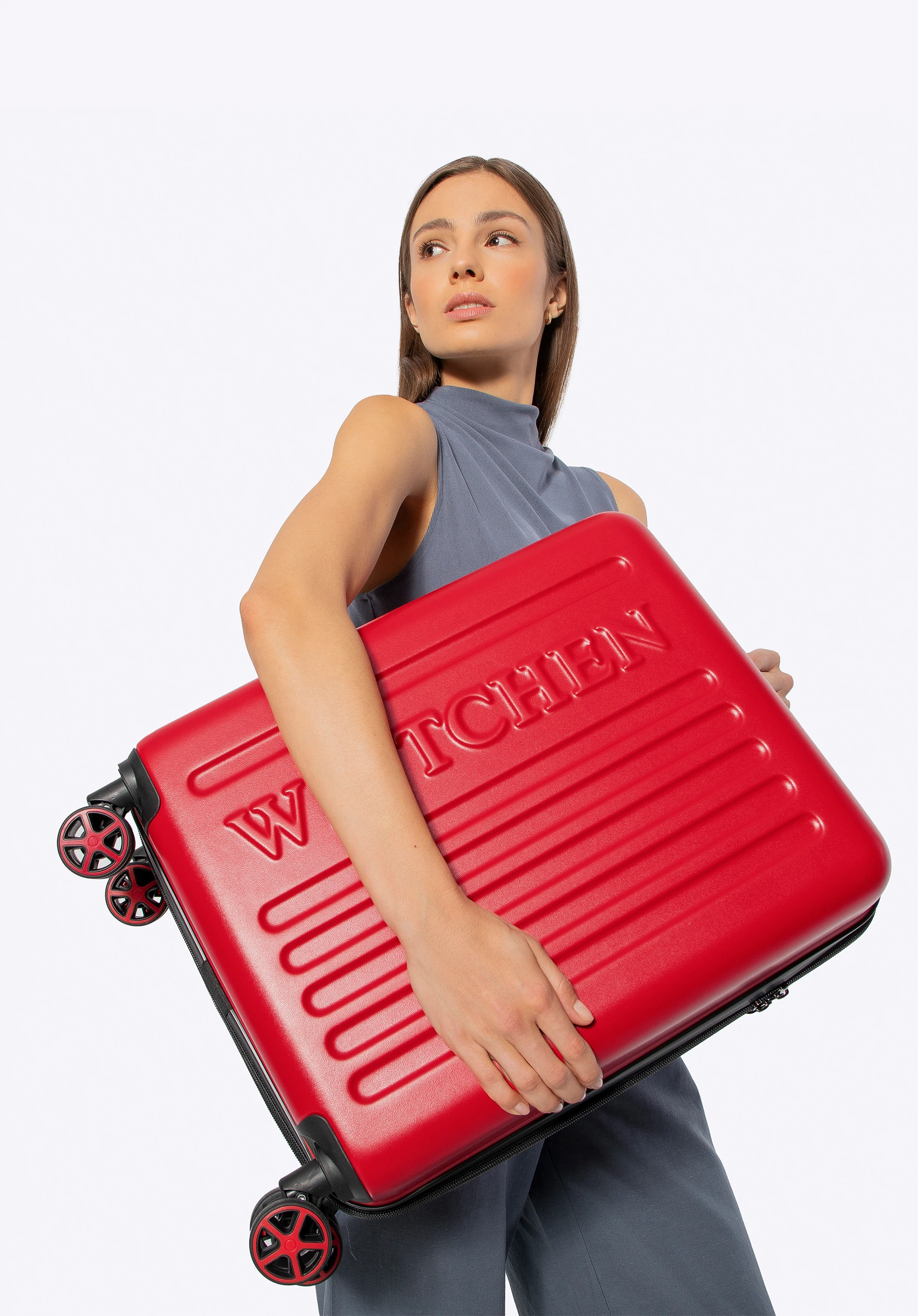 Walizka kabinowa z ABS-u z tłoczonym logo czerwona