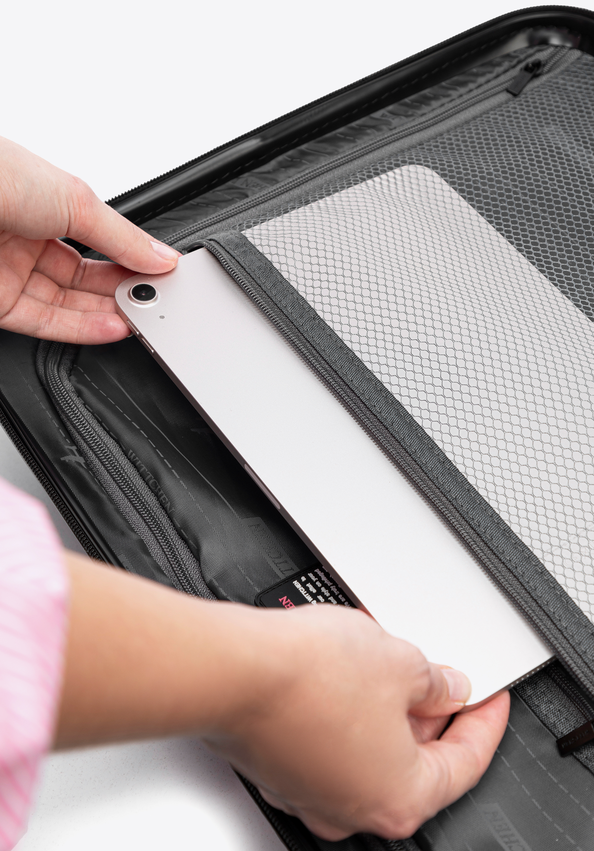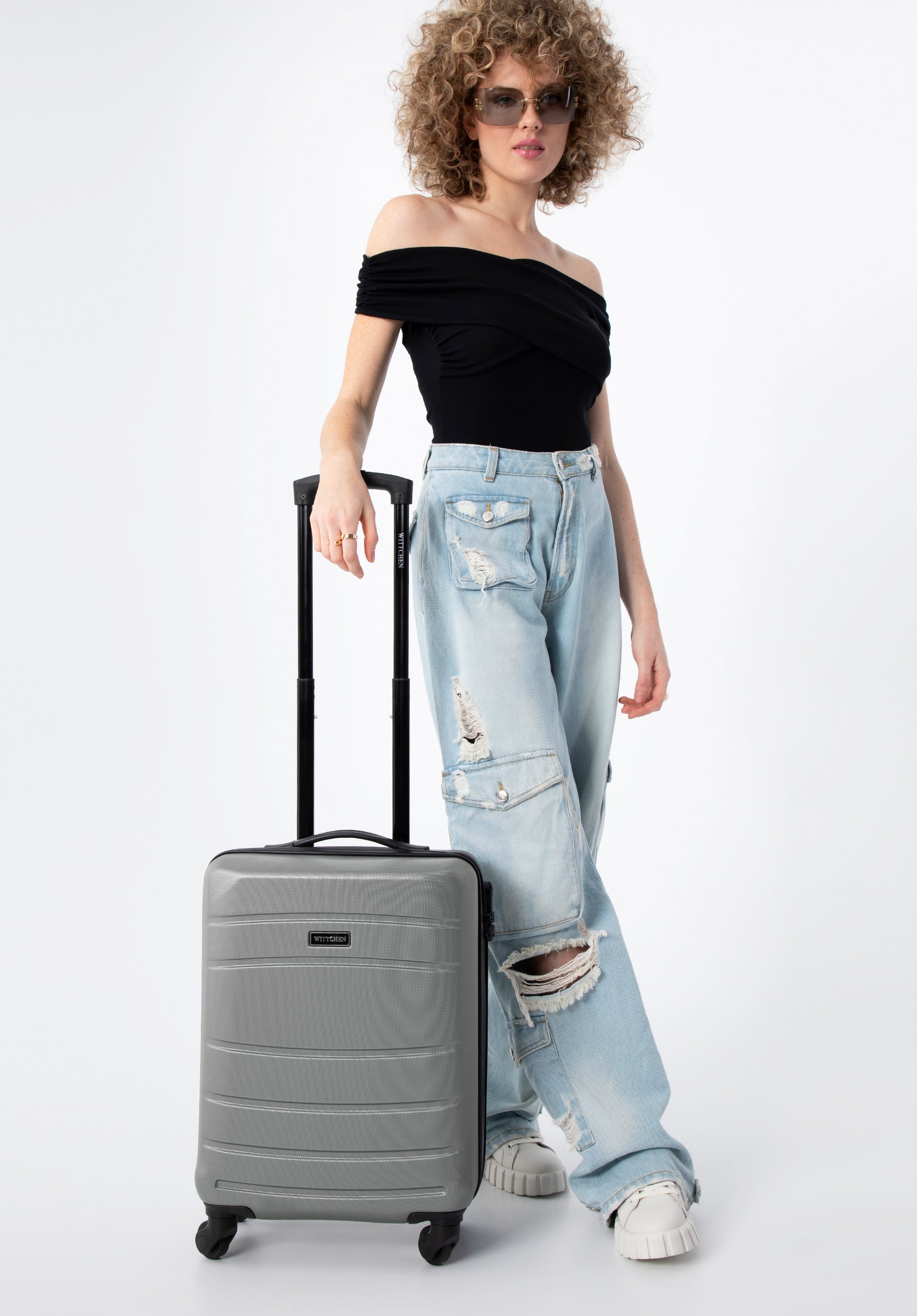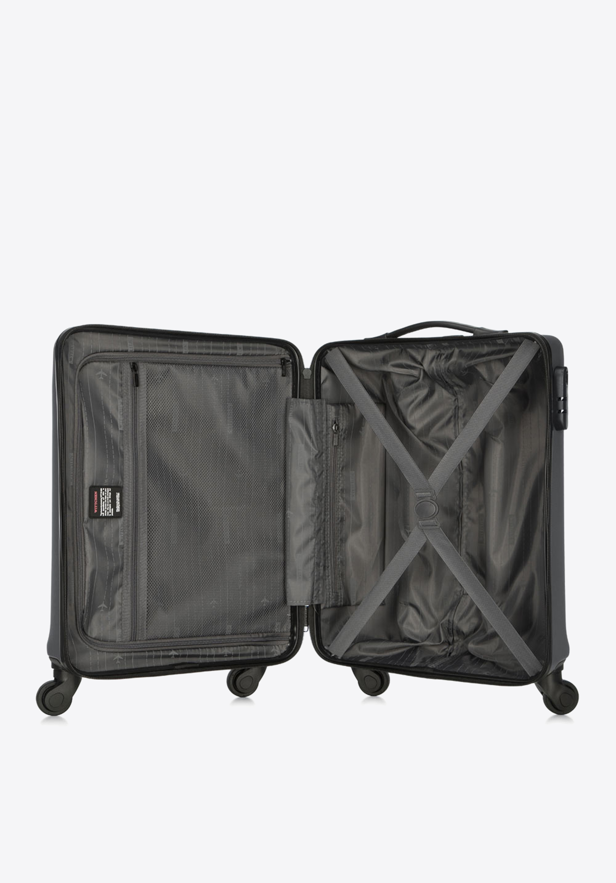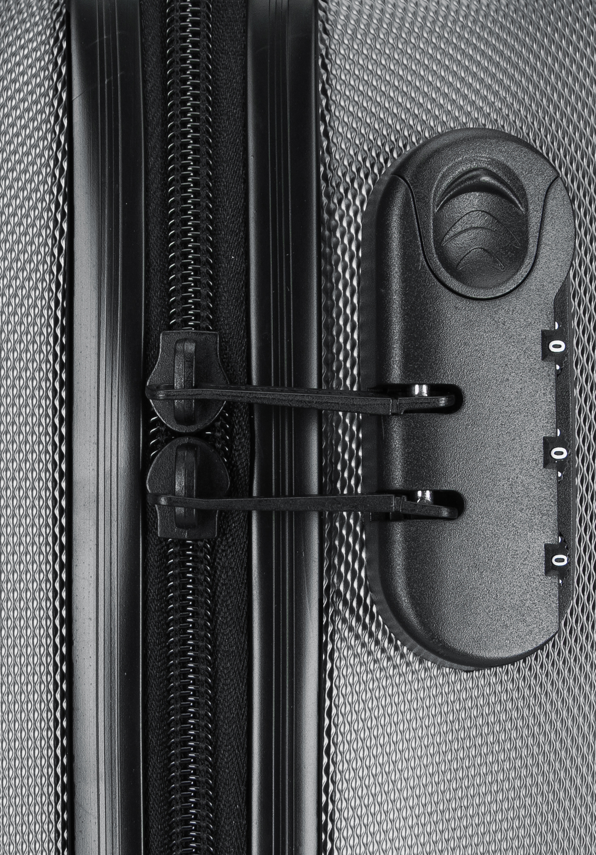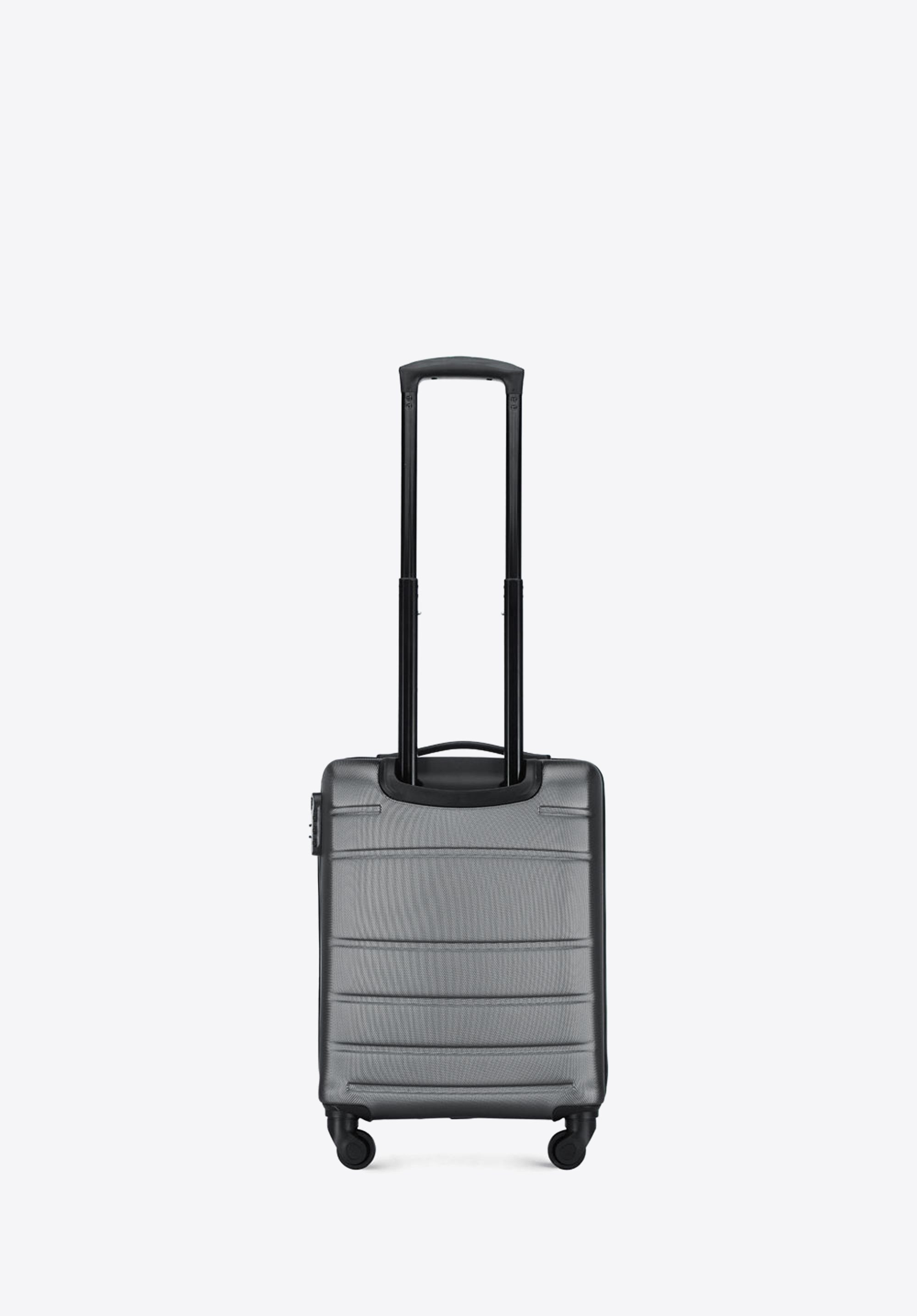 Ta niewielka walizka została wykonana z ABS-u o porowatej powierzchni. Model wyposażony jest w zamek szyfrowany, aluminiowy, wysuwany teleskopowy uchwyt i gumową rączkę, ułatwiającą przenoszenie walizki. Posiada pionowe tłoczenia dodające walizce ciekawego charakteru.