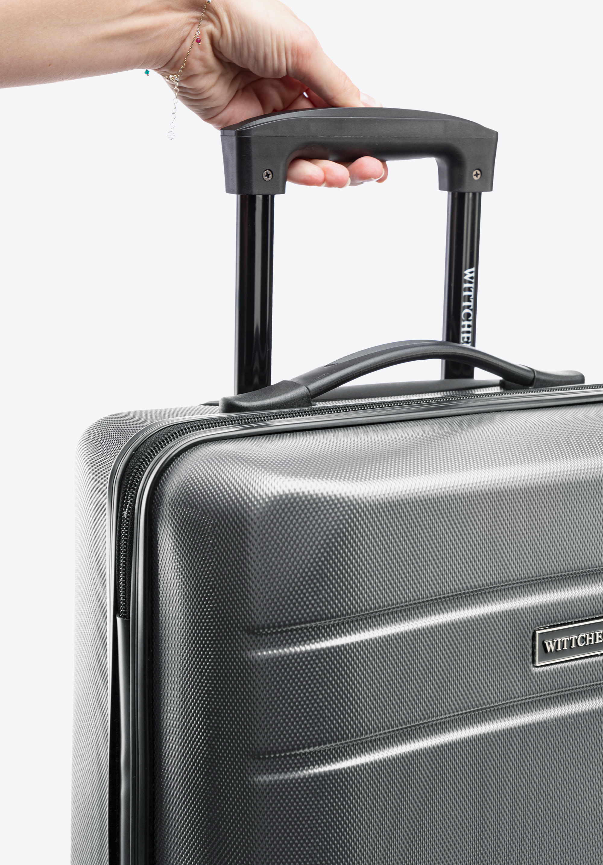 wysuwany uchwyt oraz gumową rączkę ułatwiającą przenoszenie bagażu;