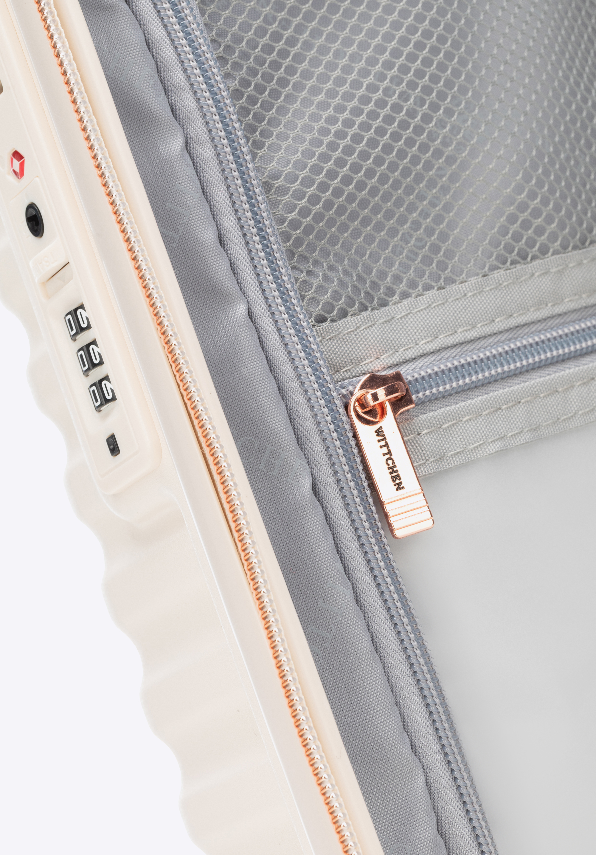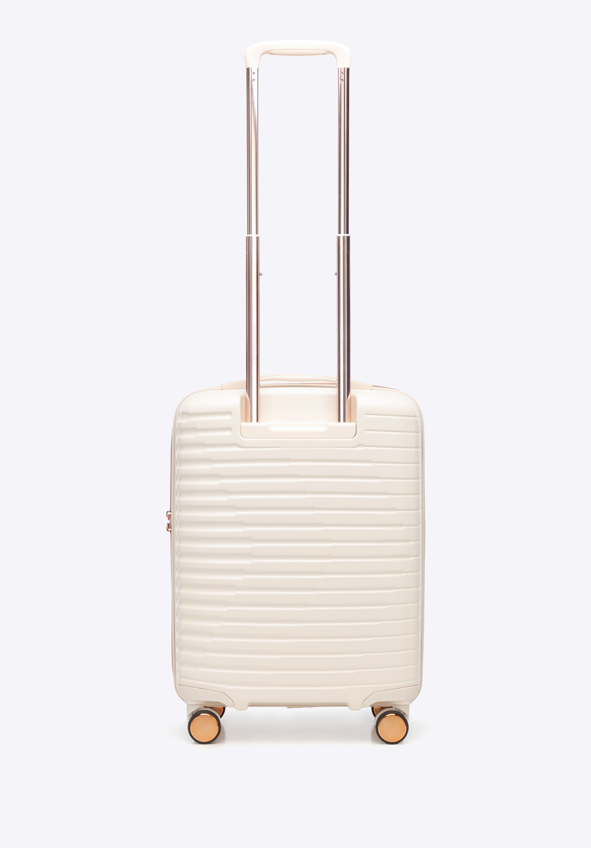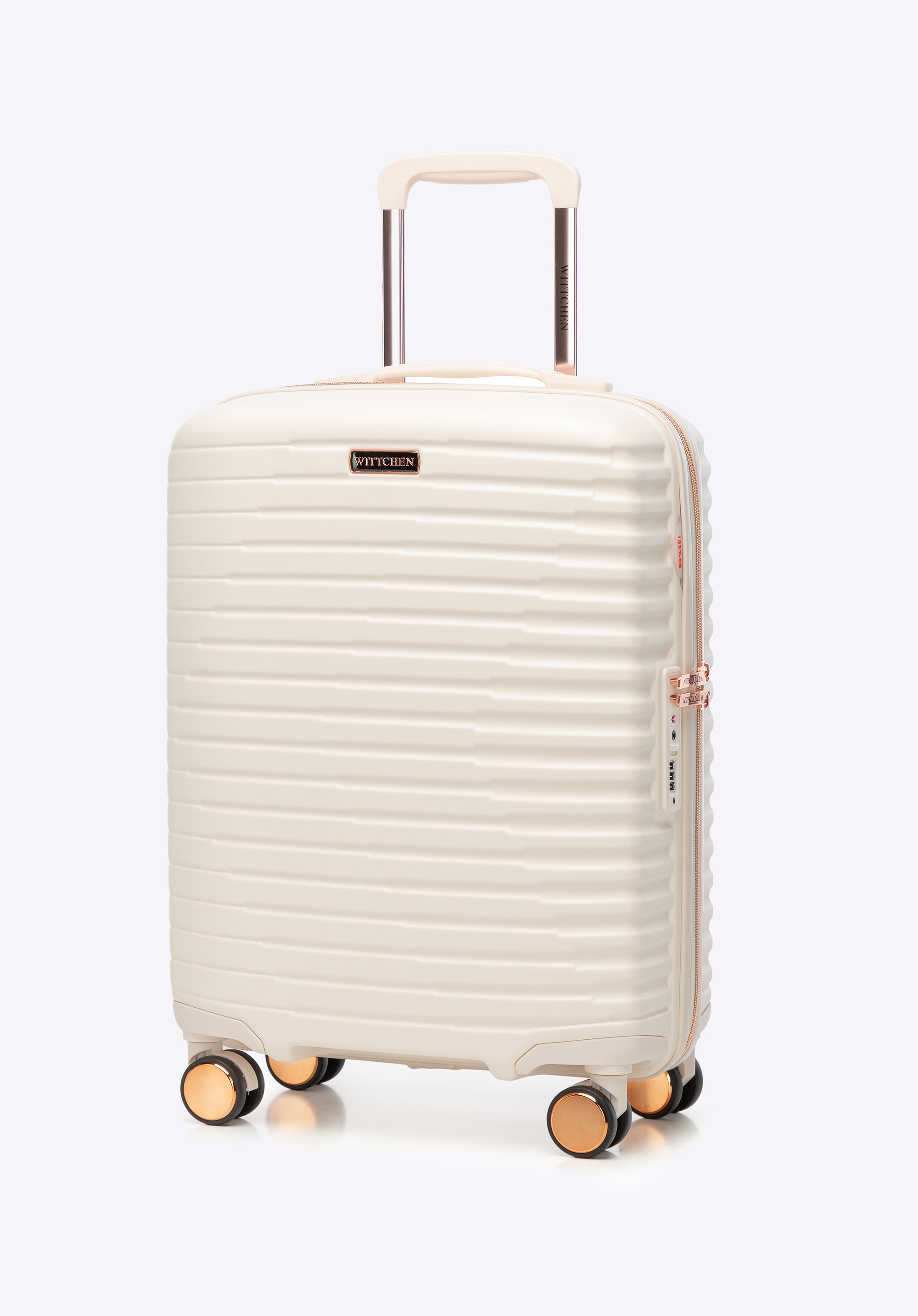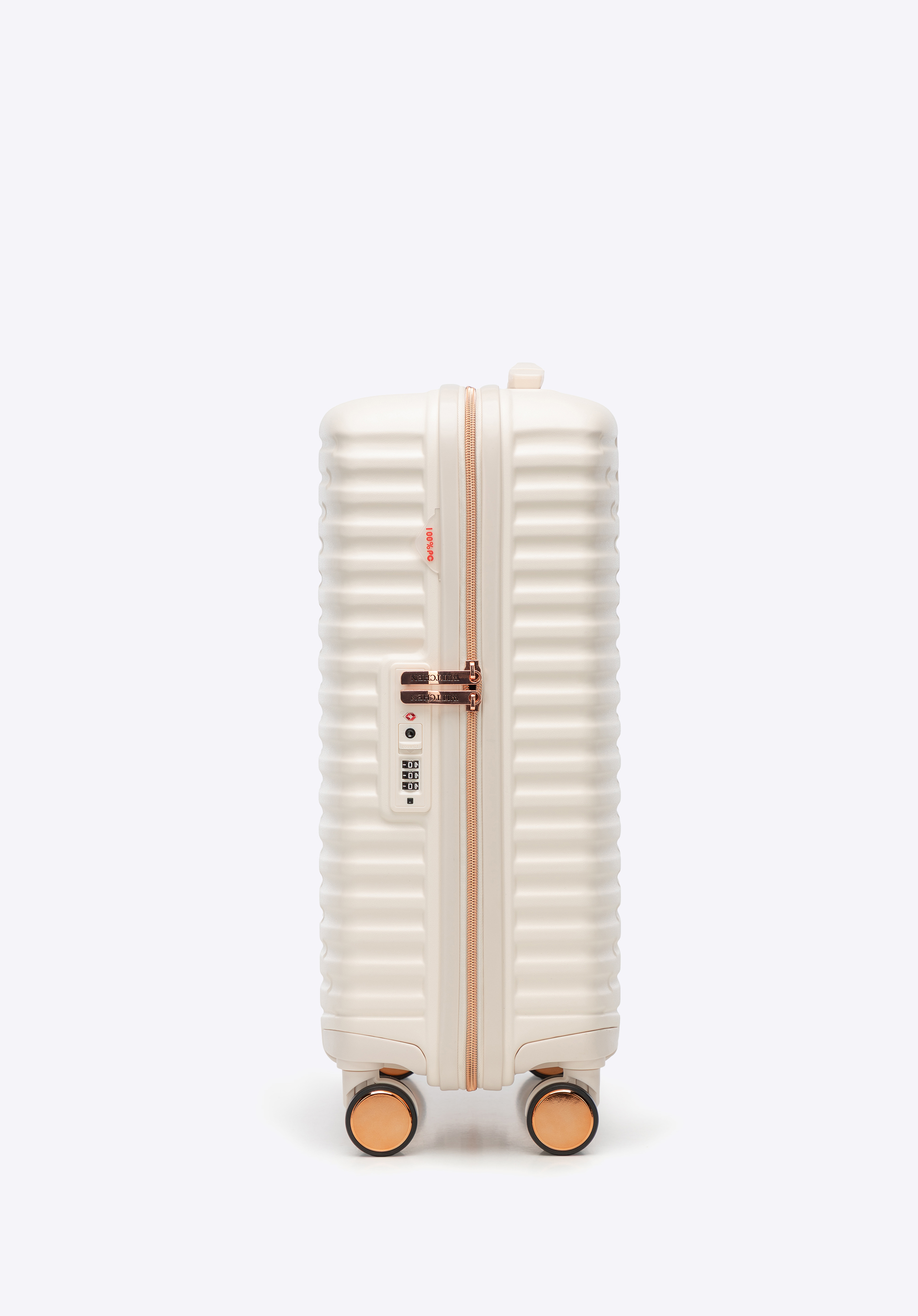 Walizka kabinowa z polikarbonu w poziome żebrowanie kremowo - złota