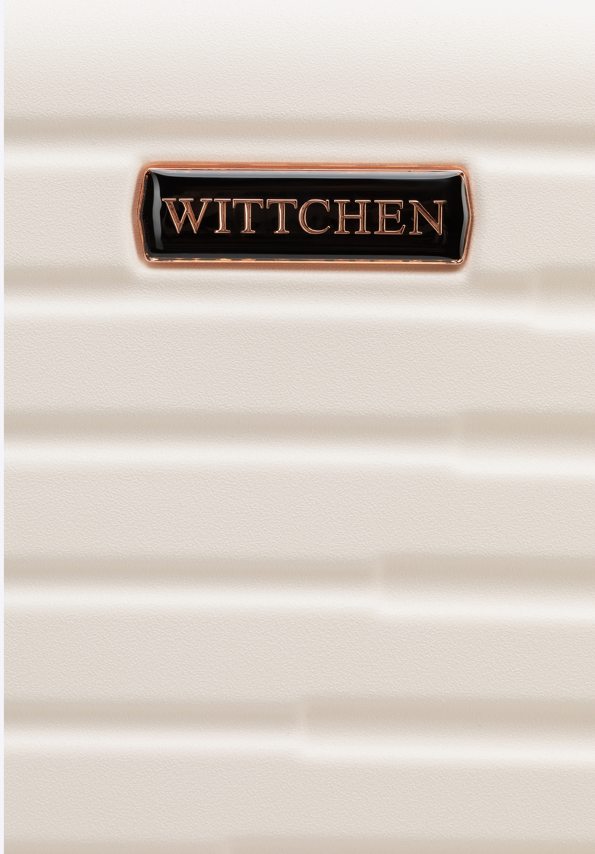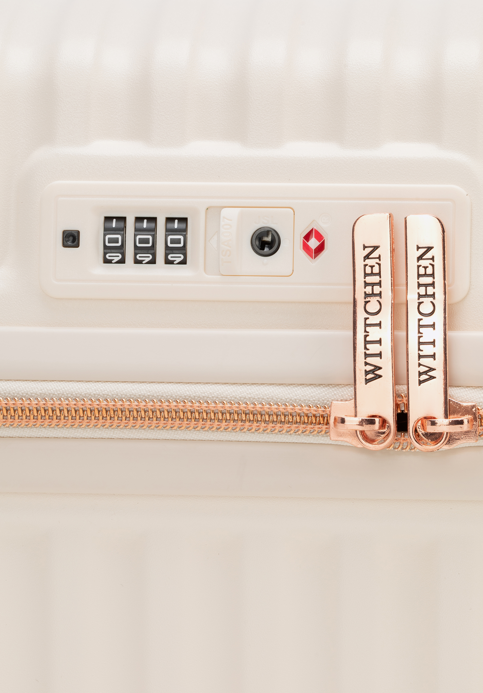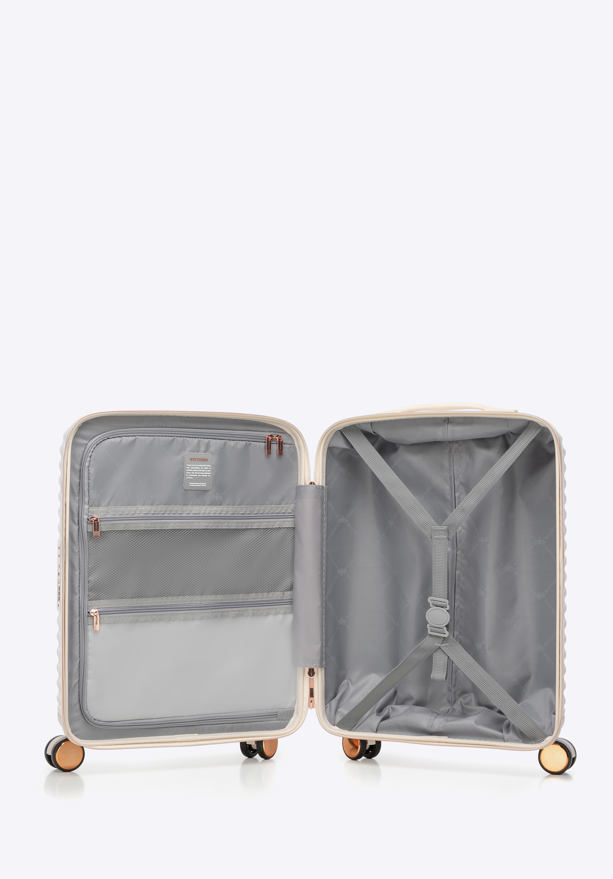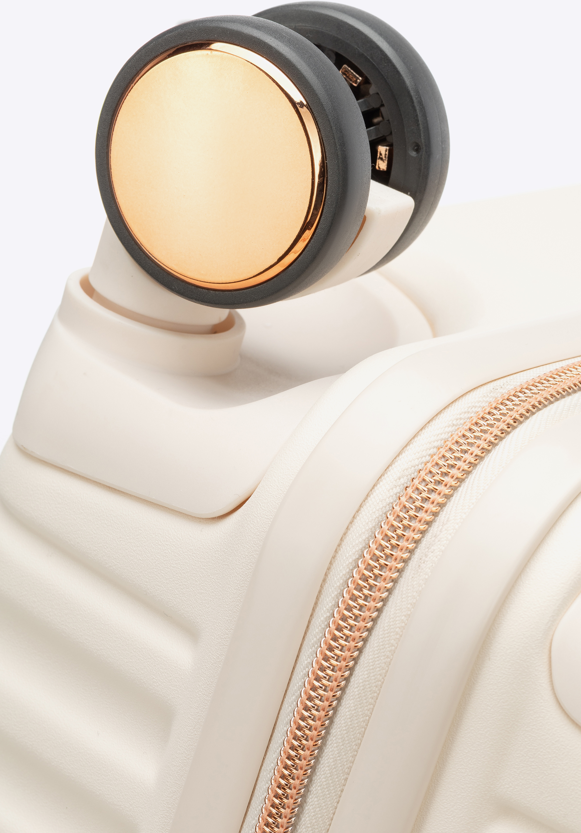 Walizka kabinowa z polikarbonu w poziome żebrowanie kremowo - złota