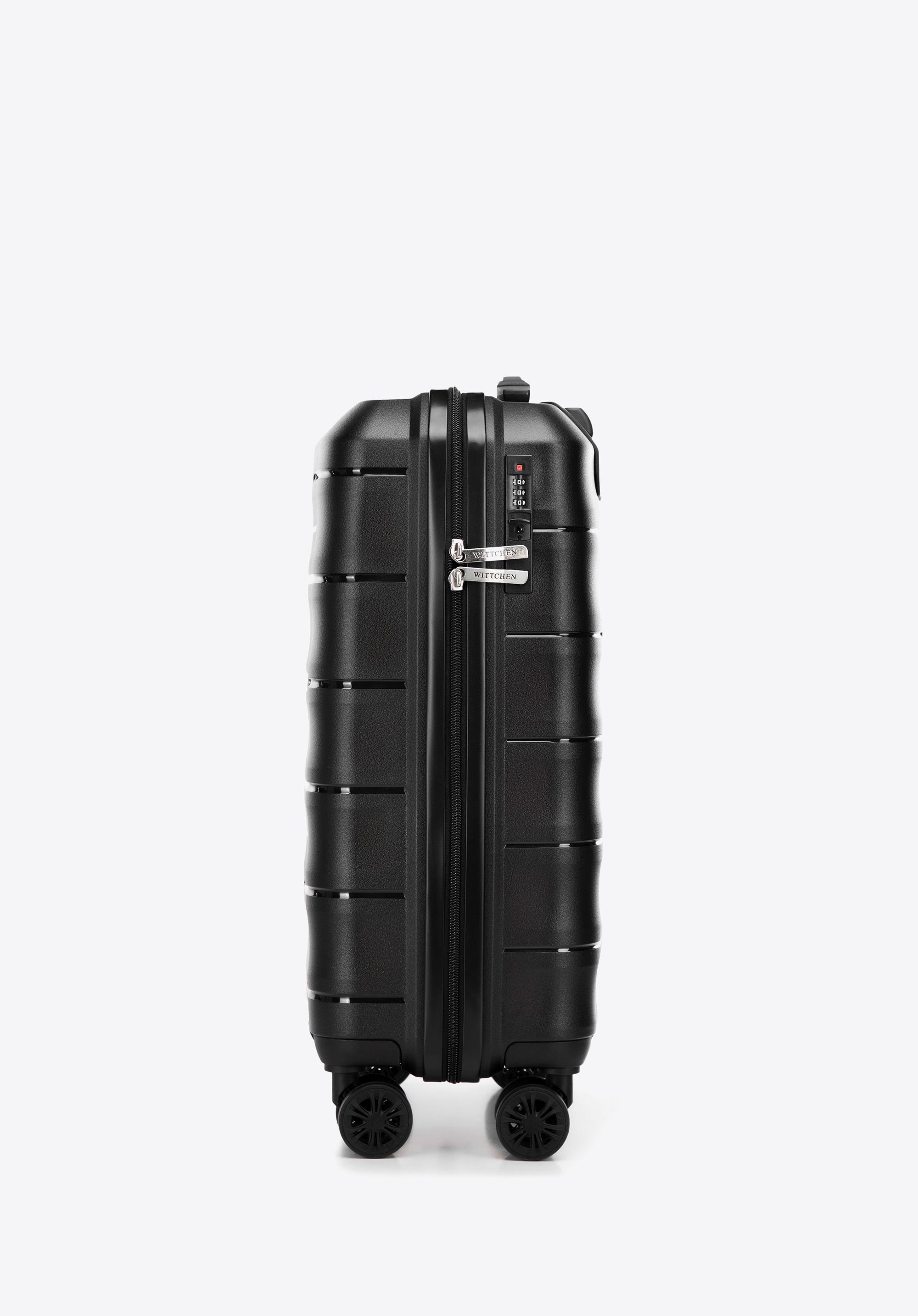 Walizka kabinowa z polipropylenu w tłoczone paski czarna
