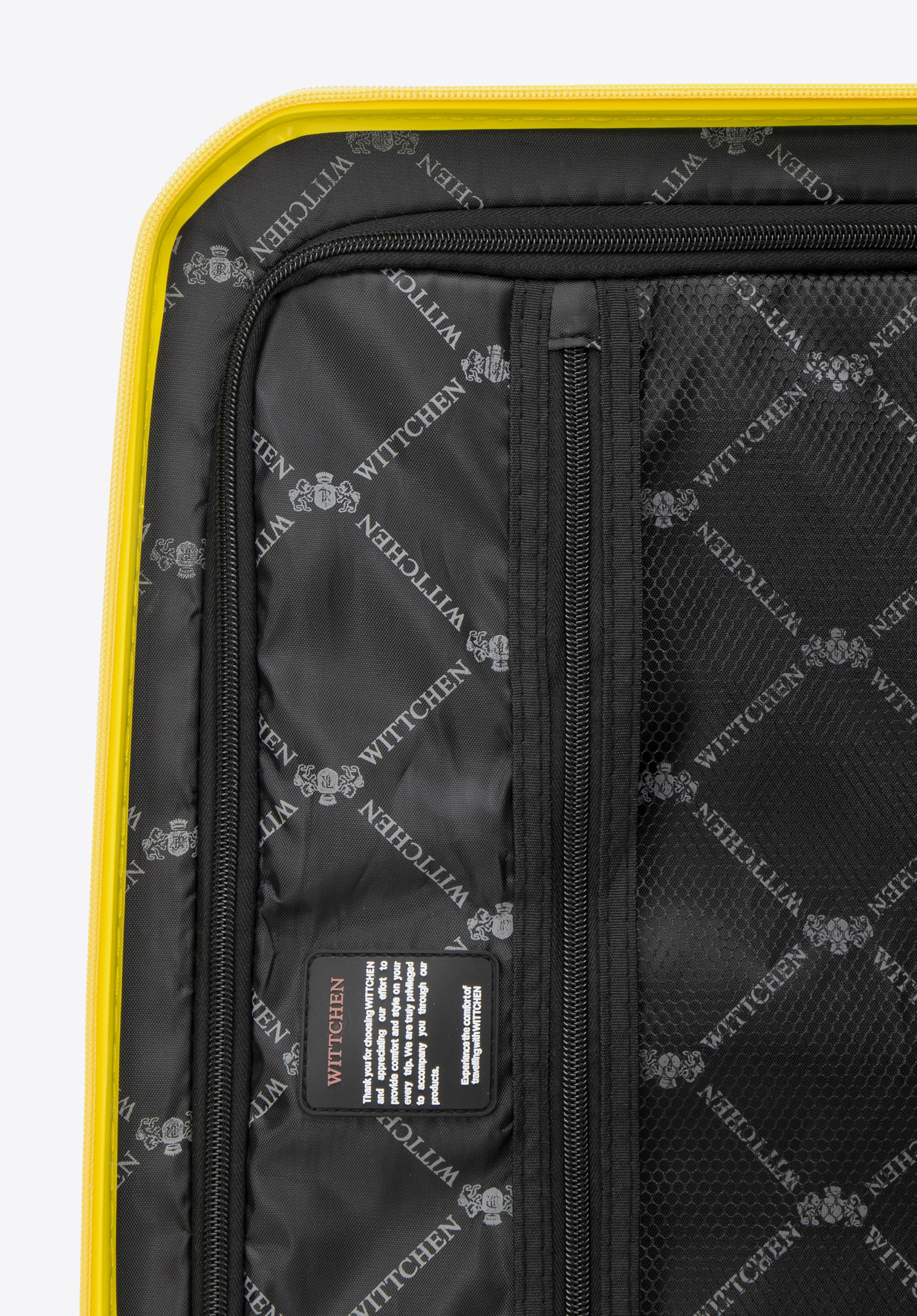 - Estetyka: Poziome, błyszczące tłoczenia przyciągają uwagę. Dodatkowo w każdym kolorze walizki, dopasowaliśmy taśmę suwaka do skorupy tworząc jednolitą, miłą dla oka bryłę.