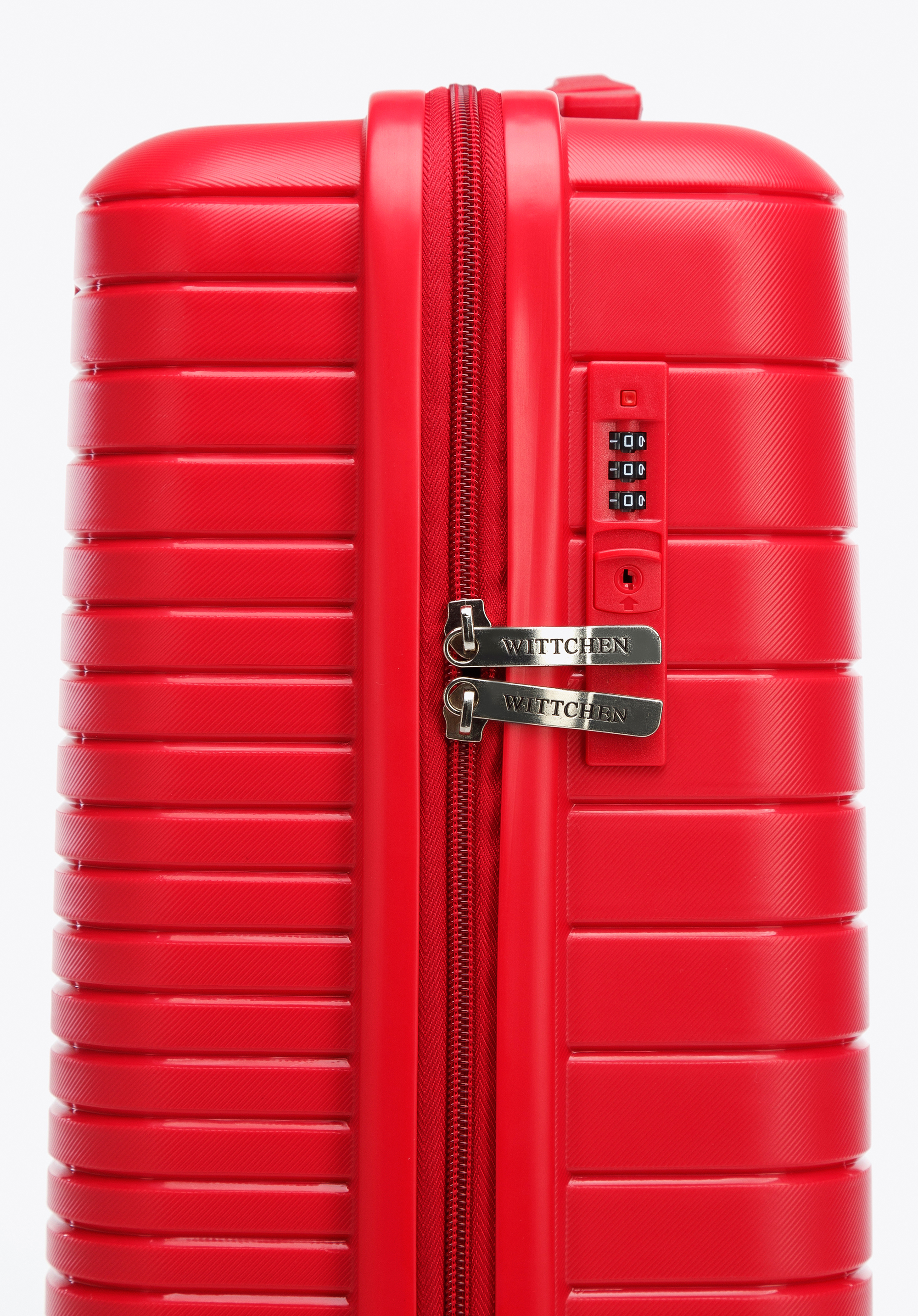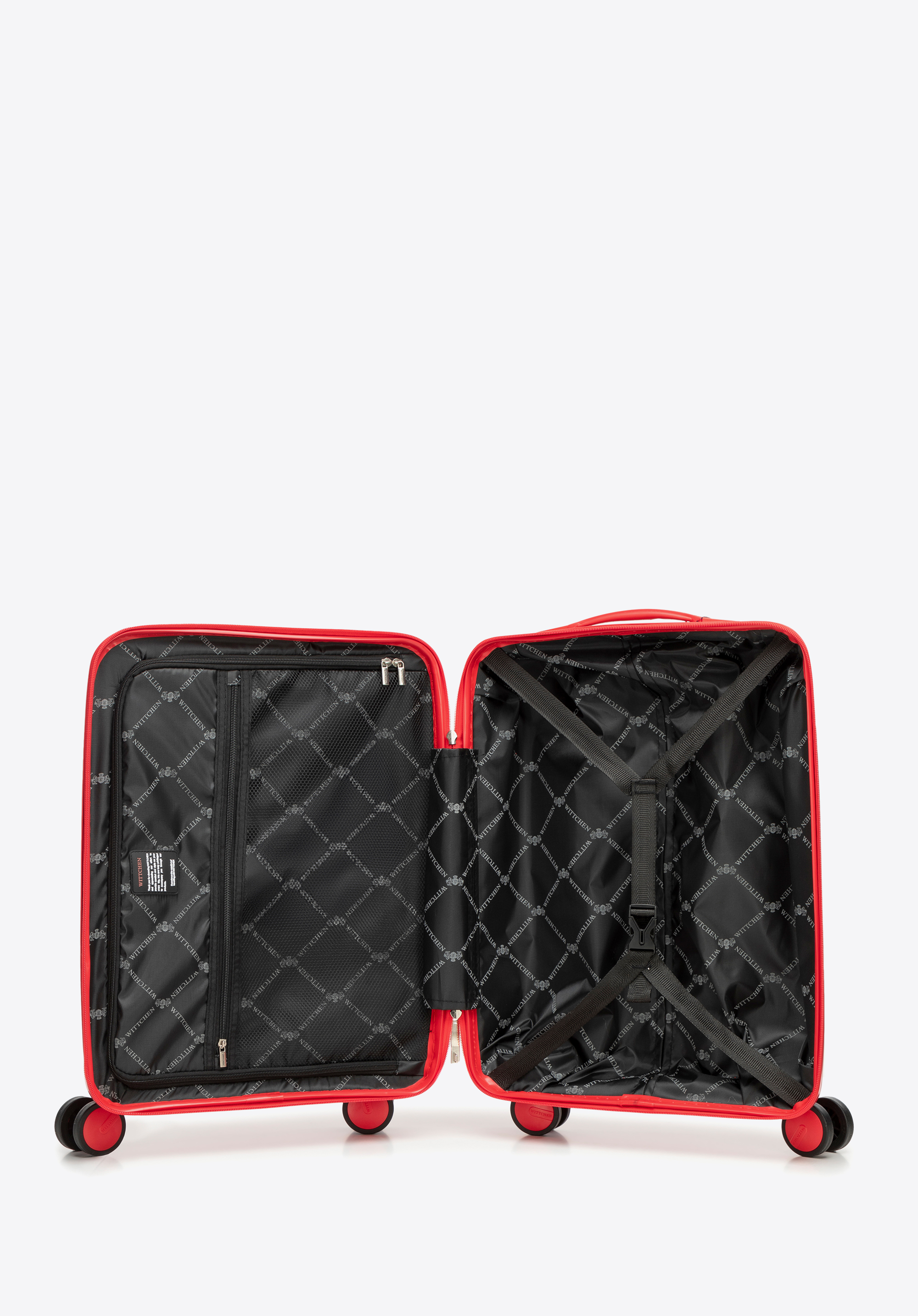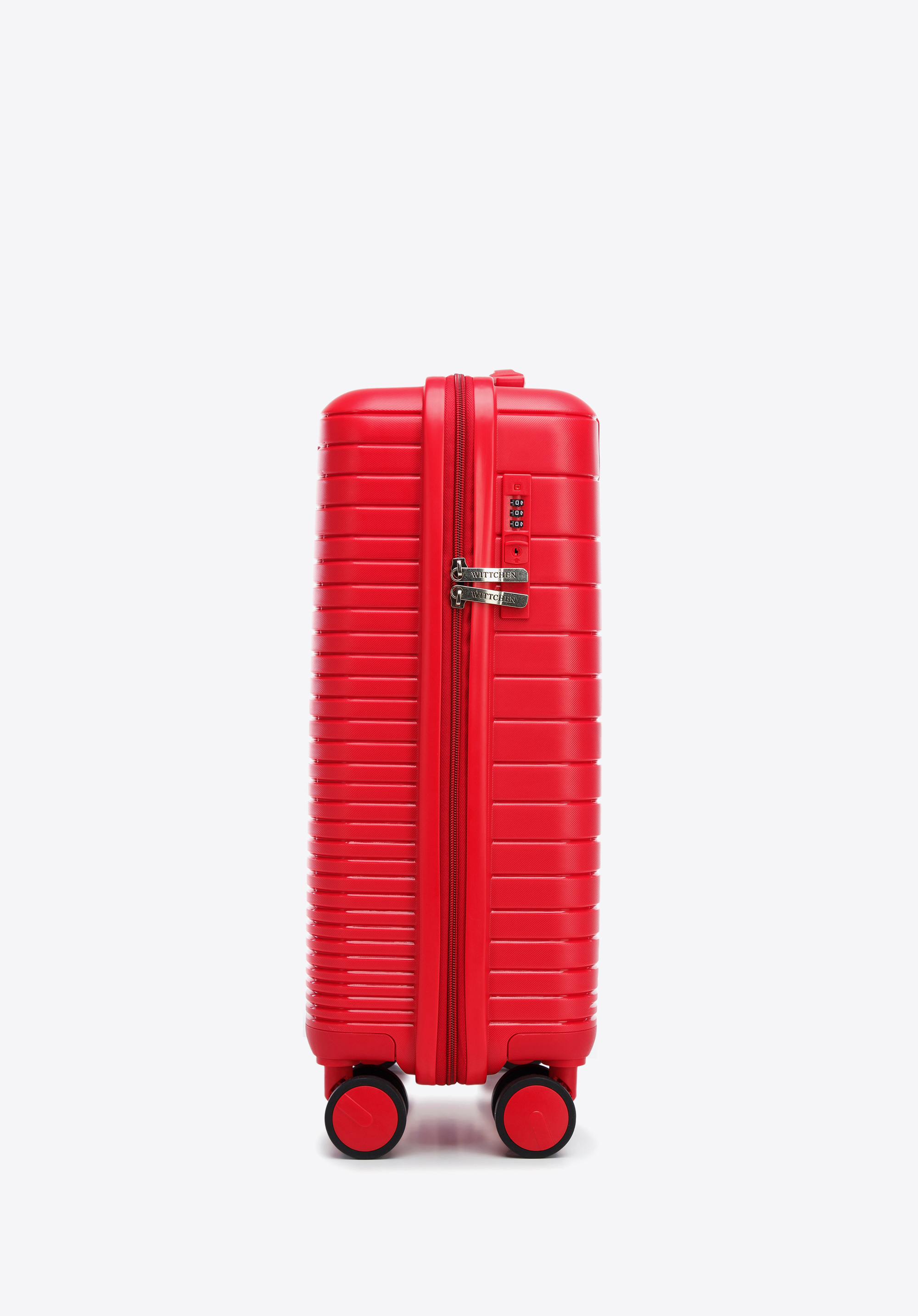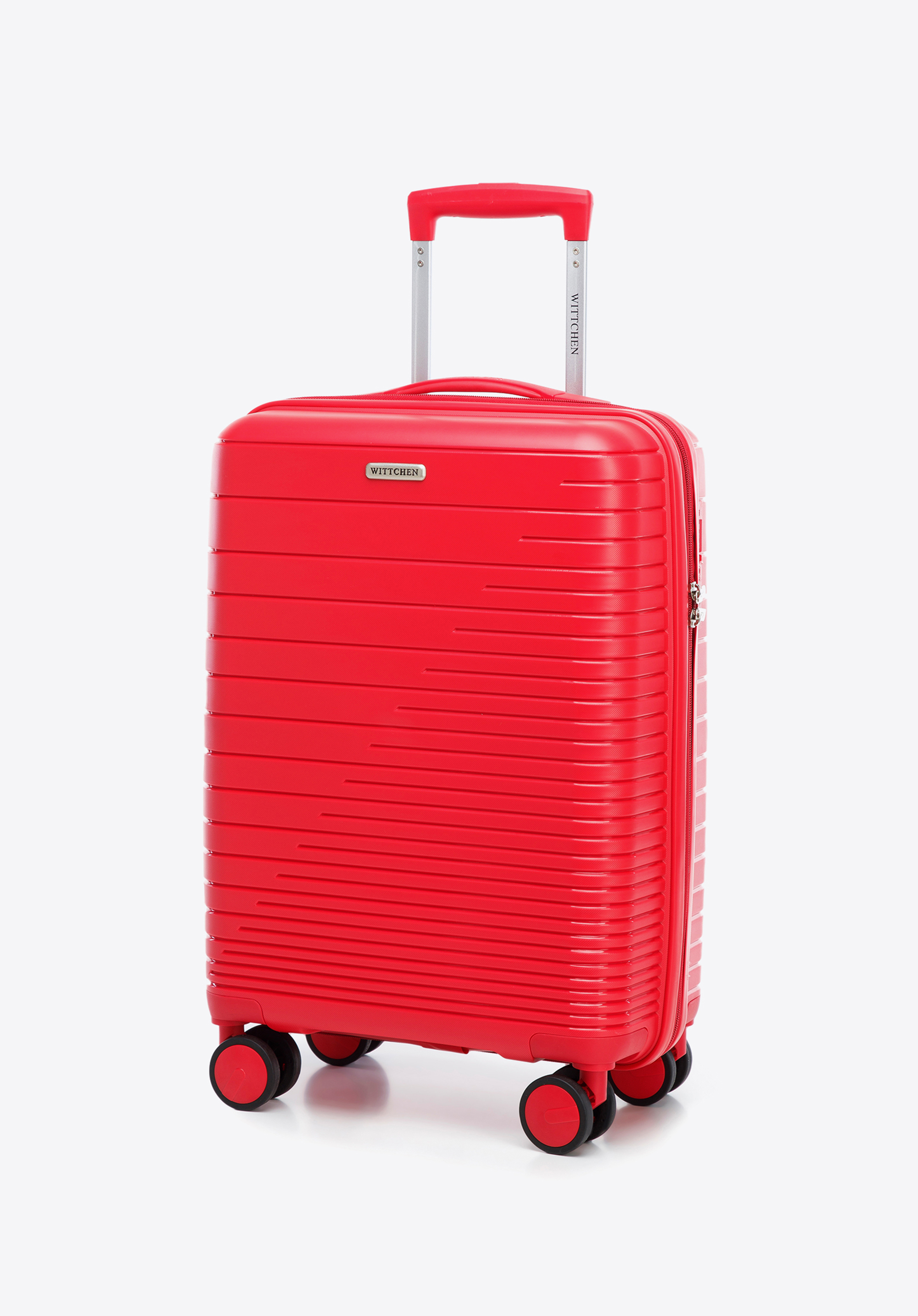 Walizka kabinowa z polipropylenu z błyszczącymi paskami czerwona