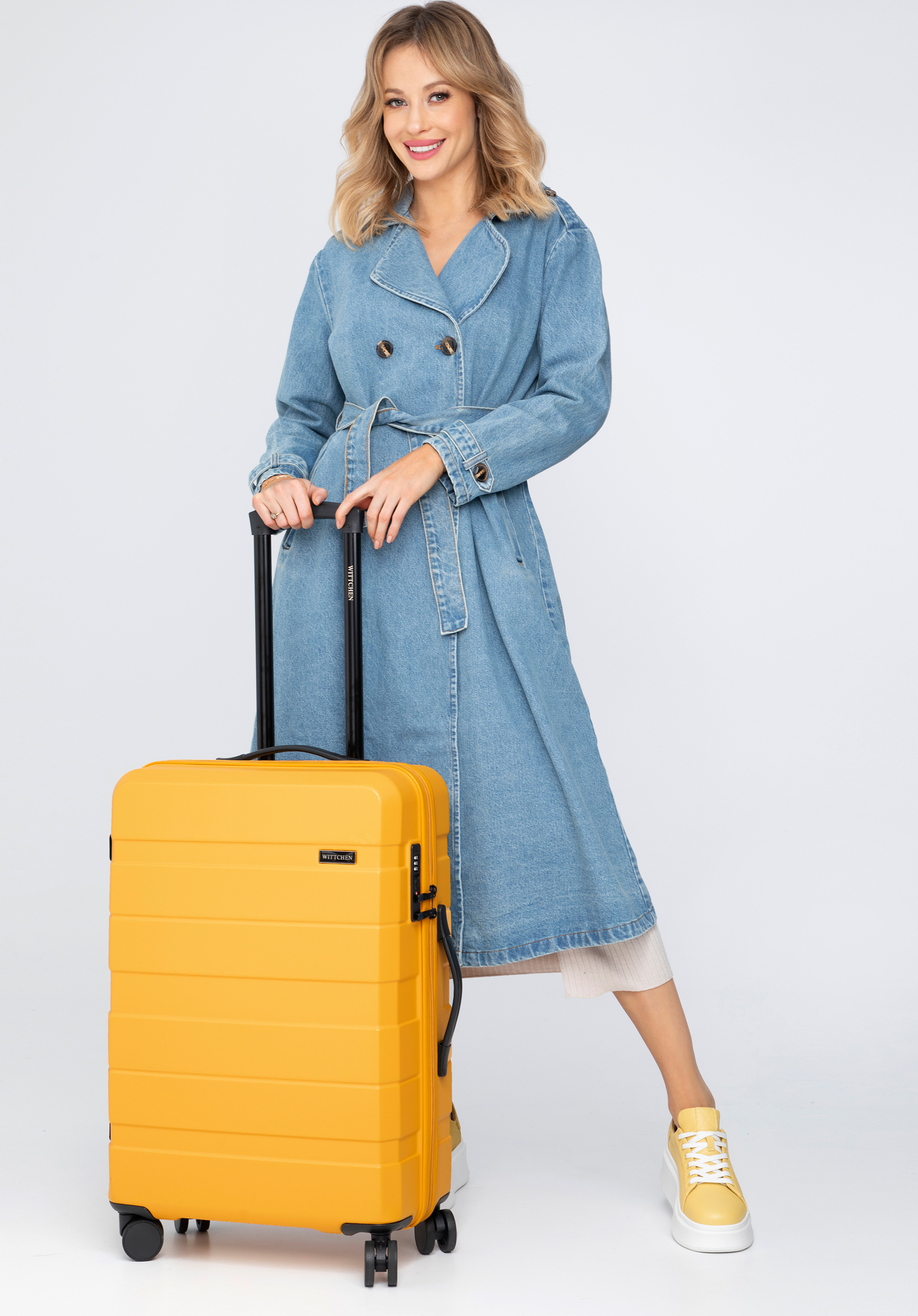 Walizka średnia z ABS-u w poziome pasy żółta