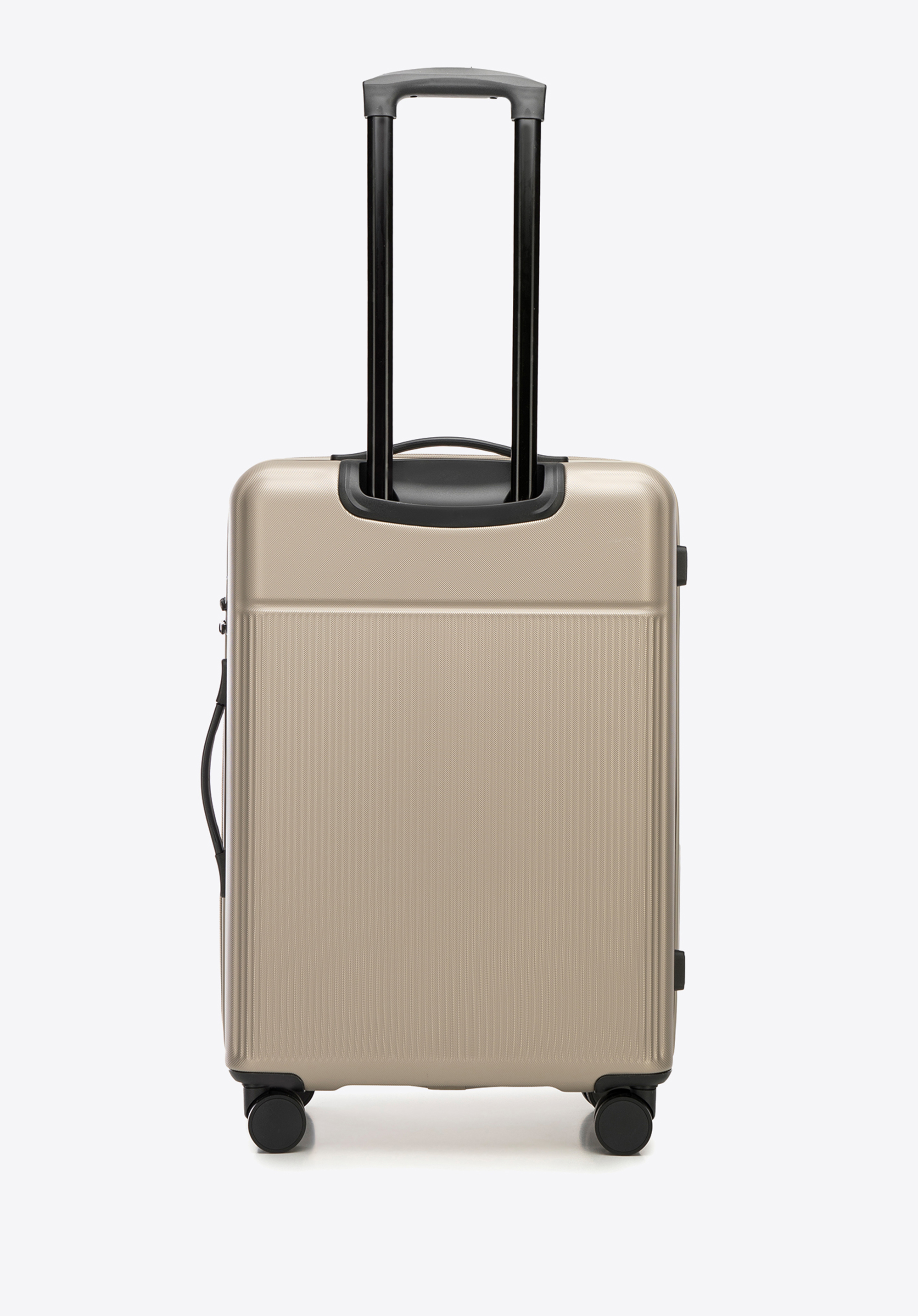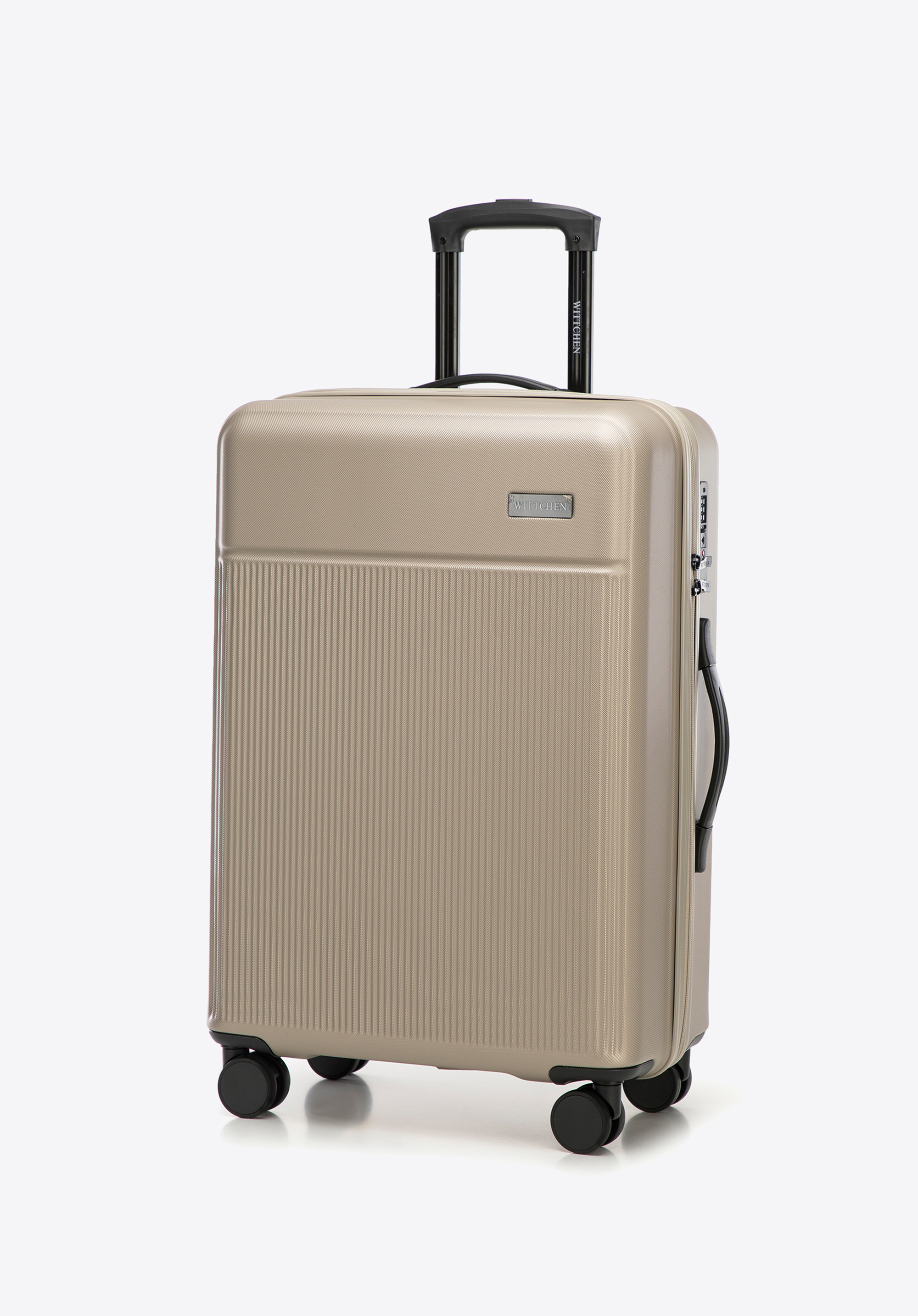 Walizka średnia z ABS-u z pionowymi paskami to stylowy i praktyczny wybór dla każdego.