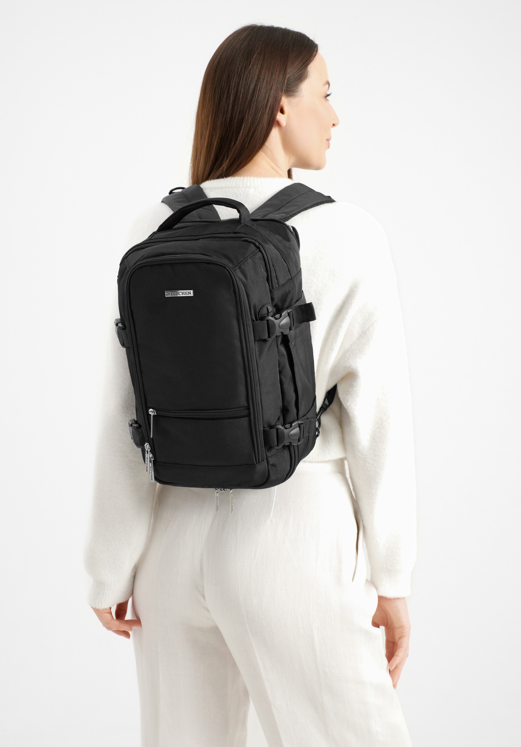 - Kompaktowy rozmiar 40 × 25 × 20 cm: Plecak spełnia standardy bagażu podręcznego popularnych linii lotniczych, takich jak Wizz Air, LOT i wiele innych.