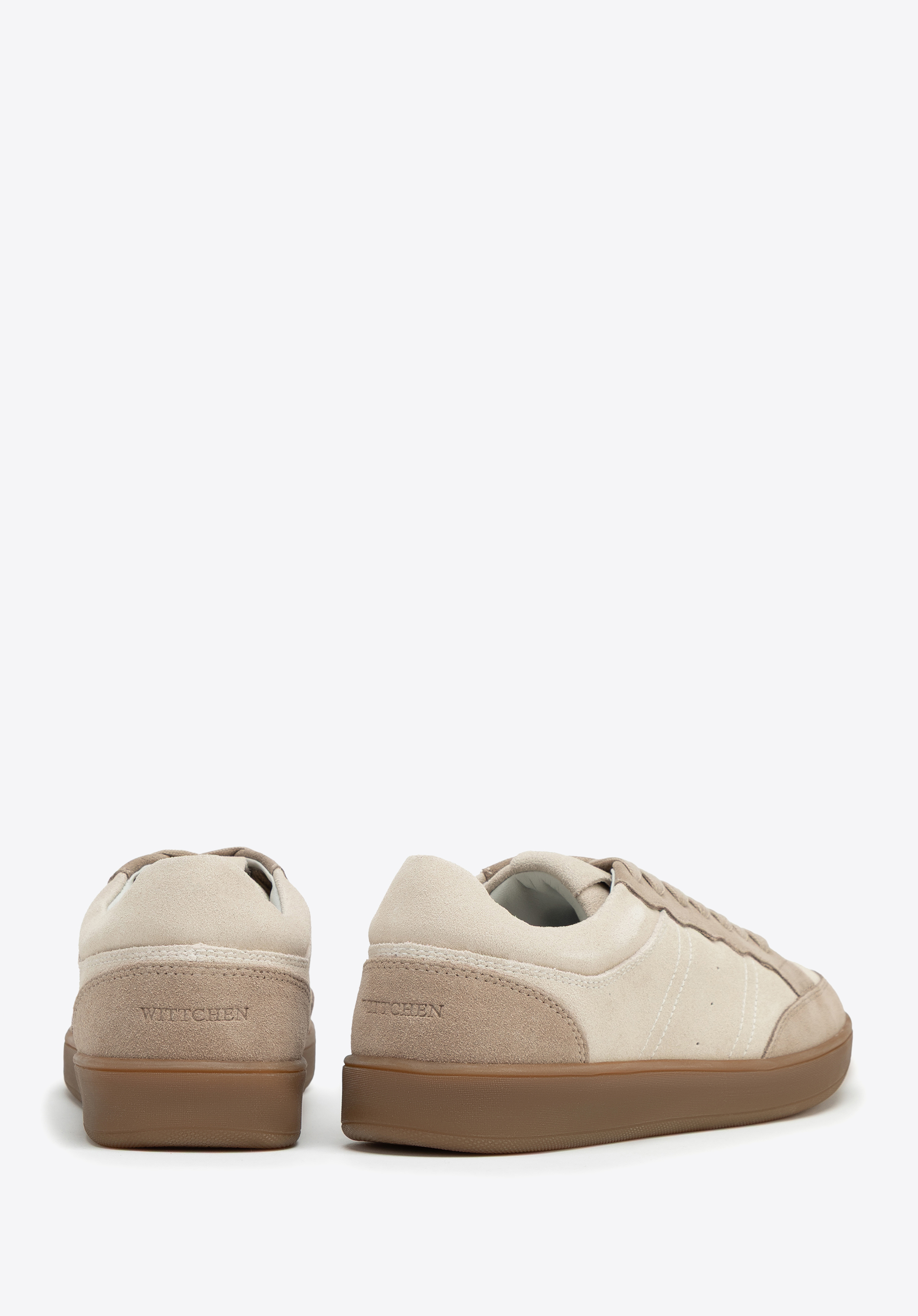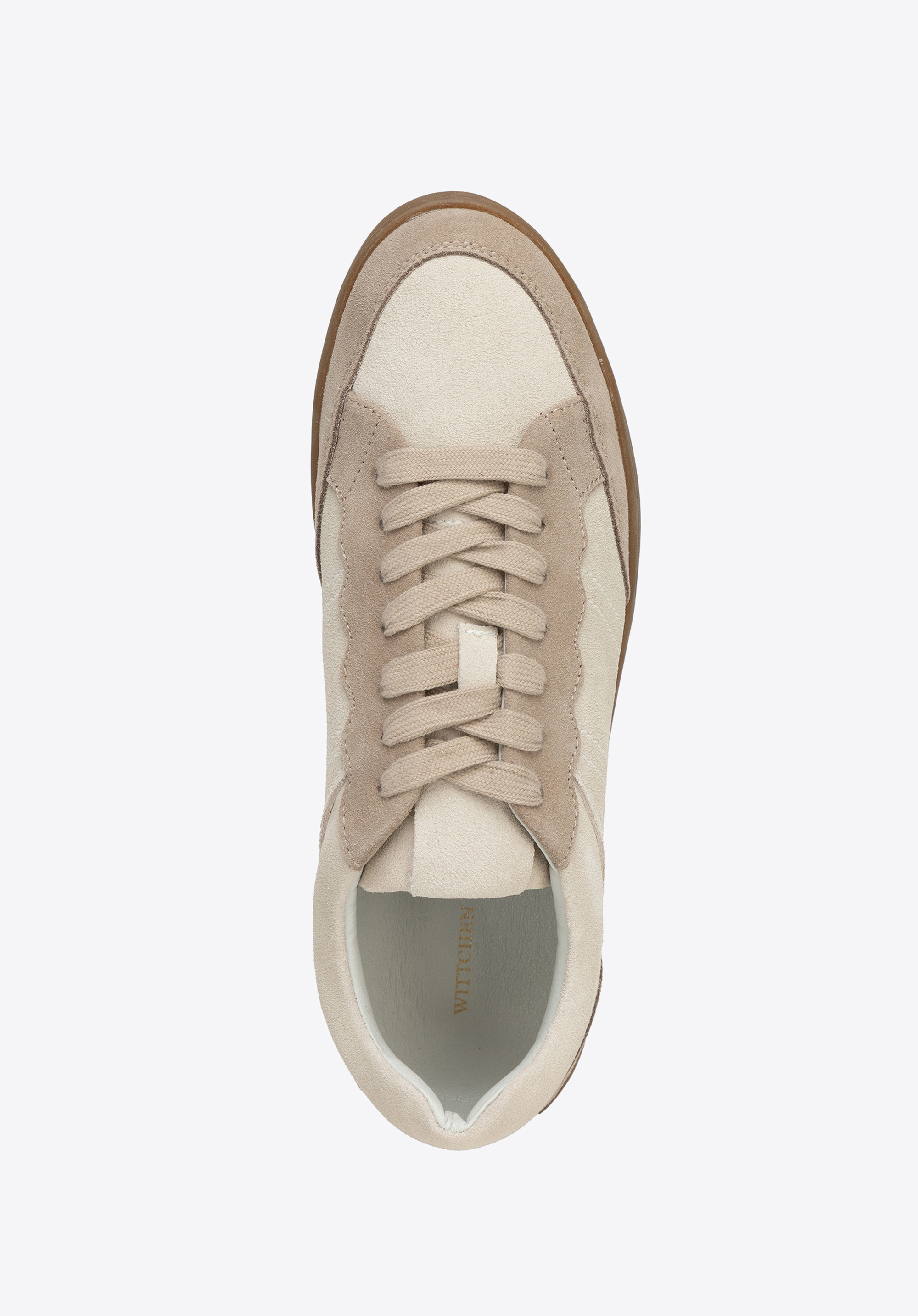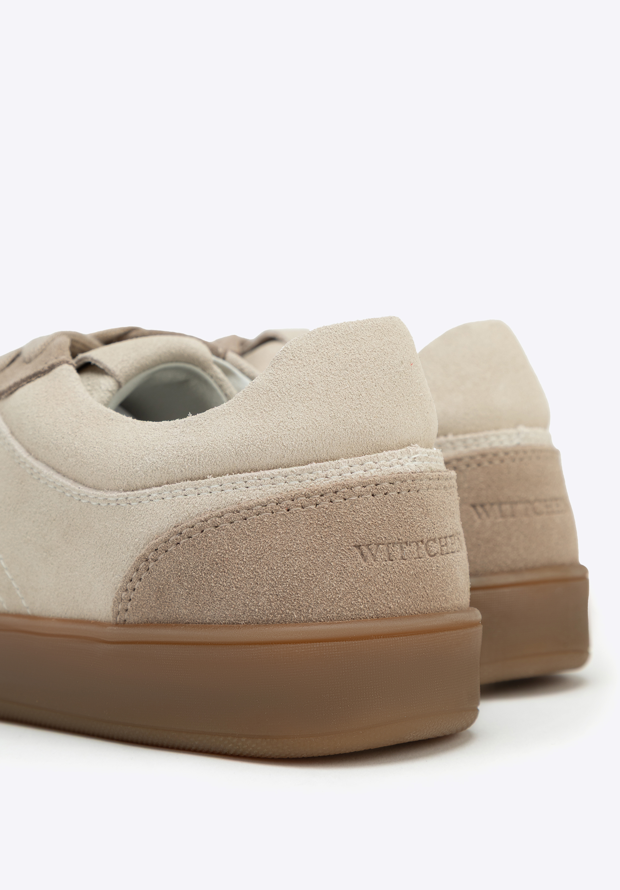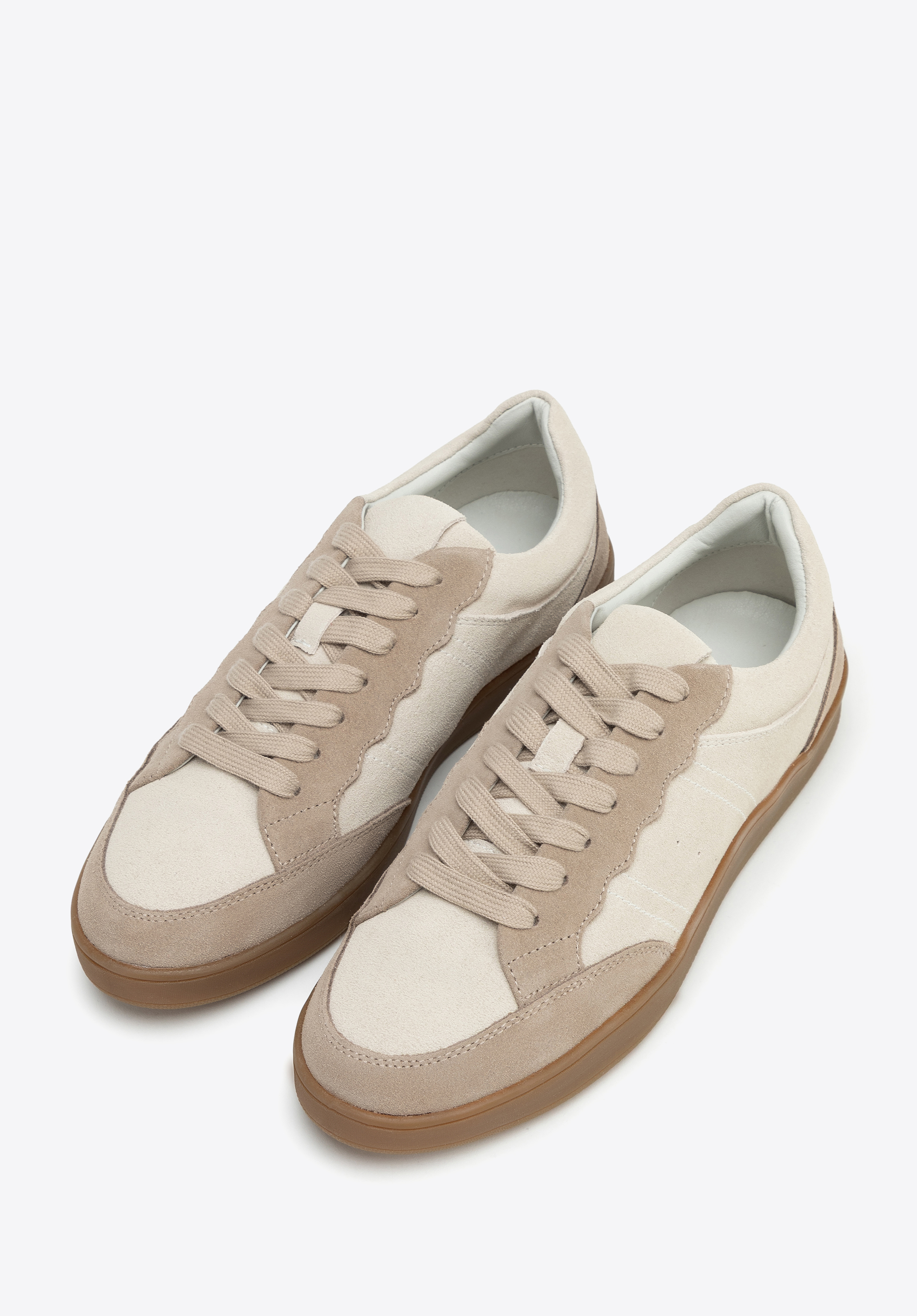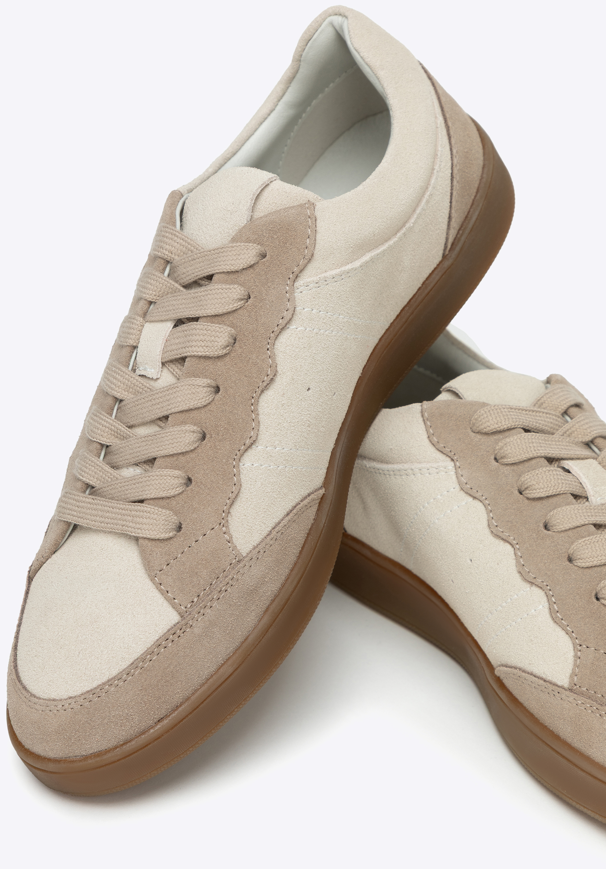 Damskie sneakersy, które łączą modny wygląd z wygodą na co dzień! Wykonane z miękkiej skóry zamszowej zachwycają kontrastującymi kolorami i nowoczesnym wykończeniem. Sznurowanie zapewnia idealne dopasowanie, a subtelne logo producenta z tyłu nadaje im wyjątkowego charakteru. Zaokrąglony nosek i platformowa podeszwa z trwałego tworzywa TPR gwarantują komfort przez cały dzień – bez względu na to, gdzie się wybierasz.