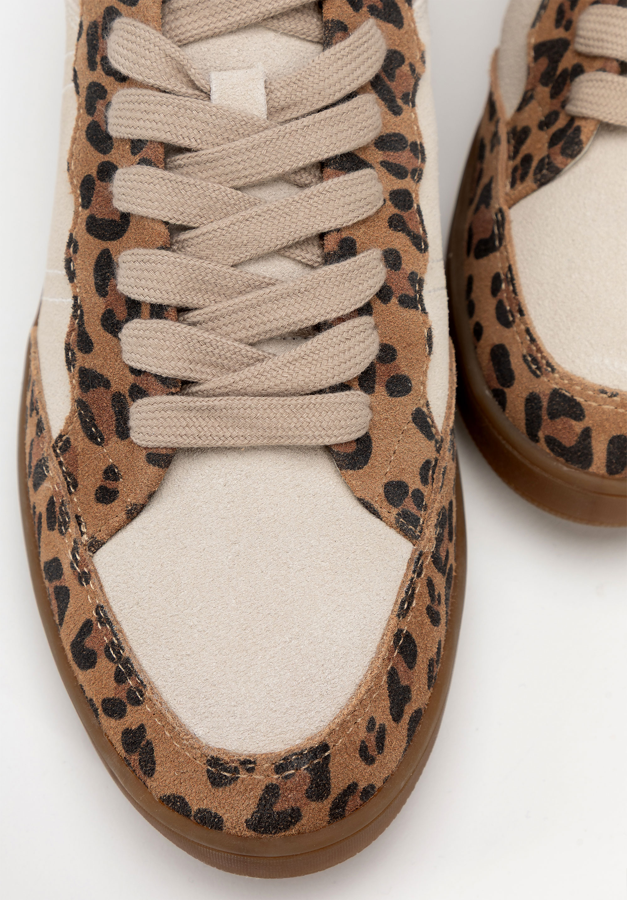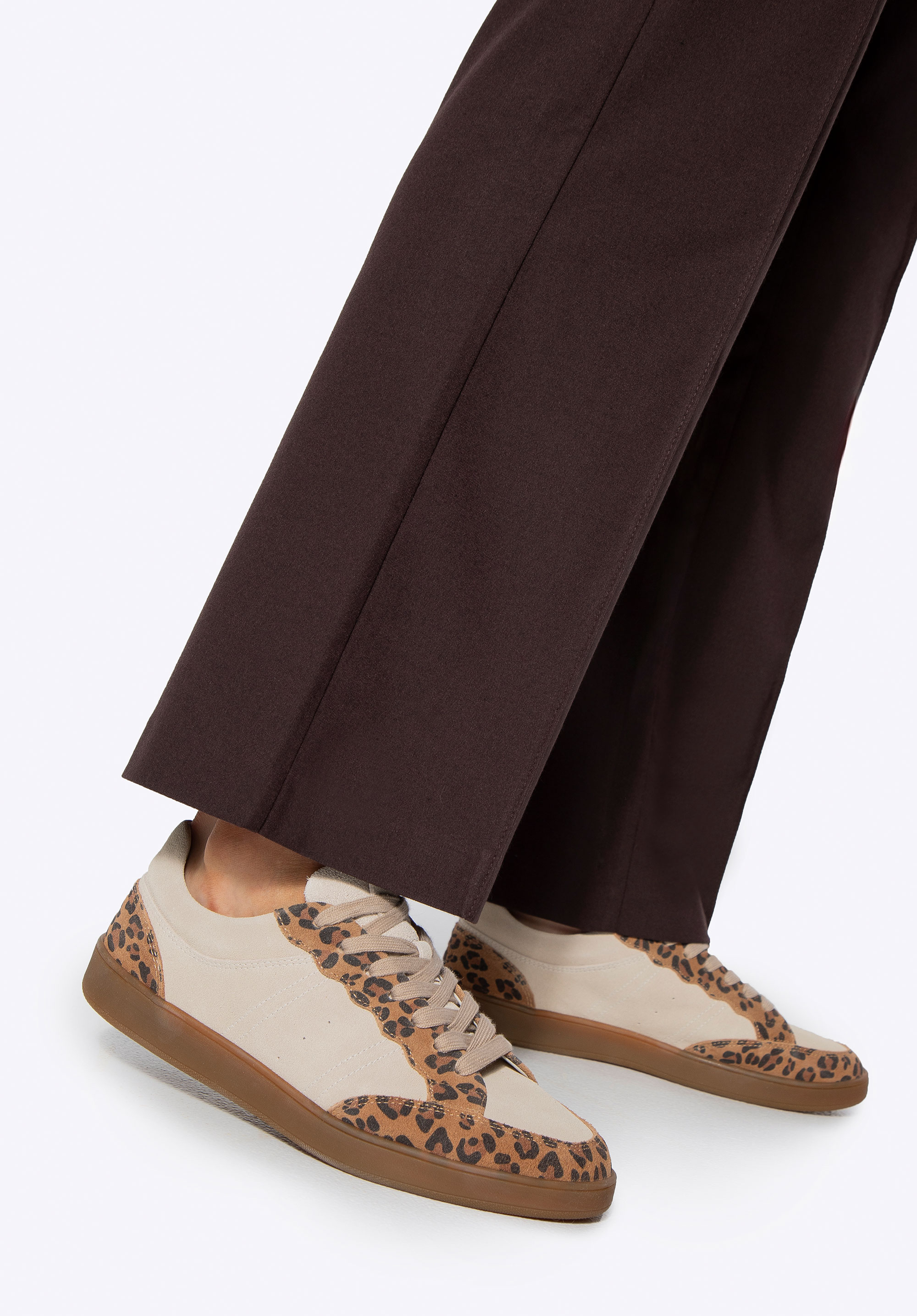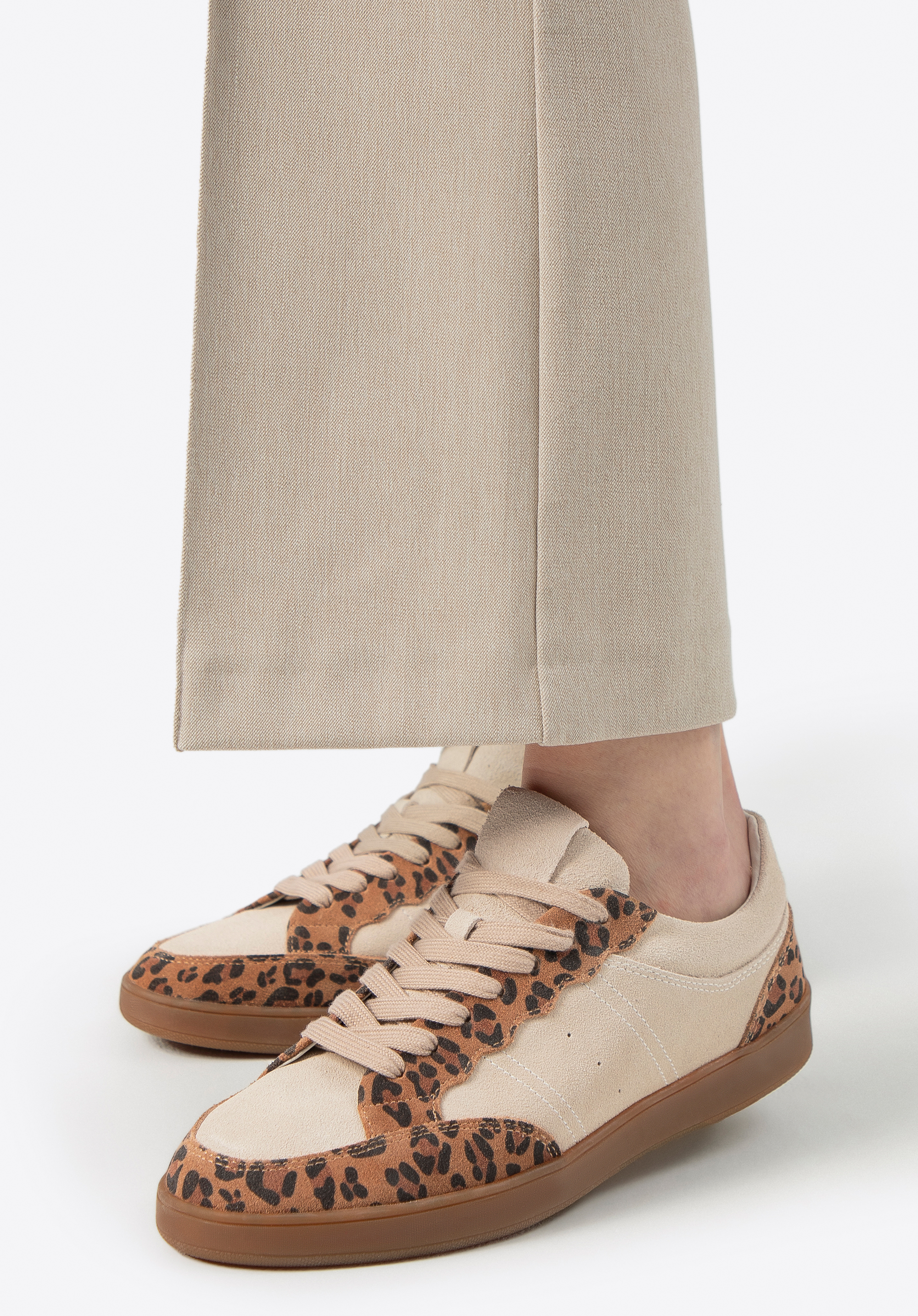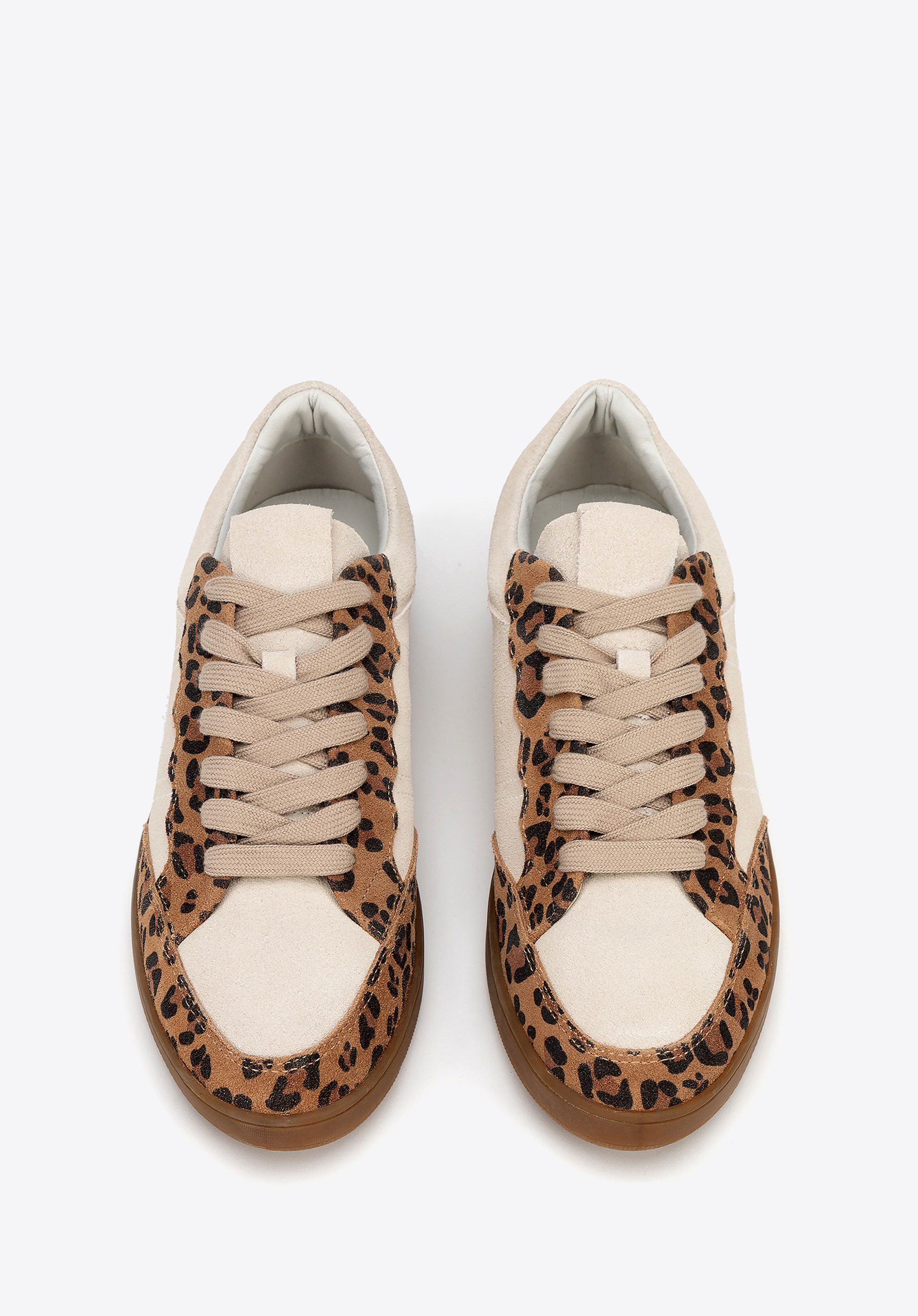Damskie sneakersy, które łączą modny wygląd z wygodą na co dzień! Wykonane z miękkiej skóry zamszowej zachwycają kontrastującymi kolorami i nowoczesnym wykończeniem. Sznurowanie zapewnia idealne dopasowanie, a subtelne logo producenta z tyłu nadaje im wyjątkowego charakteru. Zaokrąglony nosek i platformowa podeszwa z trwałego tworzywa TPR gwarantują komfort przez cały dzień – bez względu na to, gdzie się wybierasz.