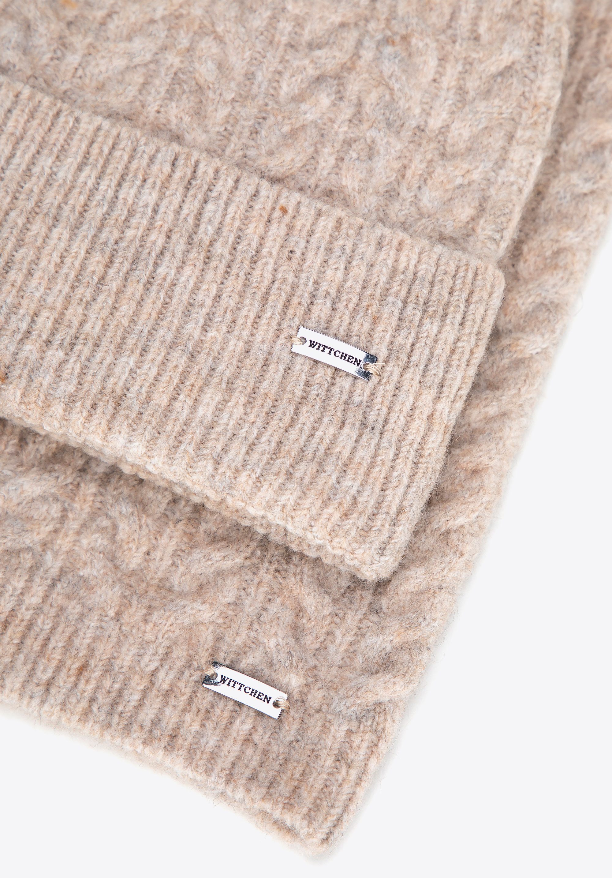 - Dekoracyjny splot warkoczowy: Klasyczny motyw, który nadaje kompletowi fakturę i elegancję.