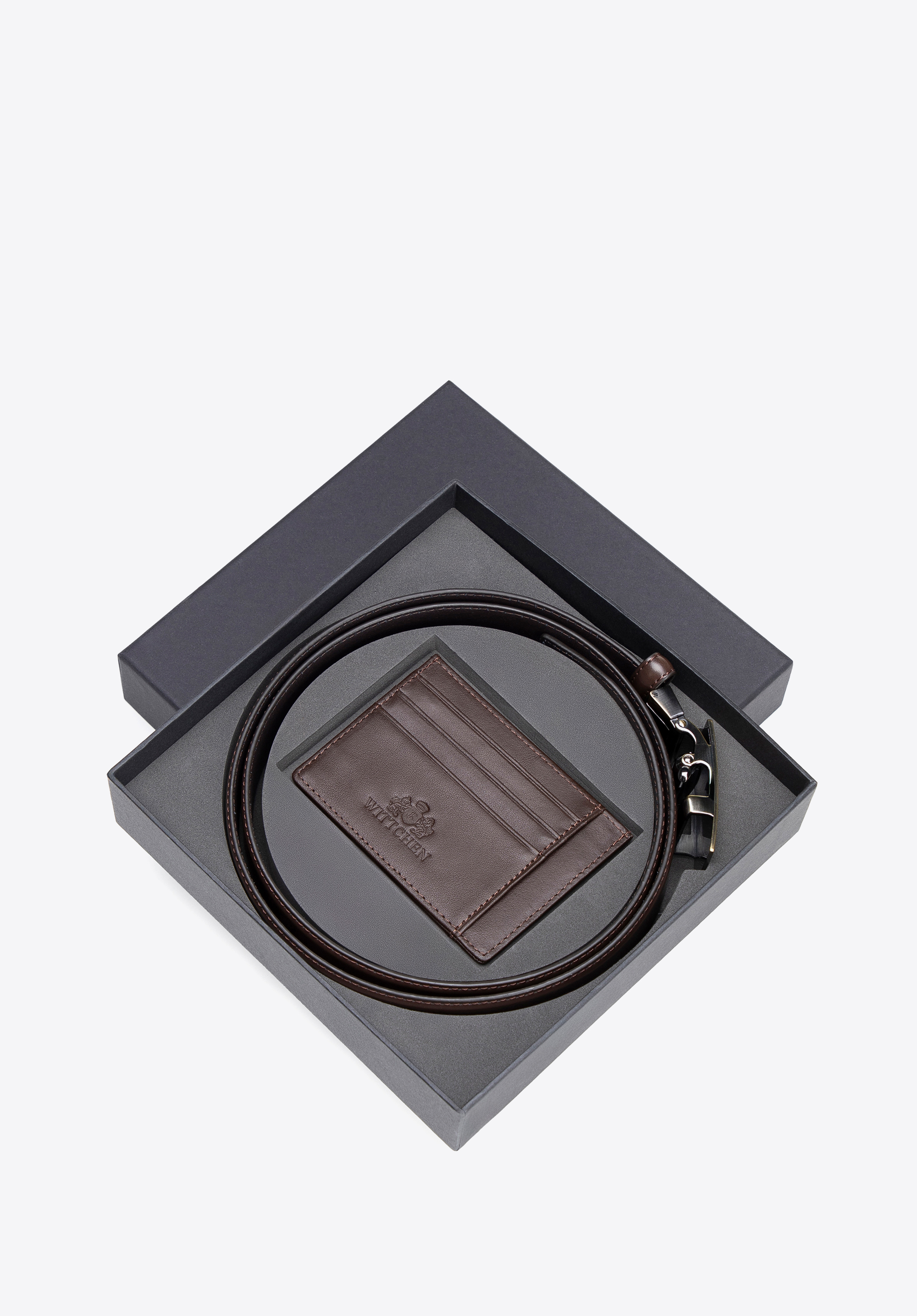 Zestaw męski: pasek i etui na karty ze skóry naturalnej brązowy