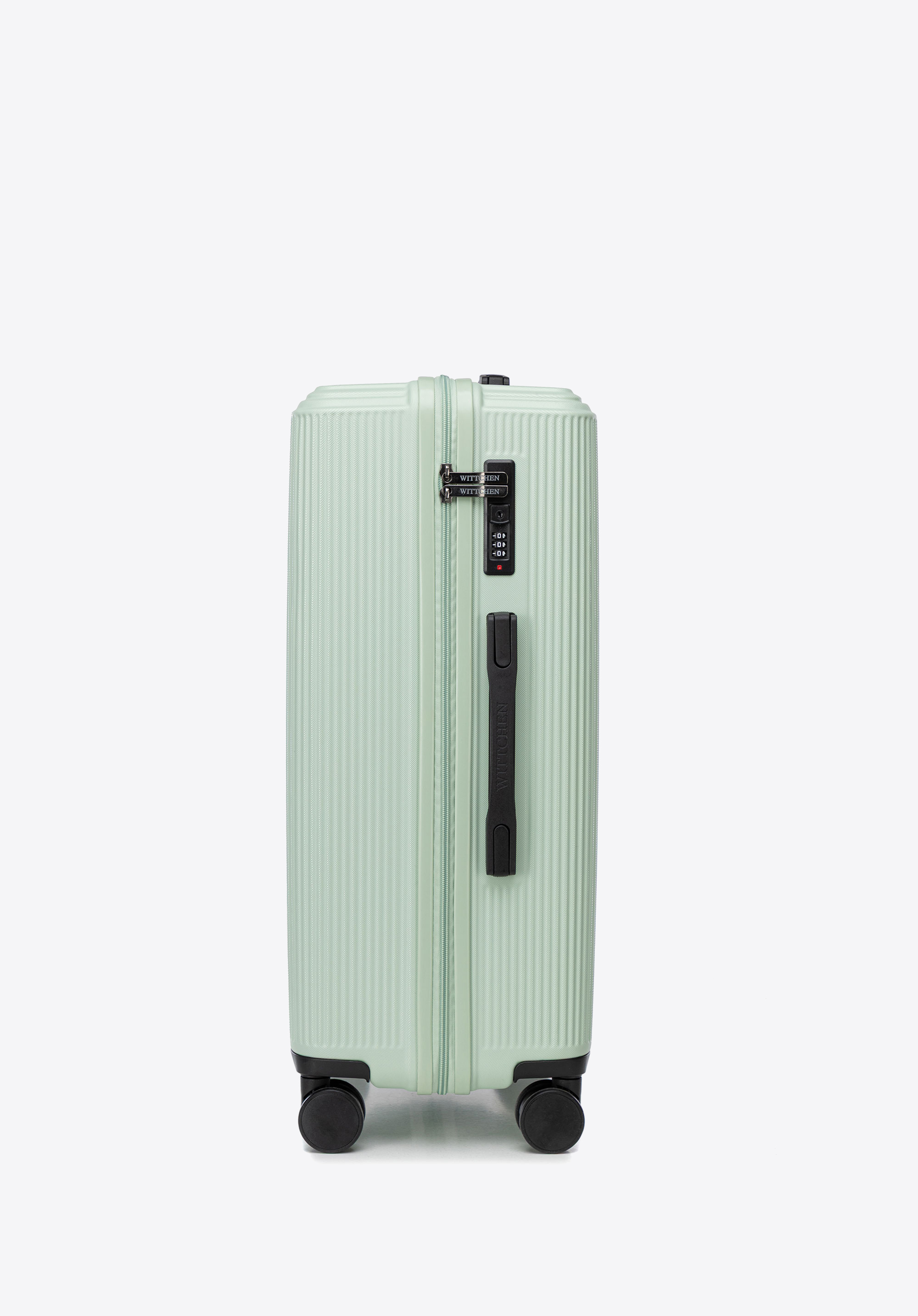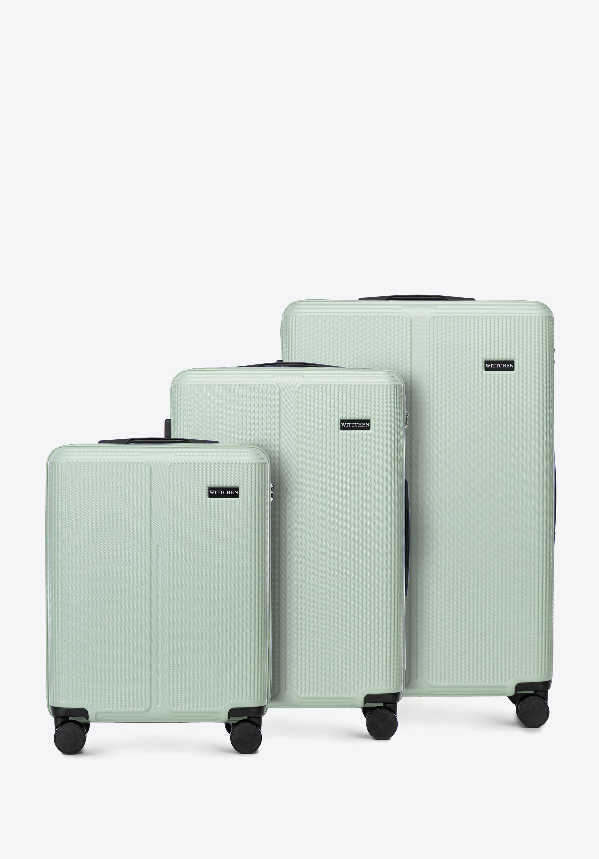 Zestaw walizek z ABS-u w drobne paski miętowy