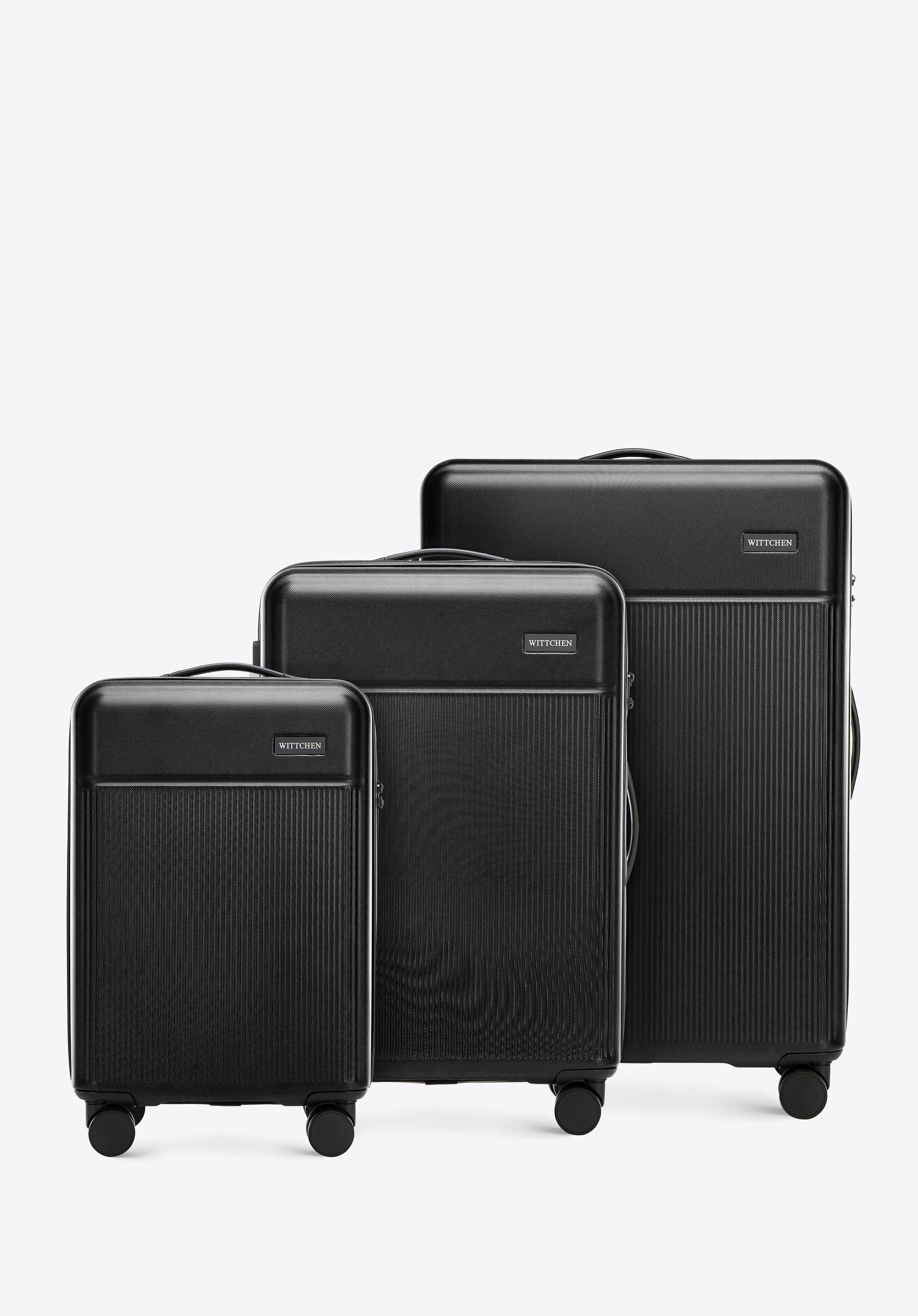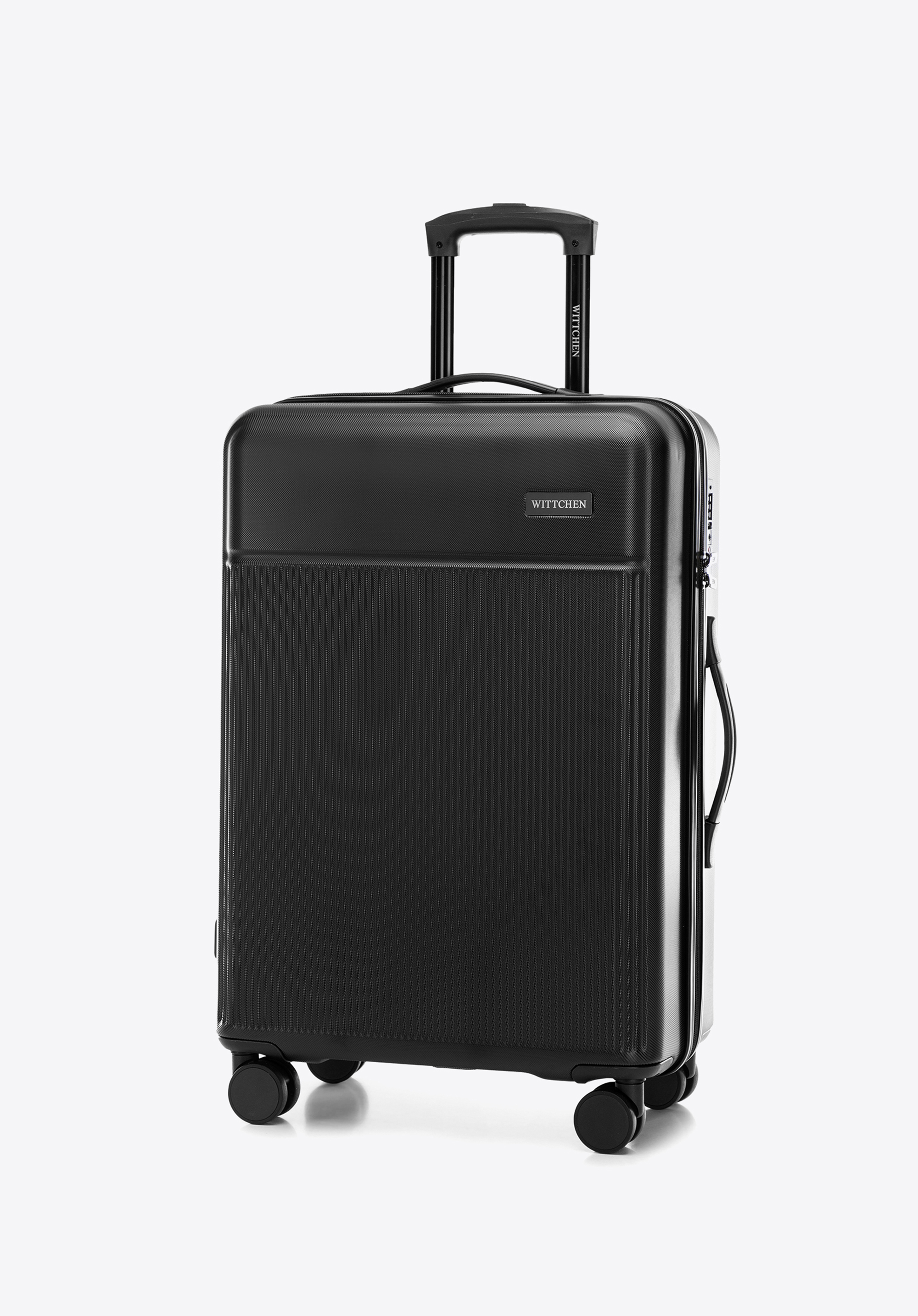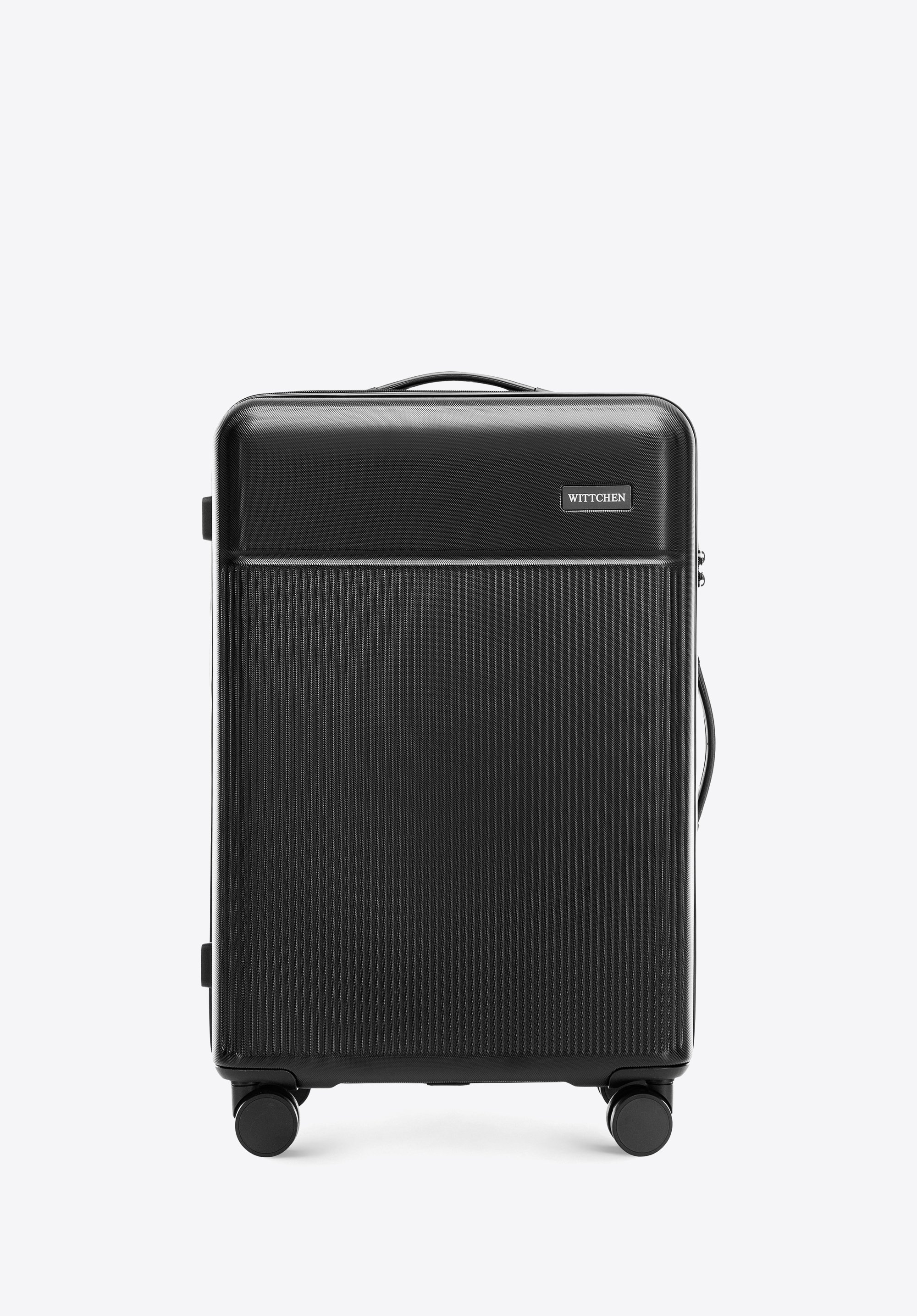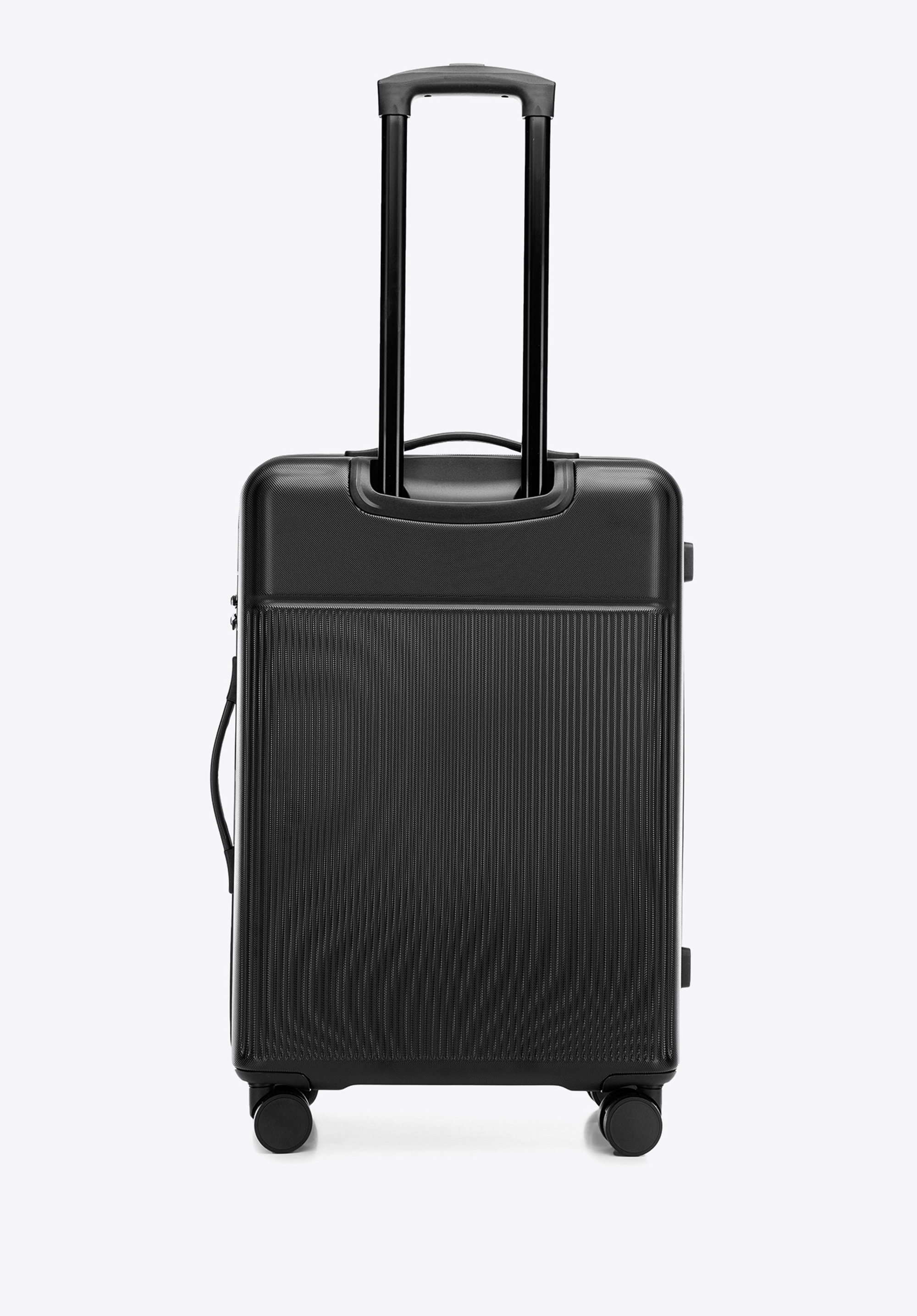 cztery, podwójne obrotowe kółka oraz wysuwany uchwyt ułatwią prowadzenie. Zestaw walizek z ABS-u z pionowymi paskami to elegancki dodatek, który przyda Ci się podczas niejednej podróży.