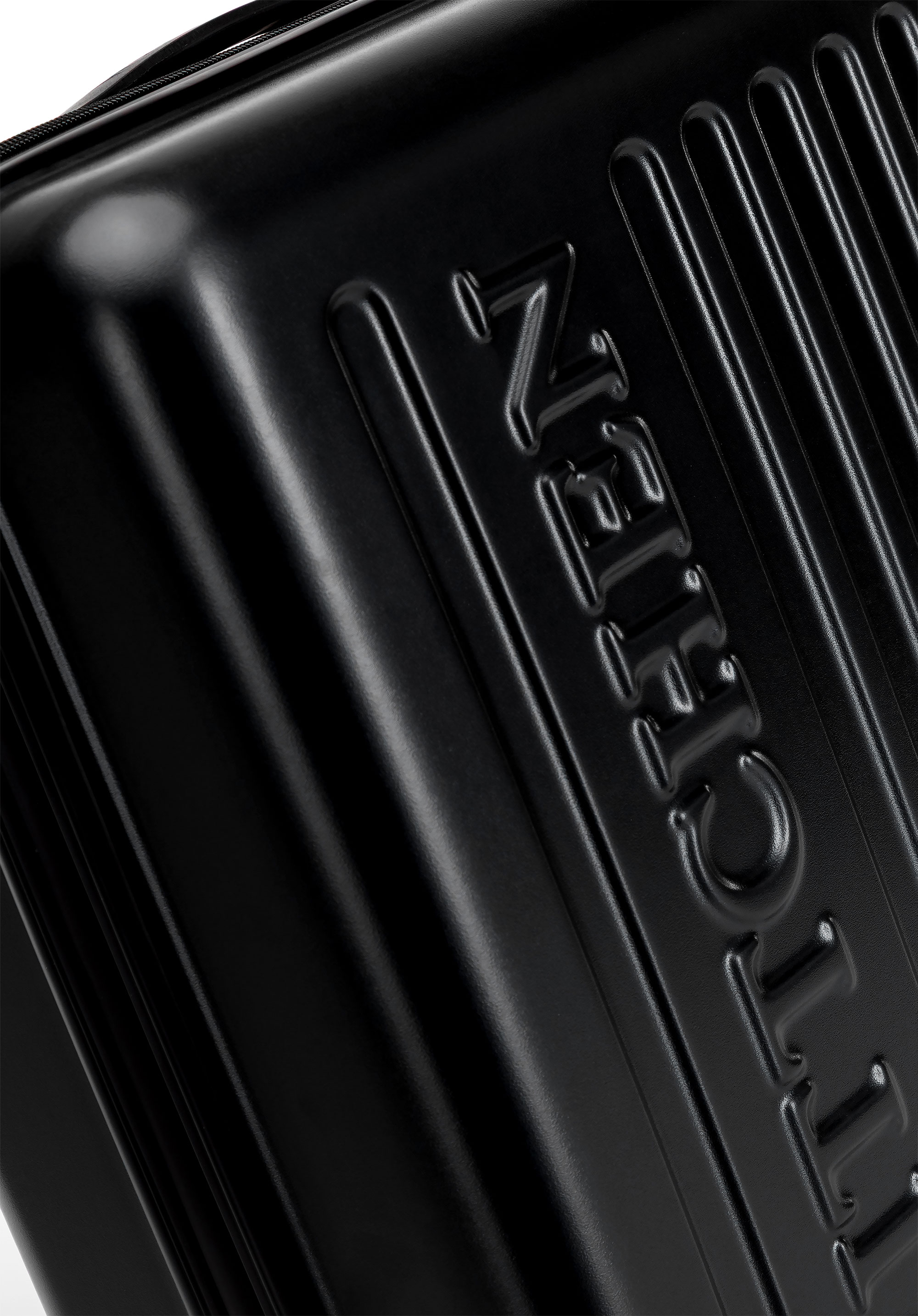 - Design: Tłoczone logo, wyraziste żłobienia oraz dopasowane kolorystycznie kółka i pasy mocujące podkreślają elegancki charakter walizek.